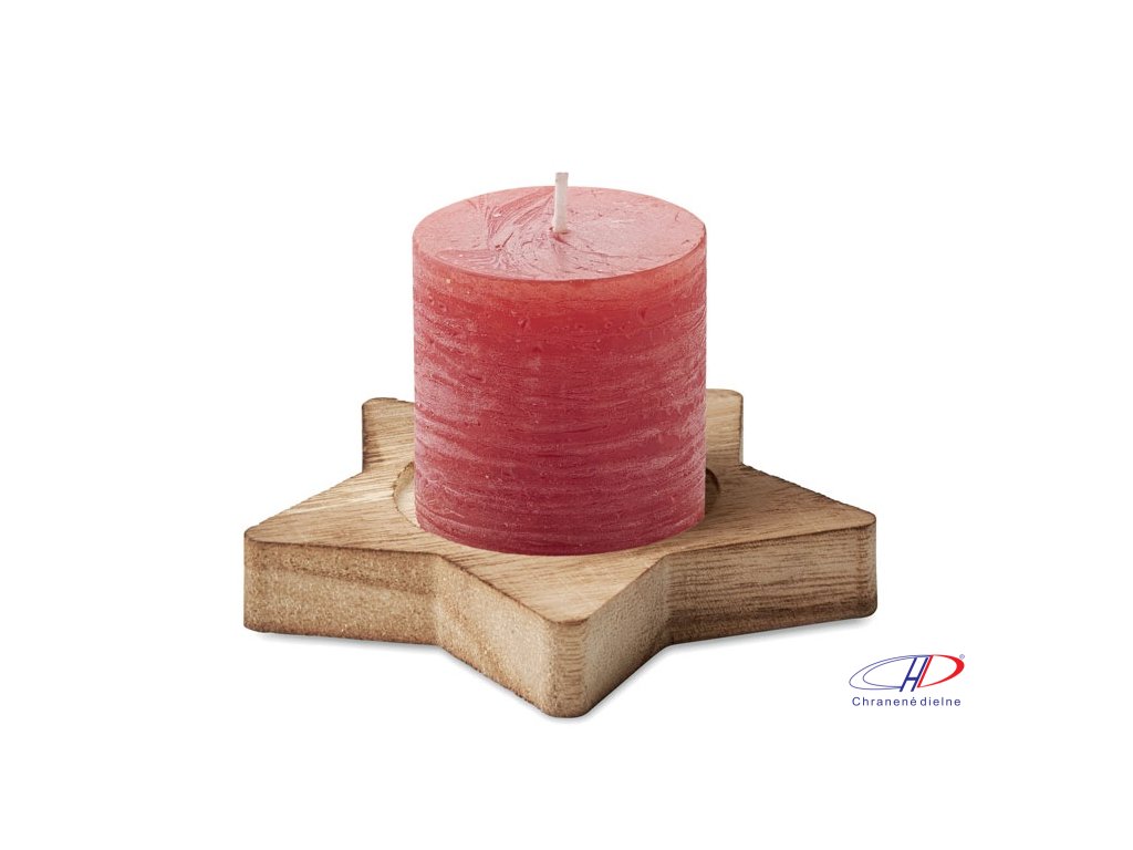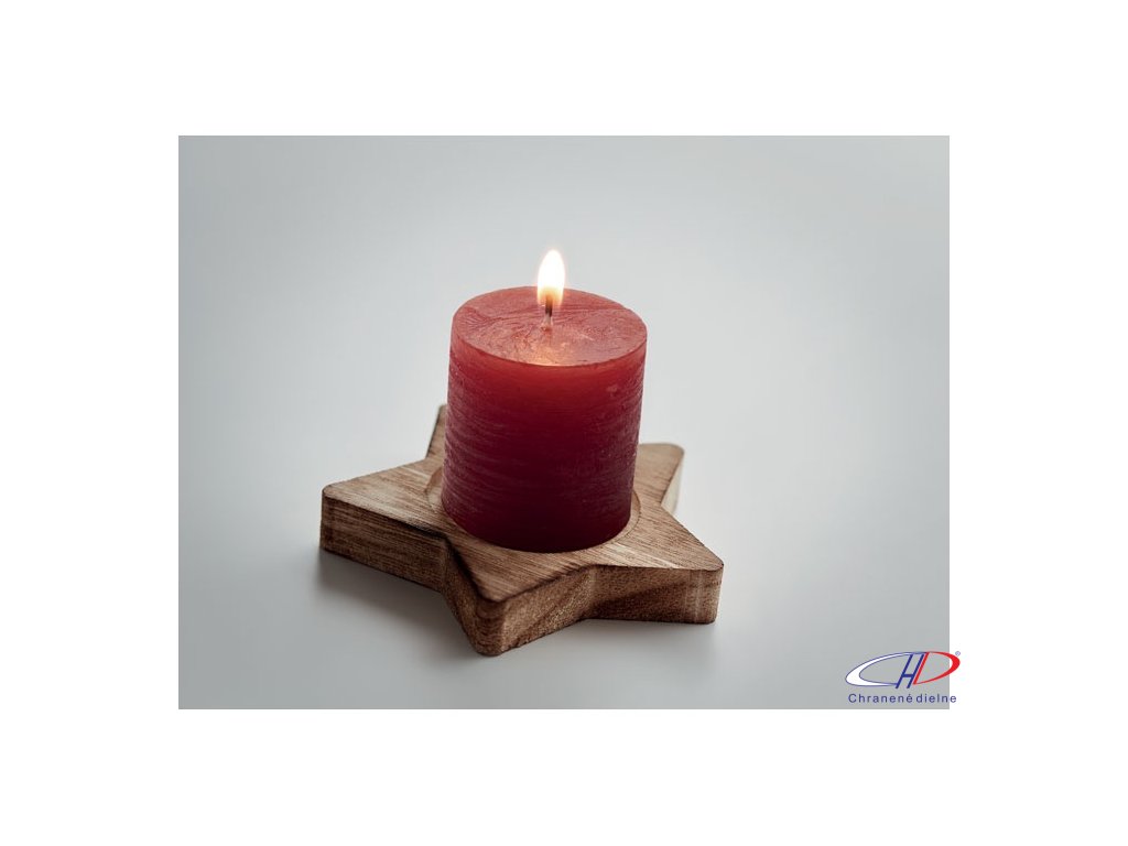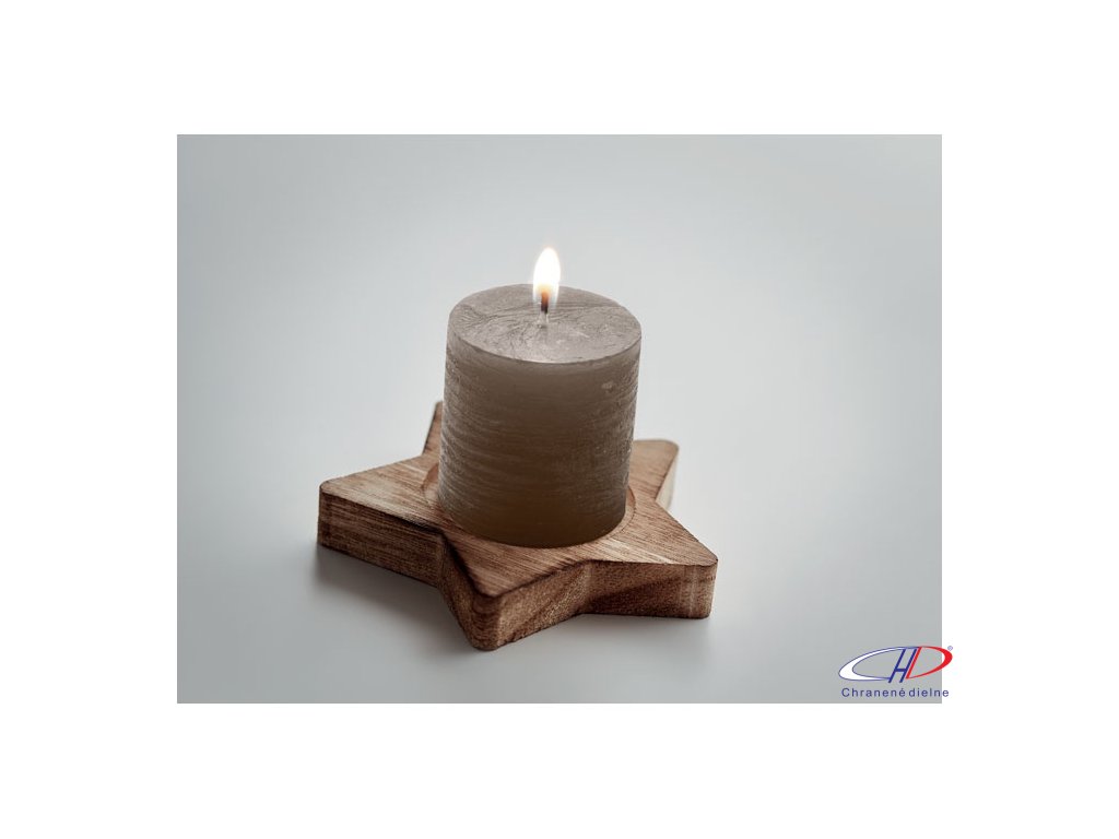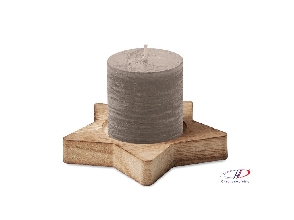 Drevený dekoratívny podstavec so sviečkou (vanilková vôňa). Doba horenia: 12 hodín.Dodatočné parametre