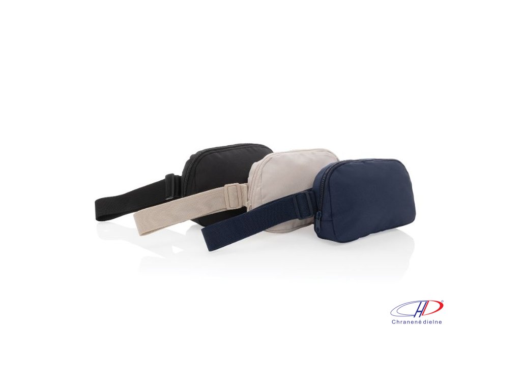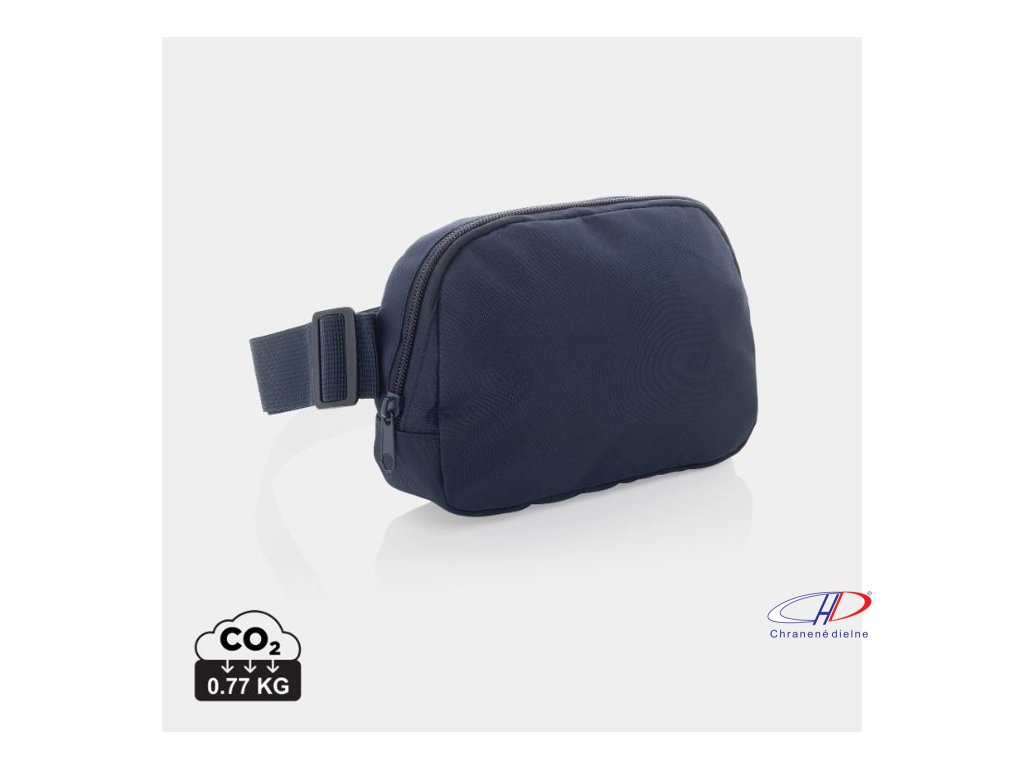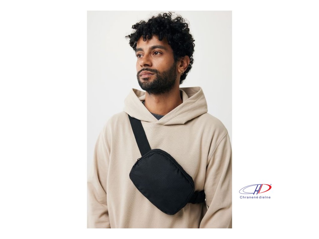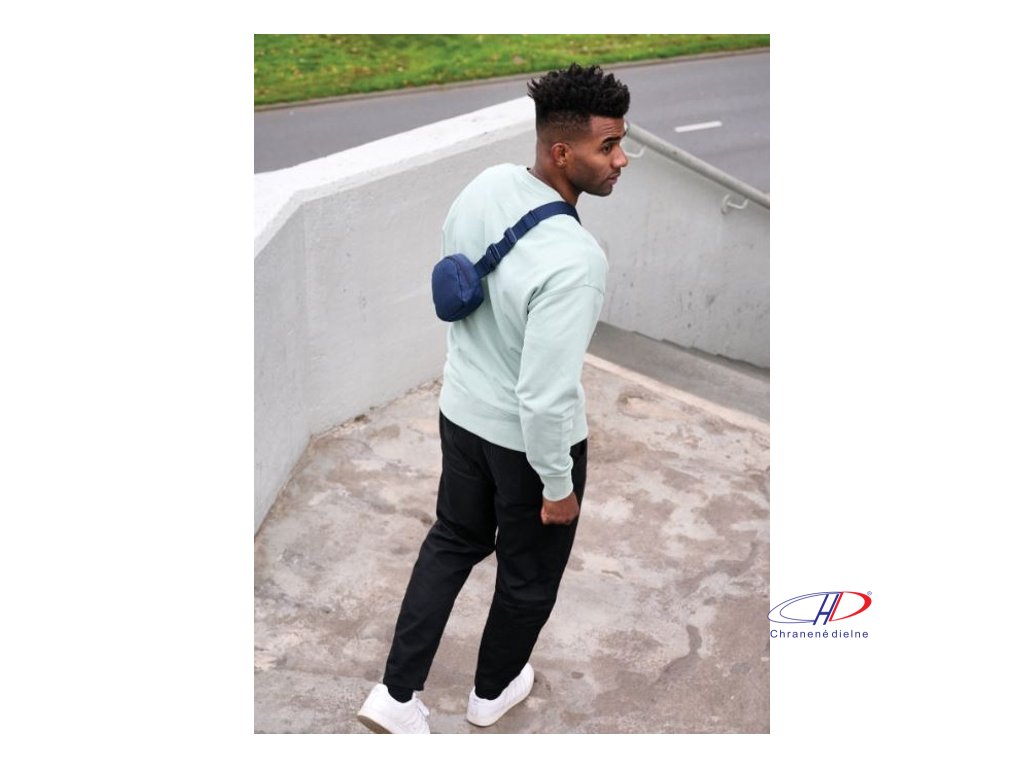 Taška zo 100% rPET AWARE™ má nastaviteľný ramenný popruh (100 cm) so šírkou 4 cm. Ponúka zadné vrecko na zips a hlavnú priehradku na zips. Tašku je možné nosiť krížom cez rameno alebo ako ľadvinku. Neobsahuje PVC.Dodatočné parametre