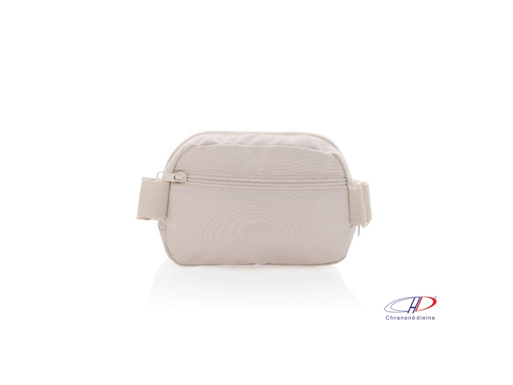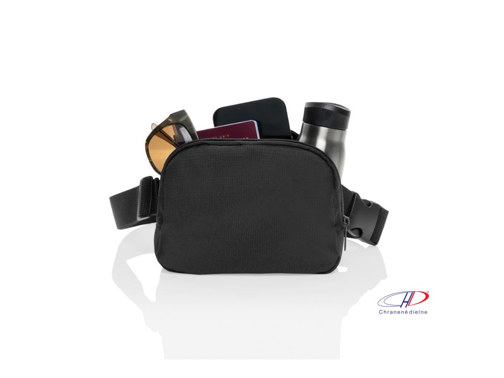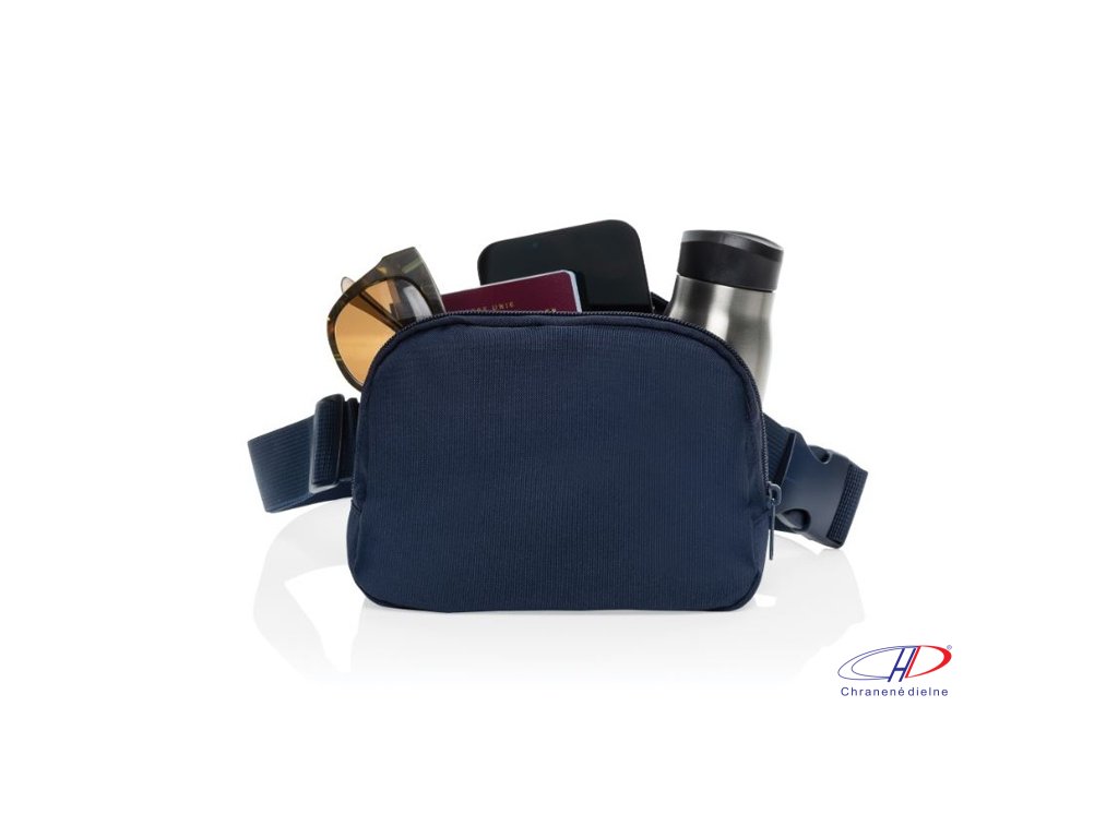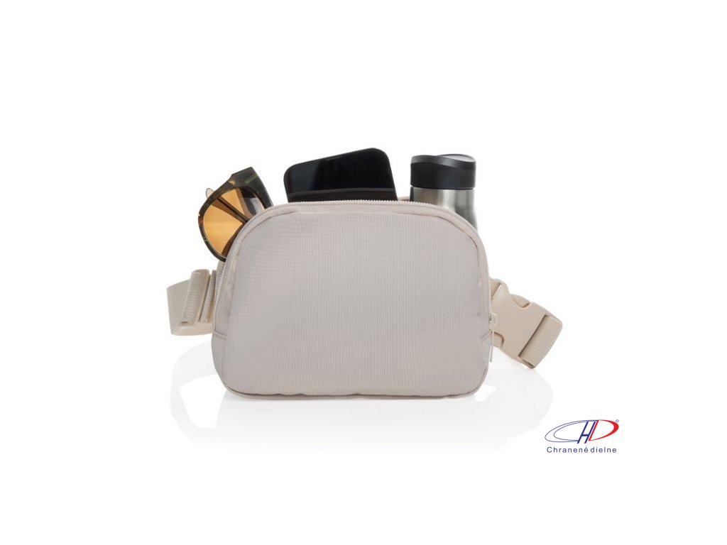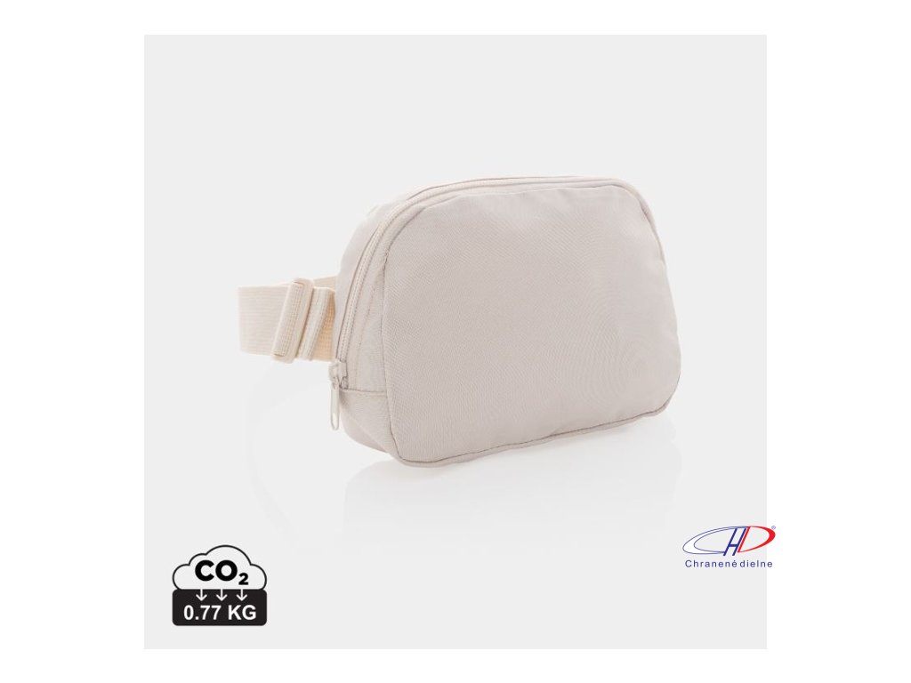 Taška zo 100% rPET AWARE™ má nastaviteľný ramenný popruh (100 cm) so šírkou 4 cm. Ponúka zadné vrecko na zips a hlavnú priehradku na zips. Tašku je možné nosiť krížom cez rameno alebo ako ľadvinku. Neobsahuje PVC.Dodatočné parametre