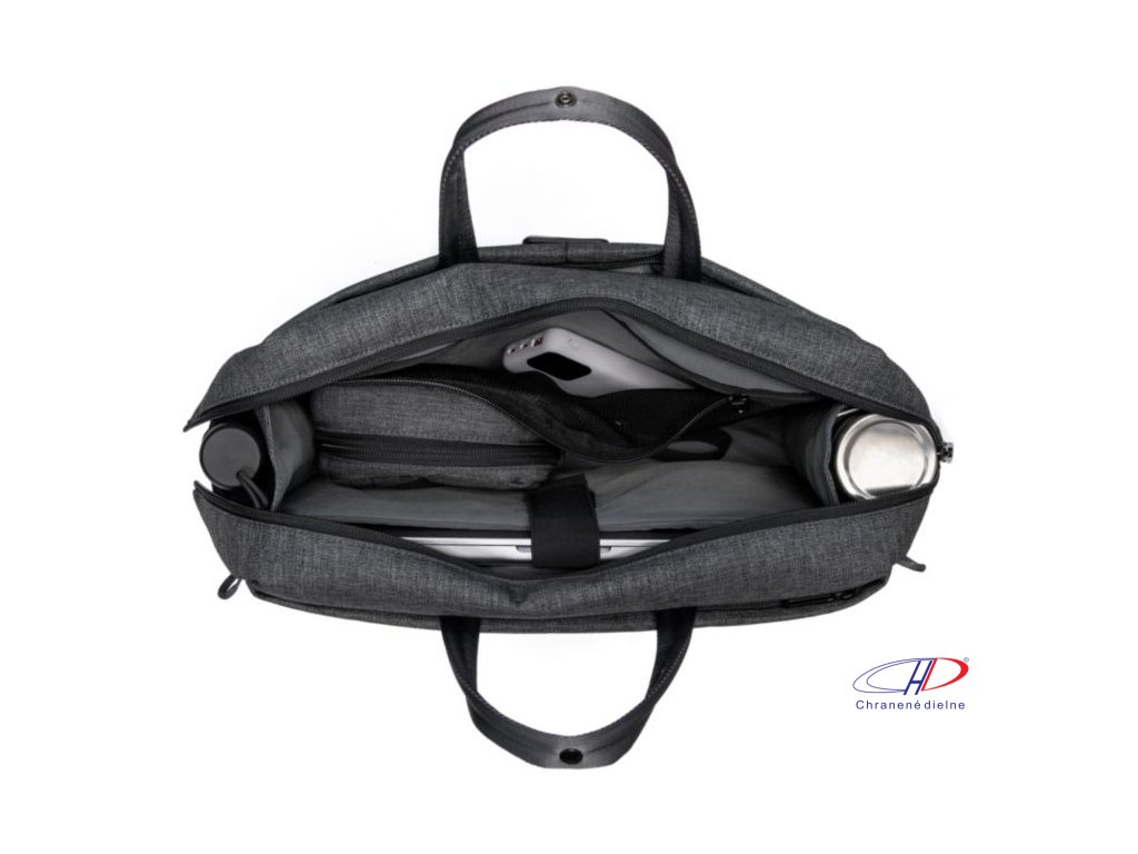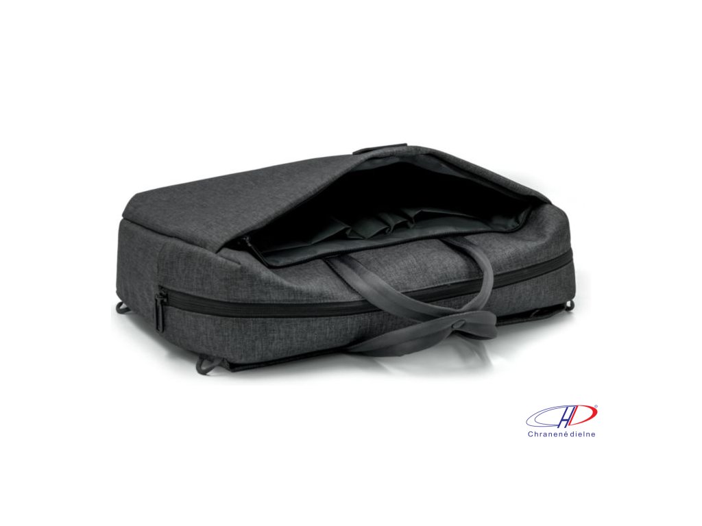 Hlavná priehradka s polstrovaným vreckom na 16´notebooky a viacero vreciek na tablet, telefón, nabíjačku, káble, perá. Bočné vrecká na fľašu a dáždnik. Vyrobená z odolnej, vode a škvrnám odpudzujúcej tkaniny. Zapínanie na zips, popruh, 4 priehradky.Dodatočné parametre