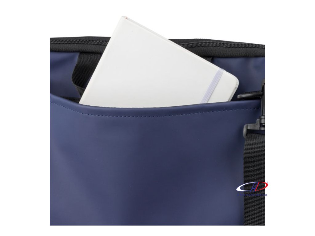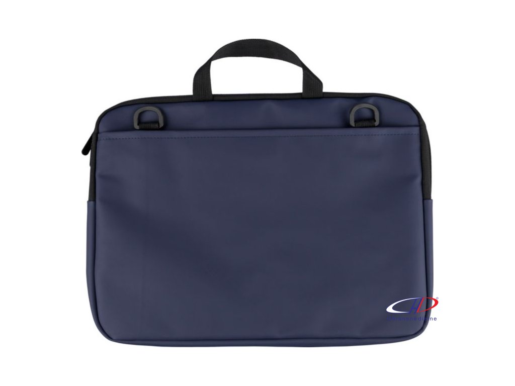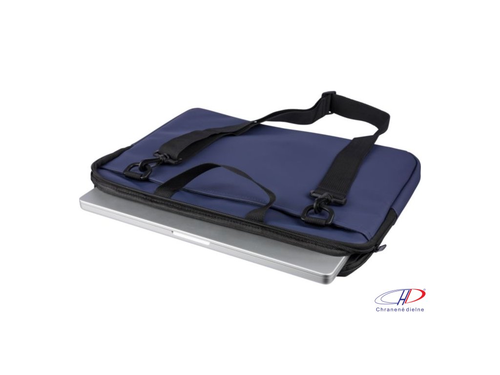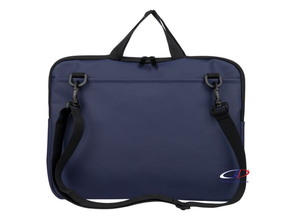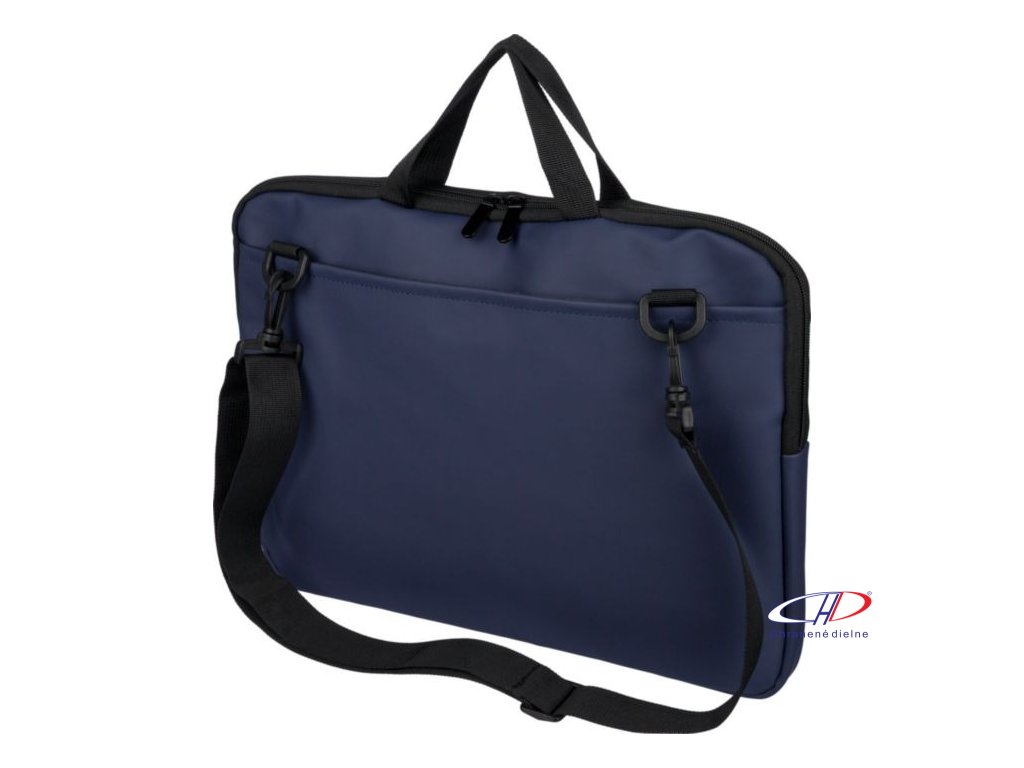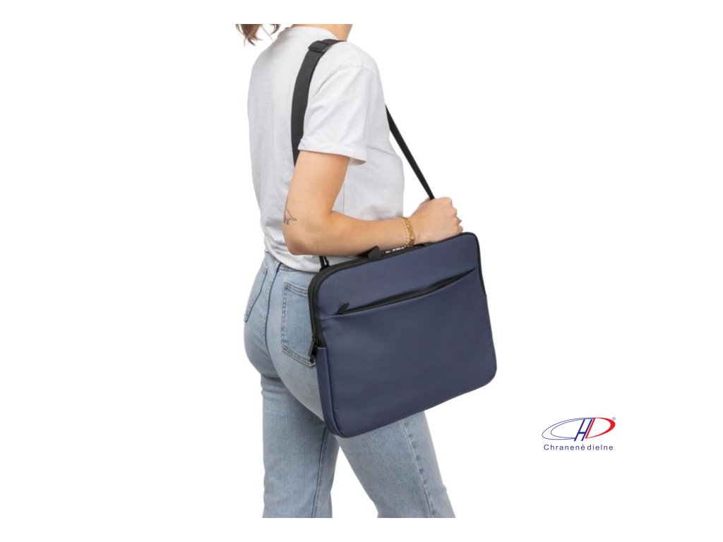 Taška na notebook z recyklovaného PU pre zariadenia do 15 palcov so 4 mm výplňou a podšívkou z recyklovaného materiálu 210D. Má predné vrecko na zips, zadné vrecko so suchým zipsom, dve krátke rúčky, nastaviteľný ramenný popruh.Dodatočné parametre