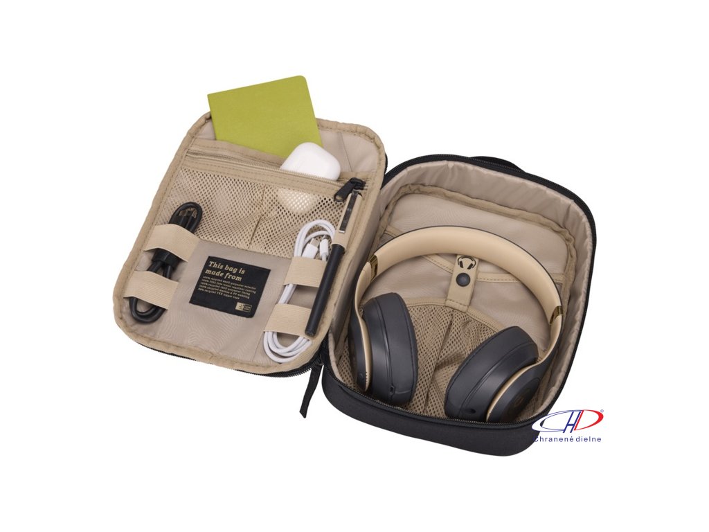Táto taška je vyrobená zo 100% recyklovaného polyesteru 600D a podšívky z polyesteru 150D. Obsahuje vrecko na pero, vrecko na zips, veľké vrecko a vyhradené úložné priestory pre väčšie predmety, ako sú slúchadlá.Dodatočné parametre