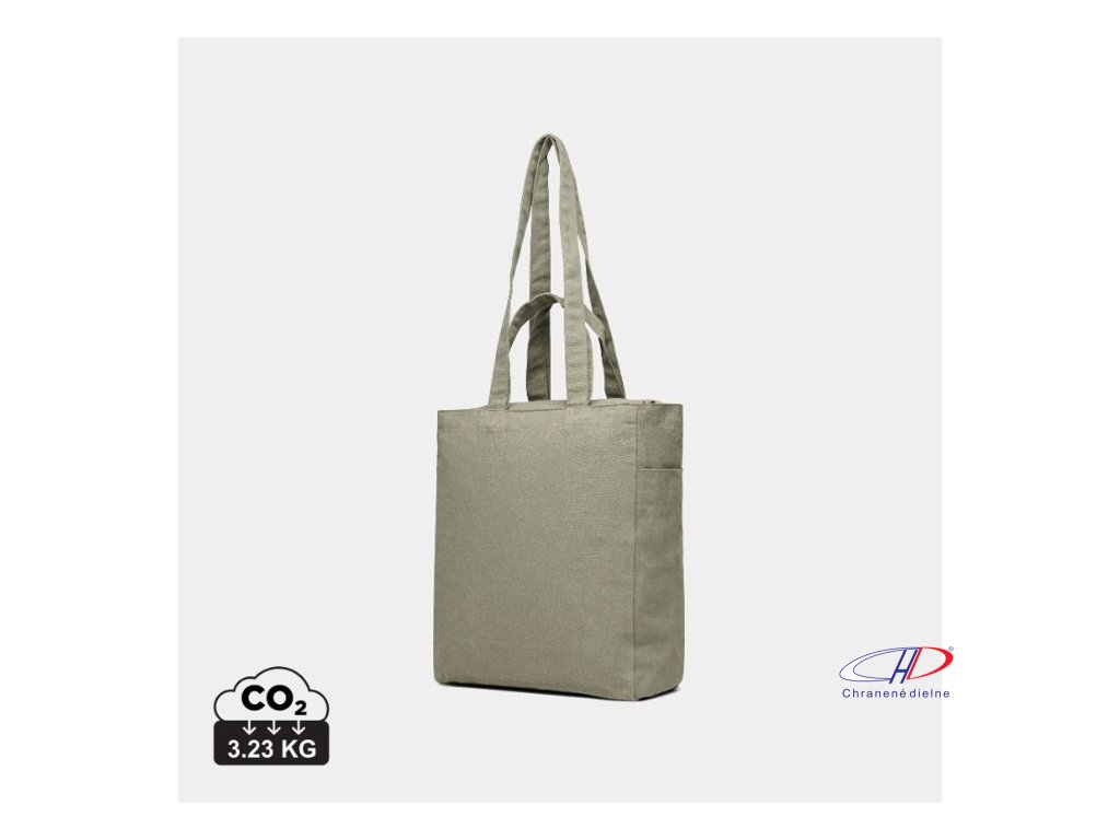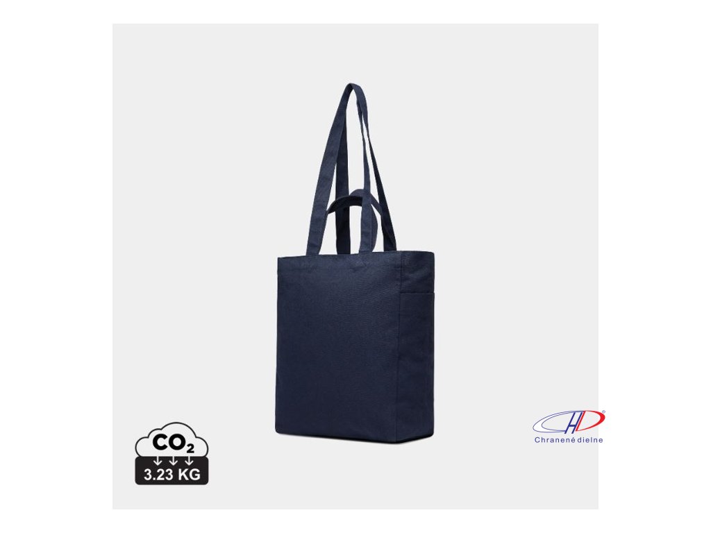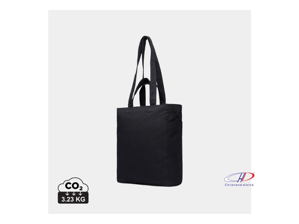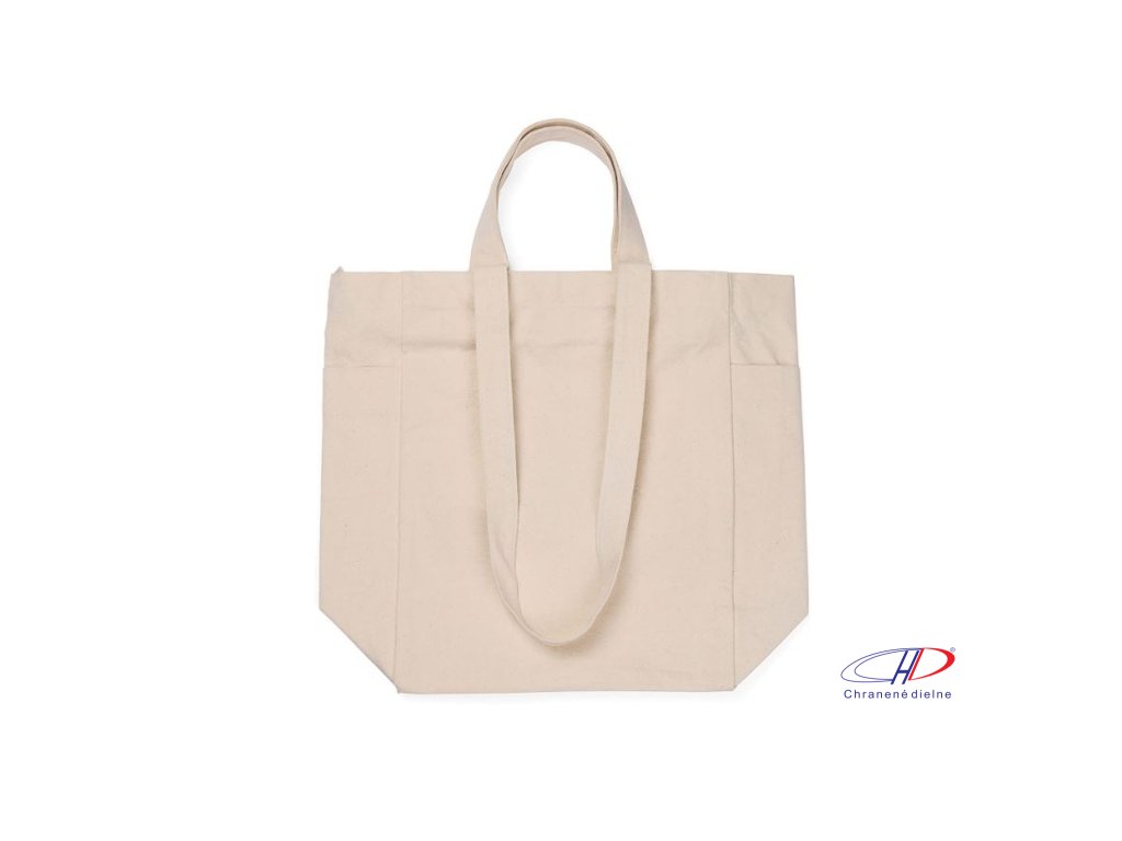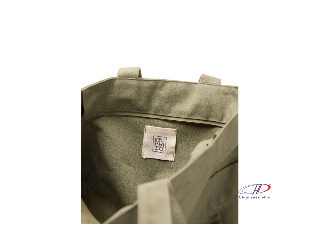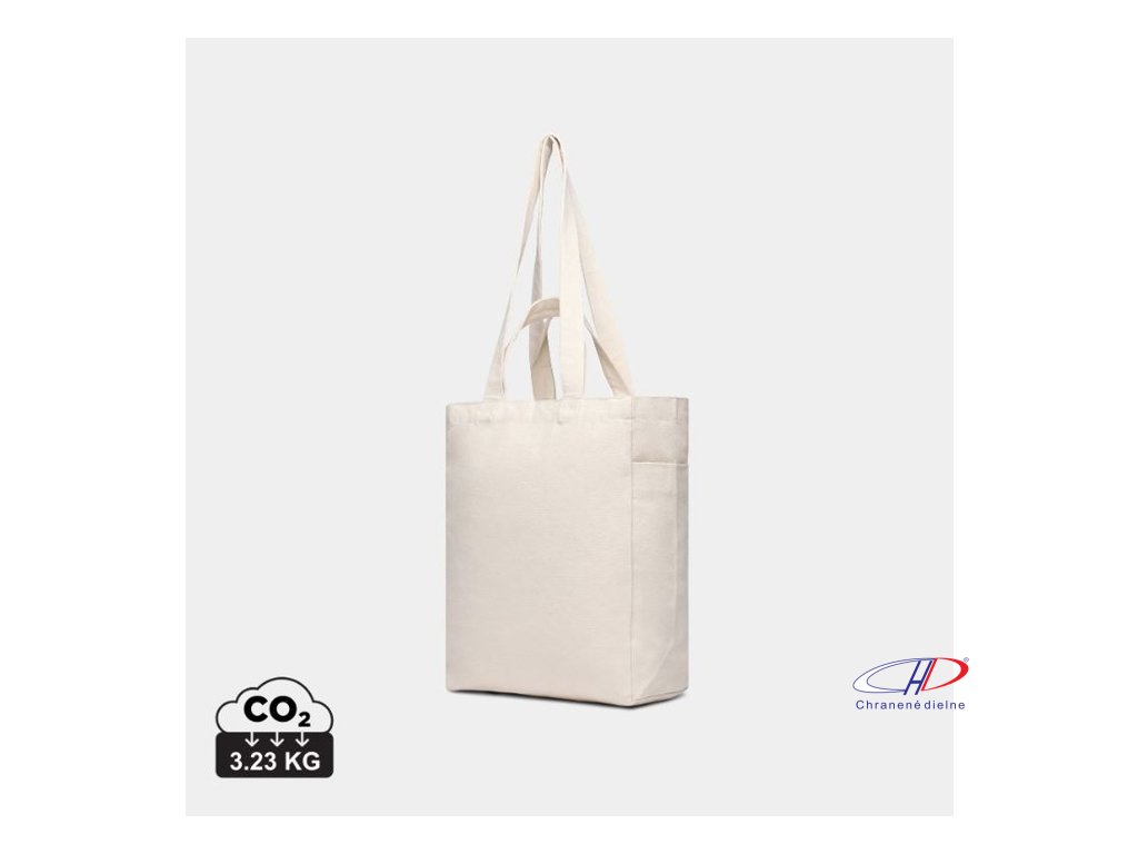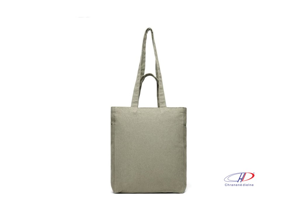 Kratšie uši na nosenie v ruke, dlhšie uši na nosenie na ramene. Dve otvorené vonkajšie vrecká. Vyrobené z recyklovaného nefarbeného plátna (canvas) bez použitia bielidiel a chemikálií. Zloženie: 70% recyklovaná bavlna, 30% recyklovaný polyester. AWARE™Dodatočné parametre