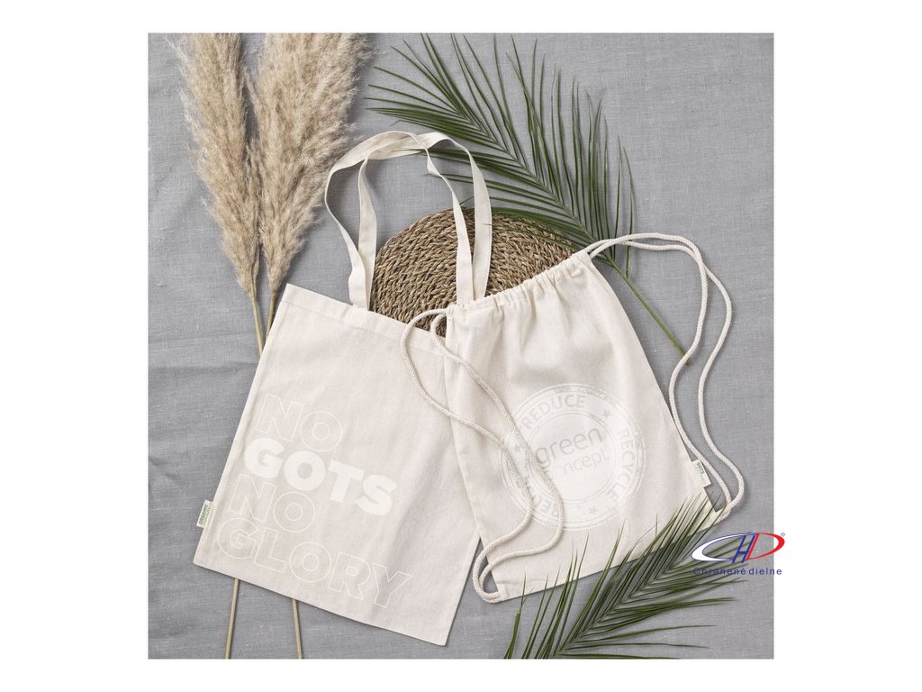 Ekologická nákupná taška z organickej bavlny s certifikátom GOTS. Dve uši so zníženou výškou 32 cm. Nosnosť 10 kg.