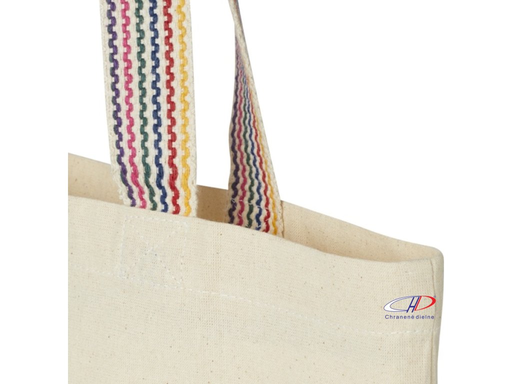 Tato taška na potraviny je vyrobená z recyklovanej, má 25 cm dlhé uši z dúhového popruhu a dno široké 3,5 cm pre väčší úložný priestor.Dodatočné parametre