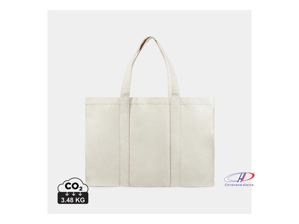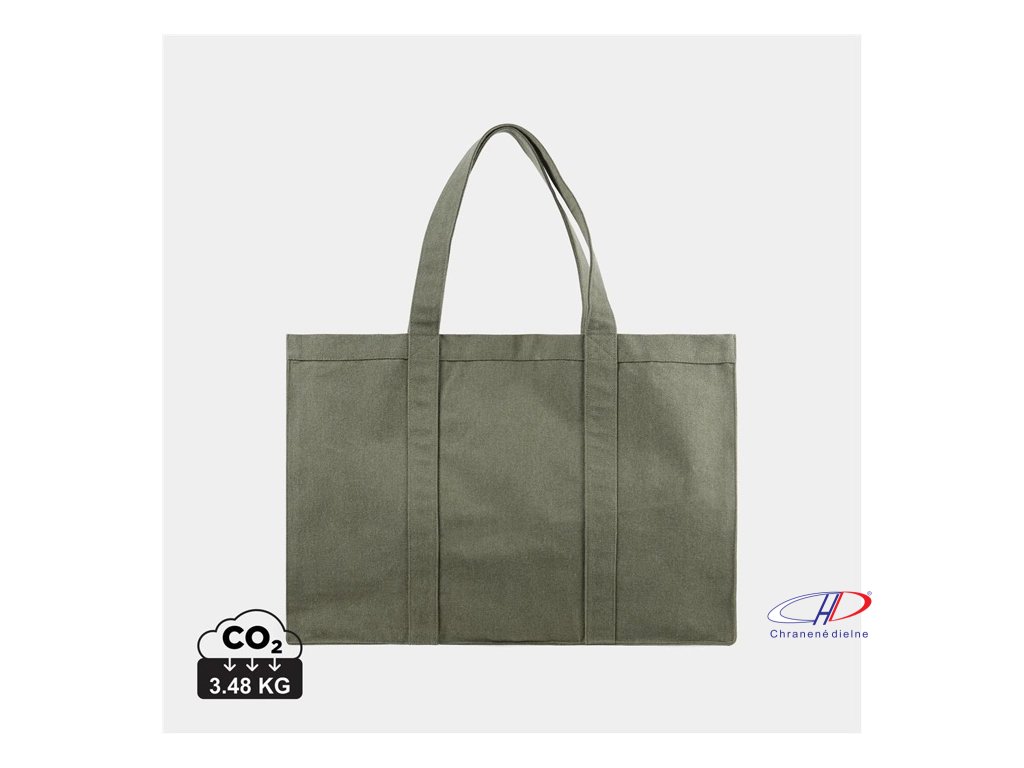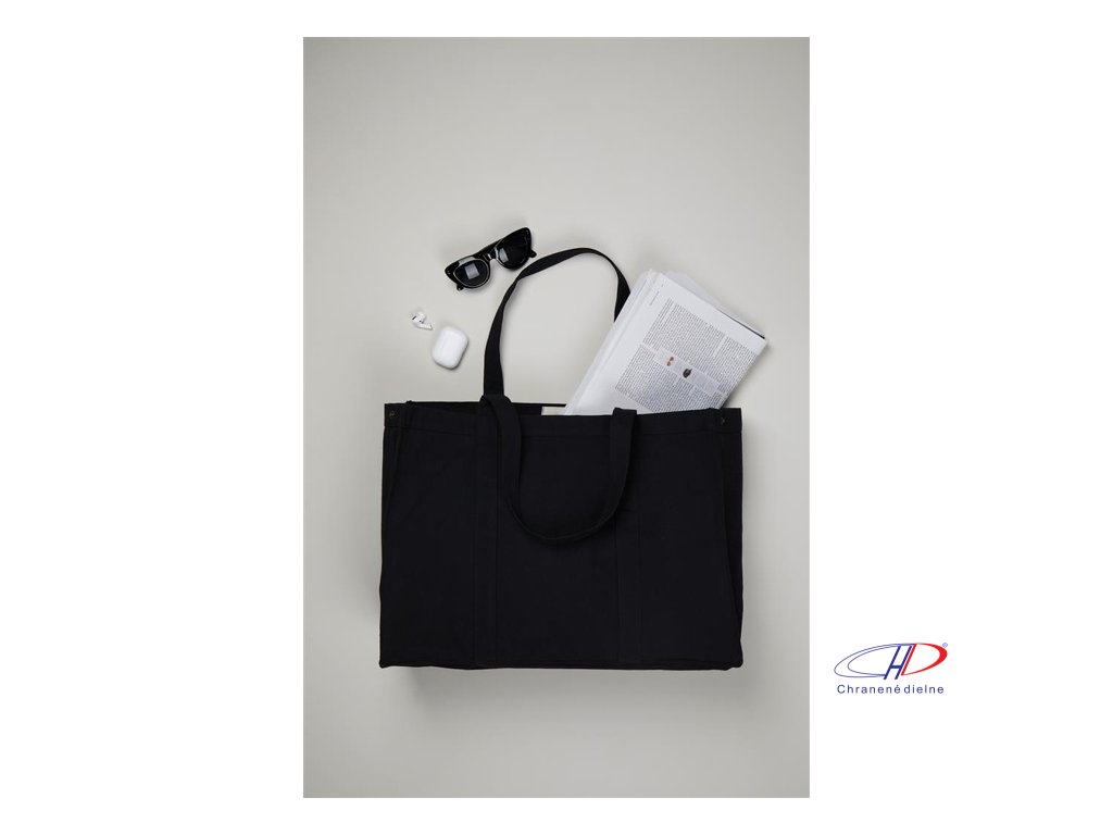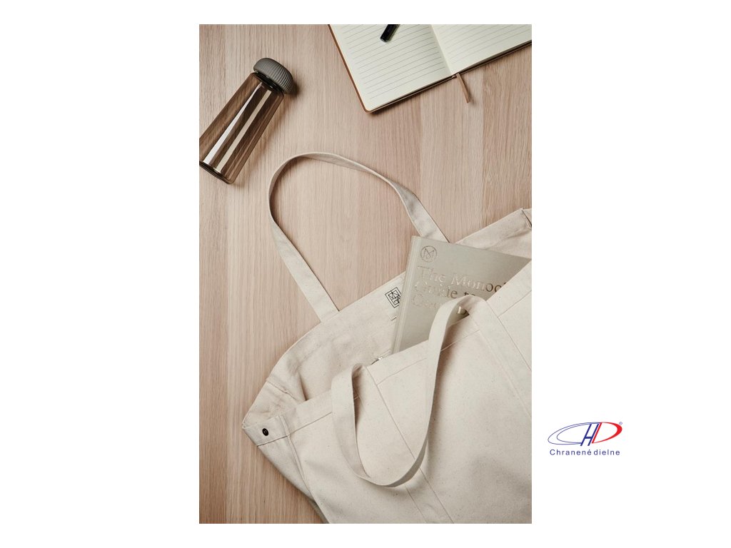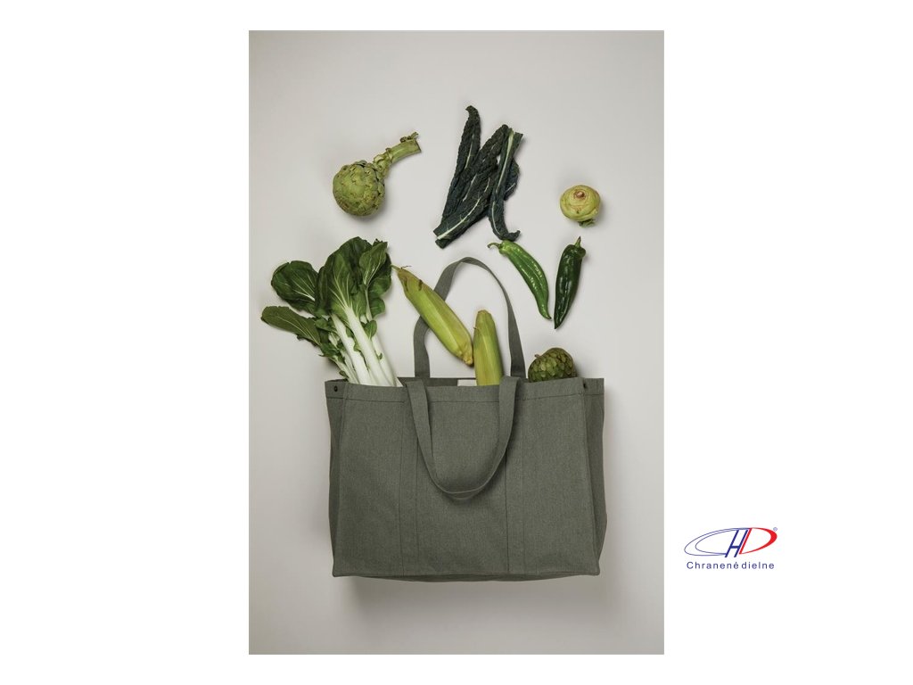 Objemná nákupná taška na každodenné použitie. Vnútorné vrecko na zips na drobnosti. Vyrobená z 400gsm plátna : 70% recyklovaná bavlna, 30% recyklovaný polyester. Vzhľadom na recyklovanú povahu sa v materiáli môžu vyskytovať nečistoty a farebné odchýlky.Dodatočné parametre