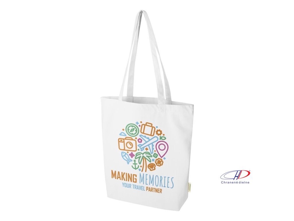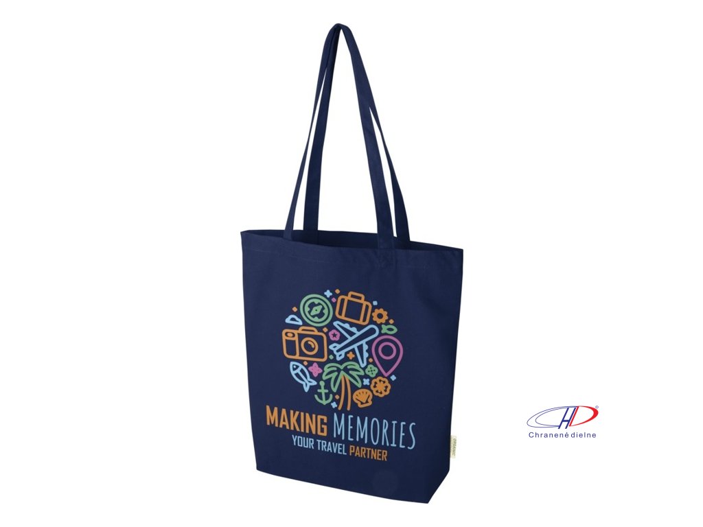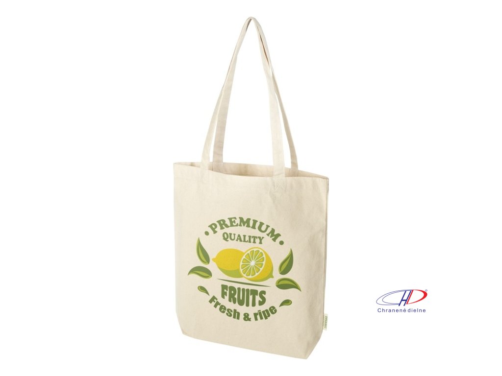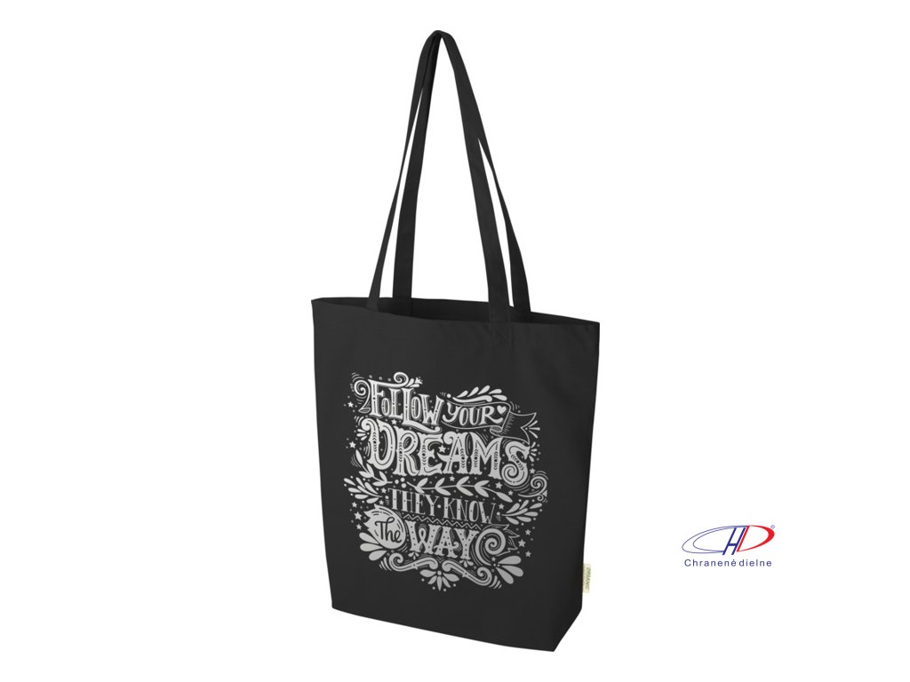 Nákupná taška Orissa so širokým dnom a dlhými ušami zo 100% biobavlny o gramáži 270 g/m2. Objemová kapacita: 10 litrov.Dodatočné parametre