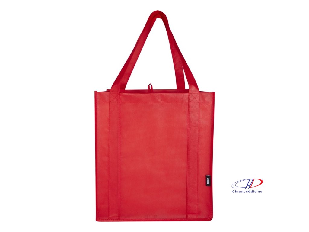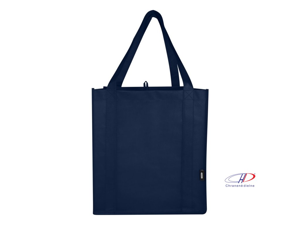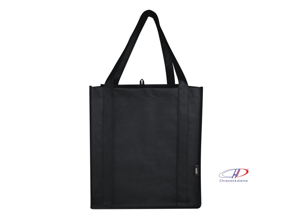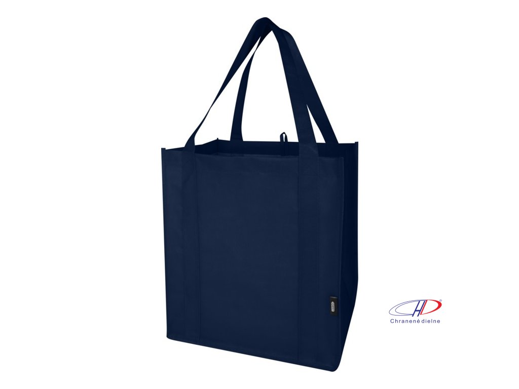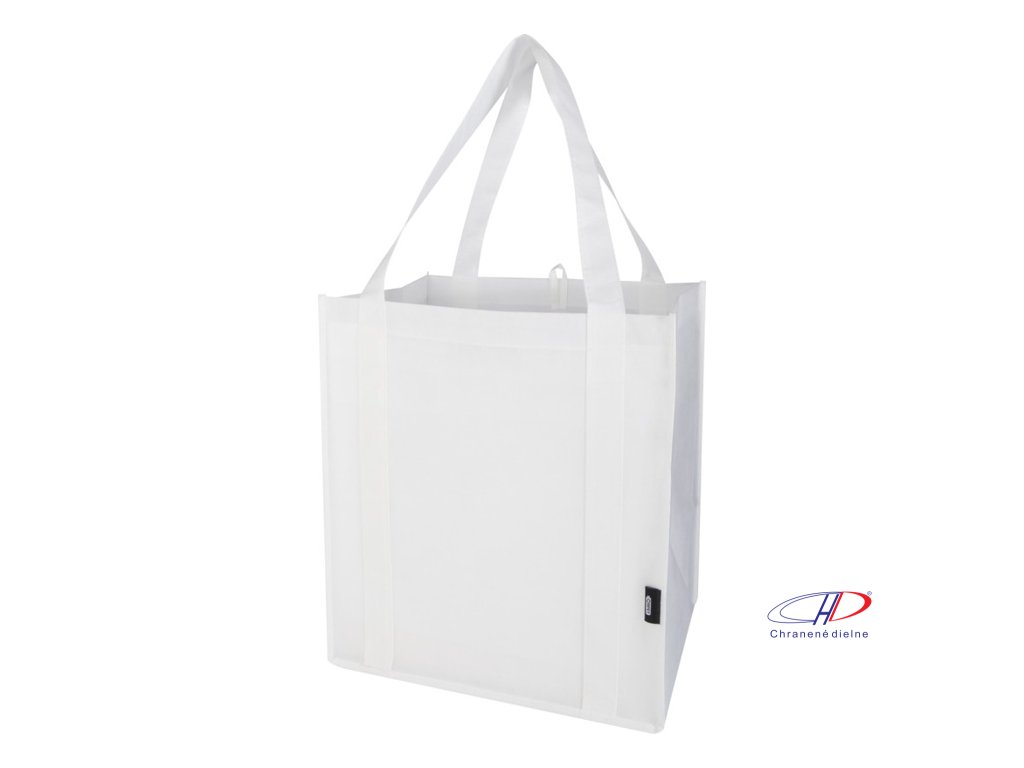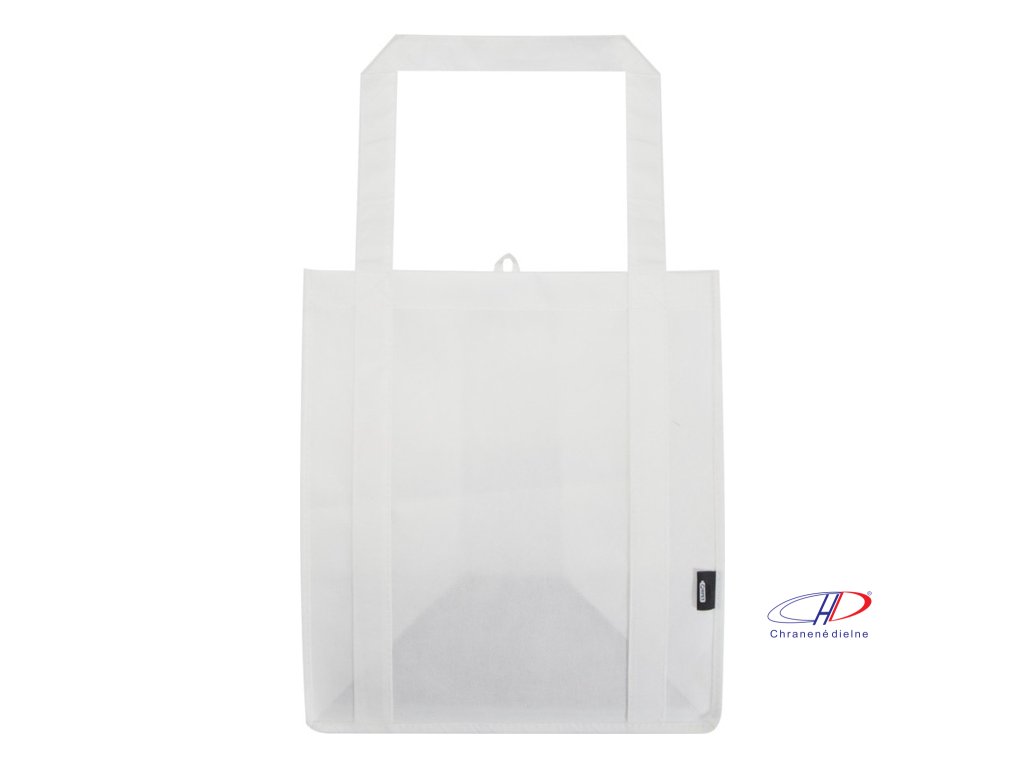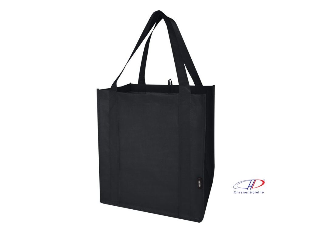 Recyklovaná nákupná taška Liberty s certifikáciou GRS vyrobená z odolného netkaného RPET má podpornú spodnú dosku, vďaka ktorej je univerzálna a pevná. Nákupná taška má veľkú hlavnú priehradku a uši s dĺžkou 25 cm. Objem: 29 litrov. Nosnosť do 12 kg.Dodatočné parametre