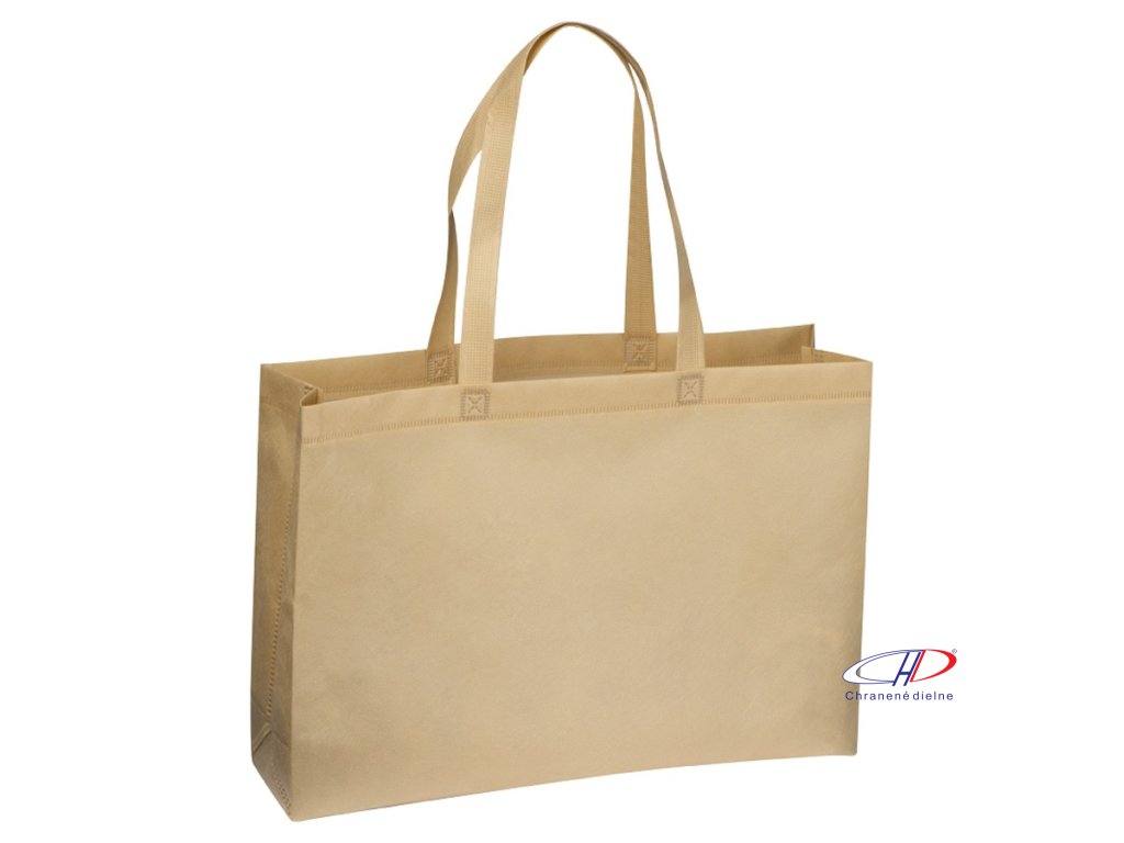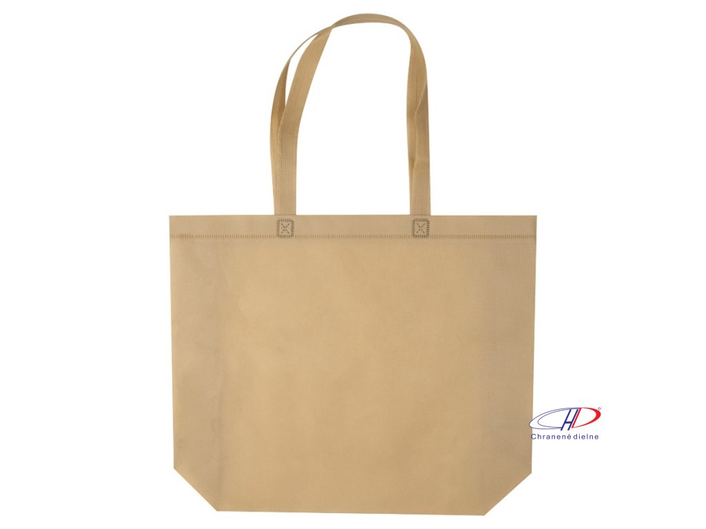 Veľká taška z netkanej textílie s gramážou 80 g/m2, pevným krížovým prešívaním, širokým spodkom a dlhými ušami.Dodatočné parametre