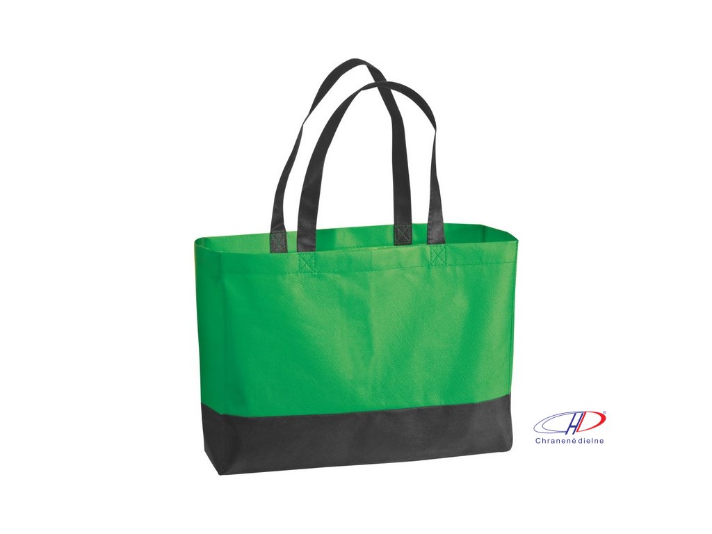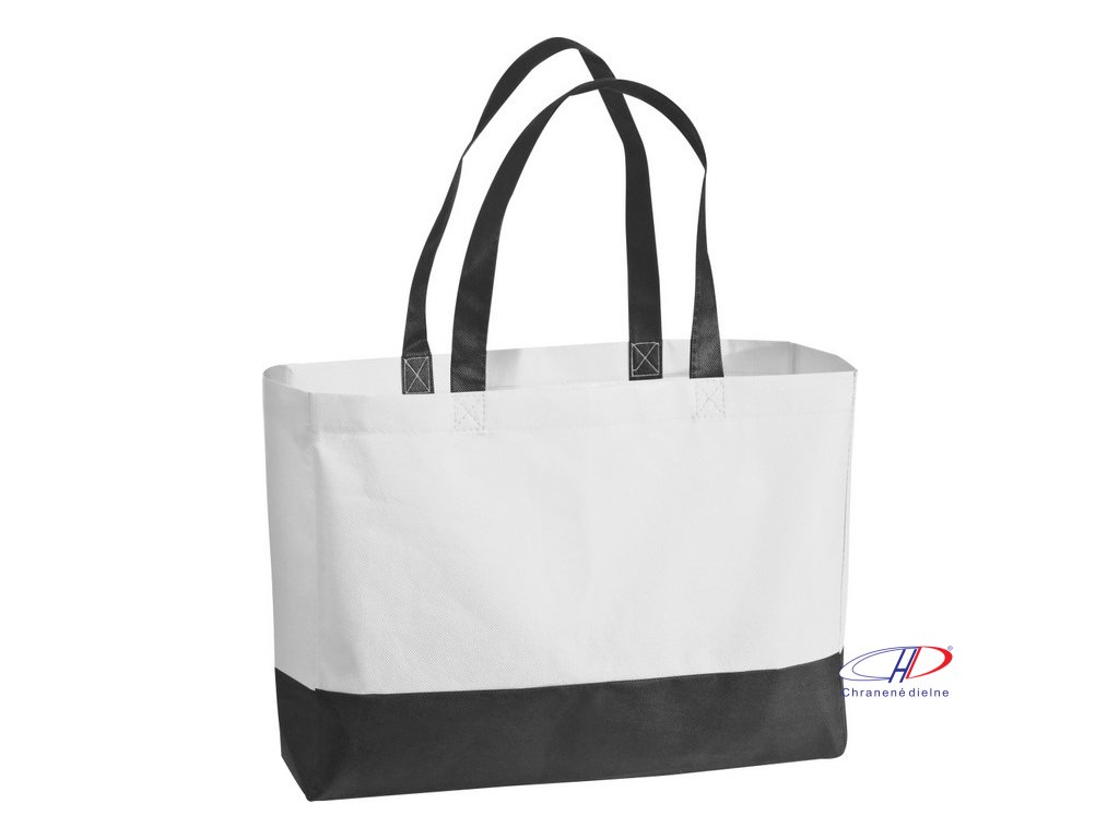 Skladacia netkaná nákupná taška v peknom dvojfarebnom dizajne s ušami.