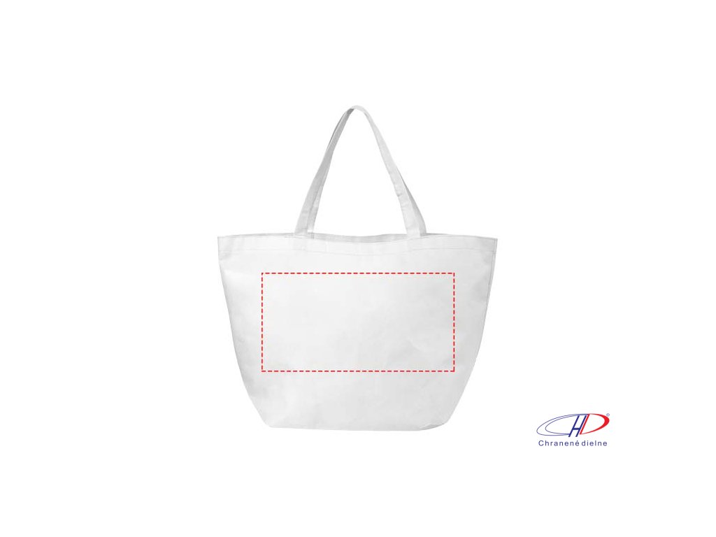 Výborná alternatíva k plastovým taškám. Otvorený hlavný priestor. Výška popruhov 23 cm. Taška je recyklovateľná. Netkaný polypropylén 80 g/m2.