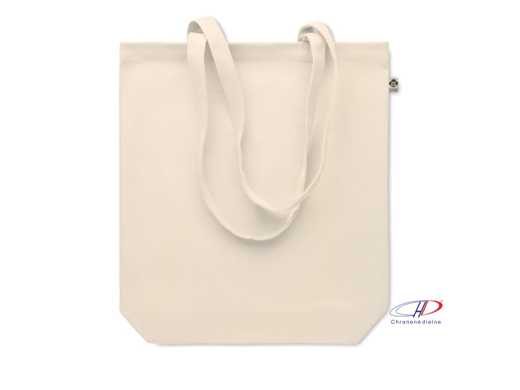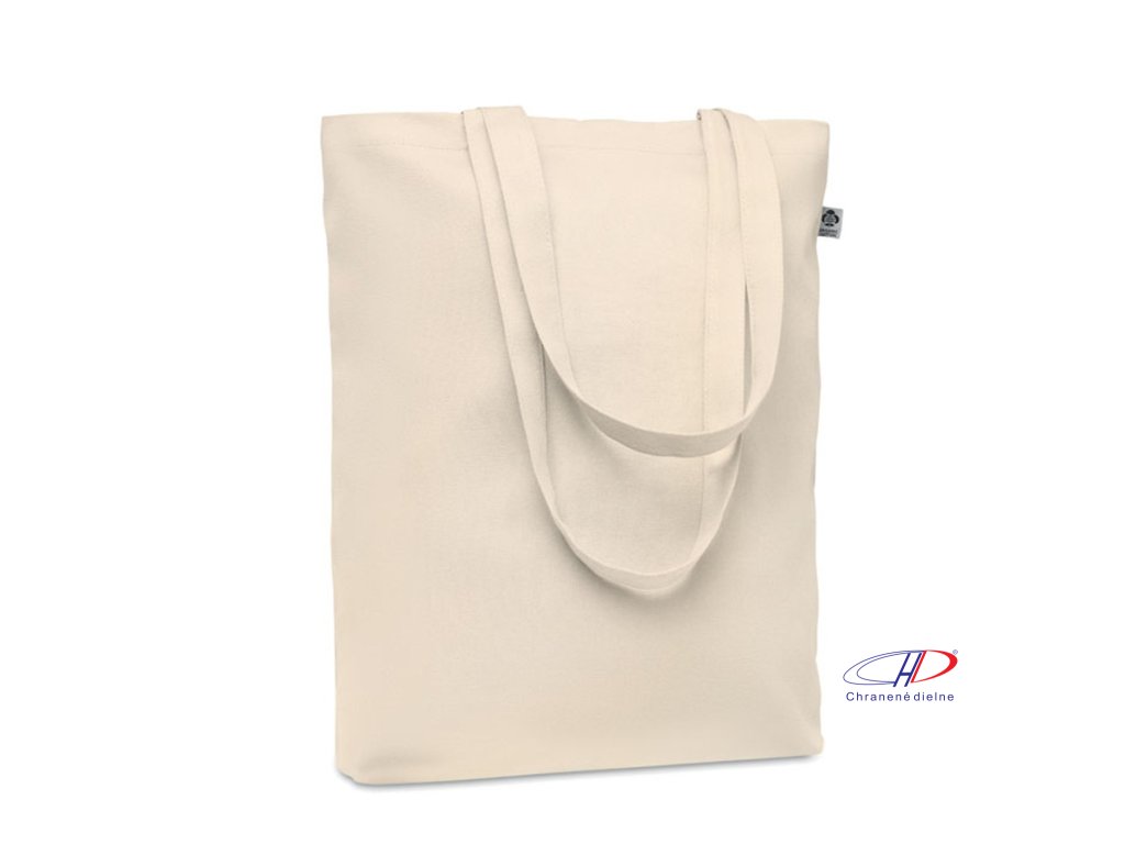 Nákupní taška z organického 270g plátna s dlouhými uchy a klínovým dnem.