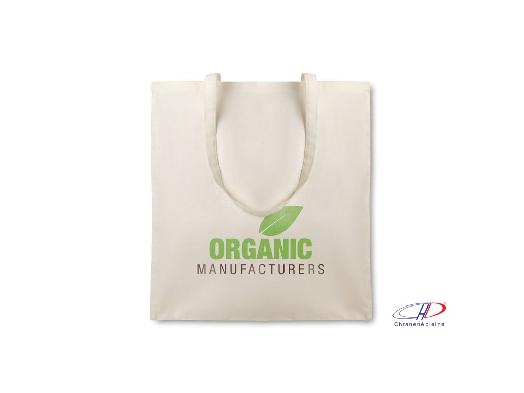 Nákupná taška z organickej bavlny s dlhými ušami, 105 g/m2. 38 x 42 cm Certifikácia GOTS zaisťuje ekologicky a sociálne zodpovedný zber surovín, výrobný proces až po označenie.