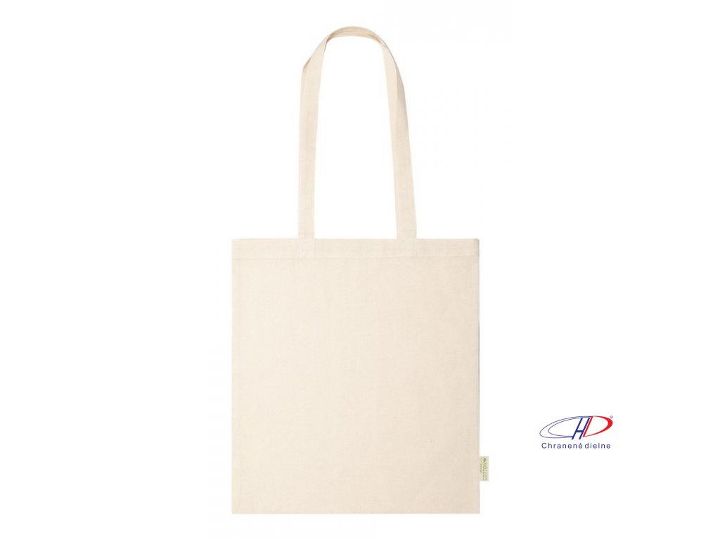 Opakovane použiteľná nákupná taška zo 100% organickej bavlny s dlhými ušami, 120 g / m?.