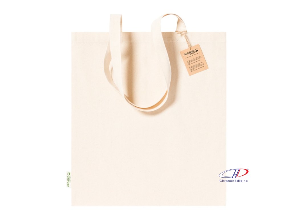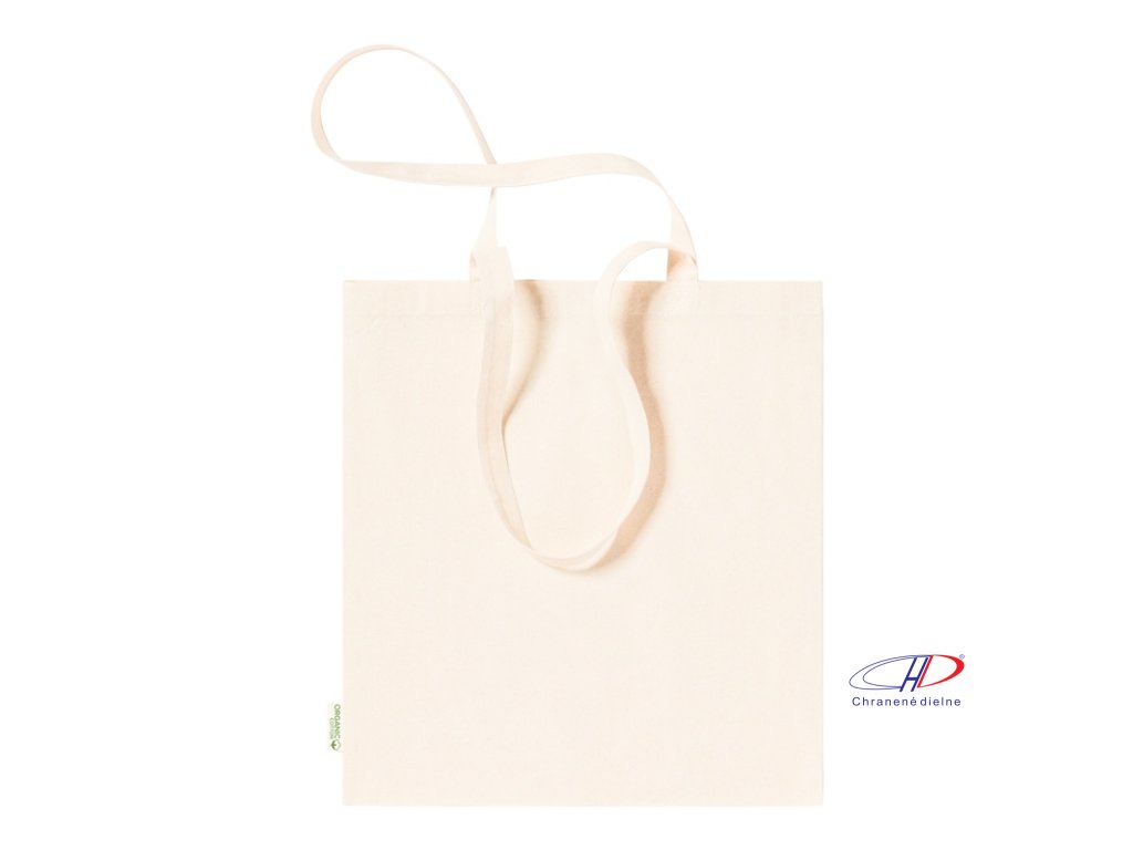 Nákupná taška z organickej bavlny s dlhými ušami. 100% organická bavlna, 140 g/m2.