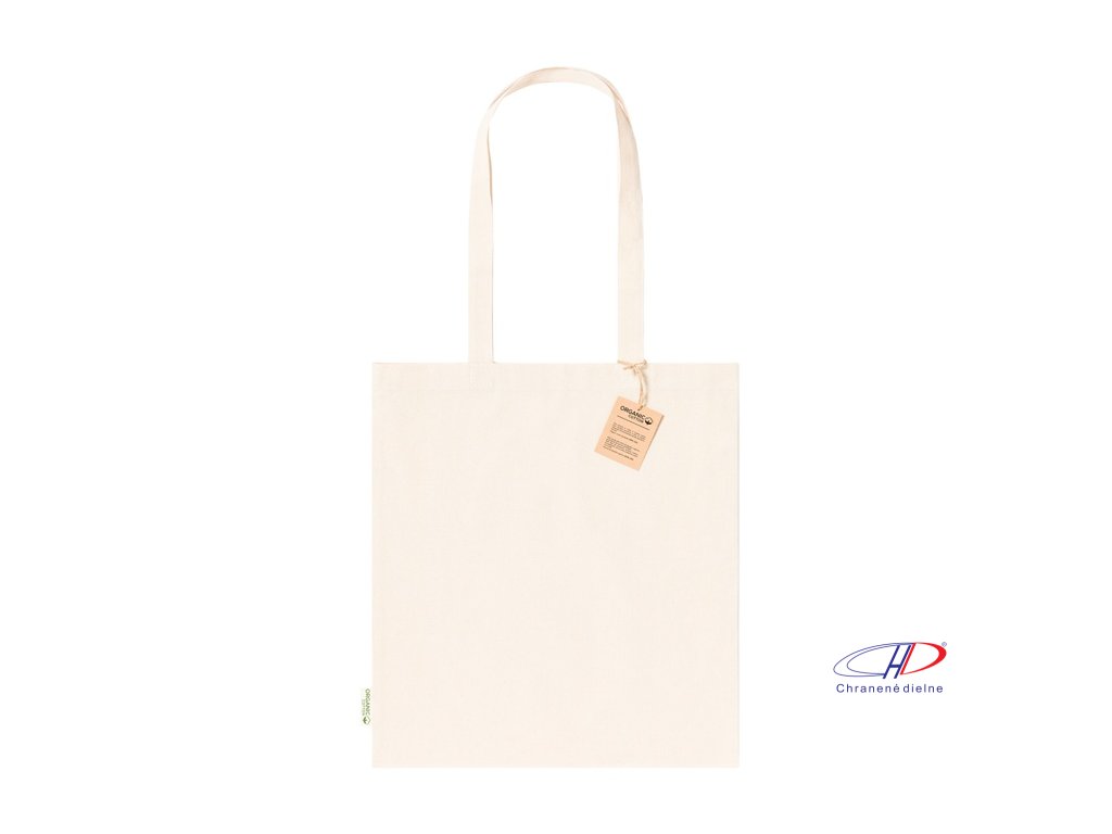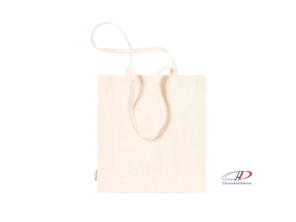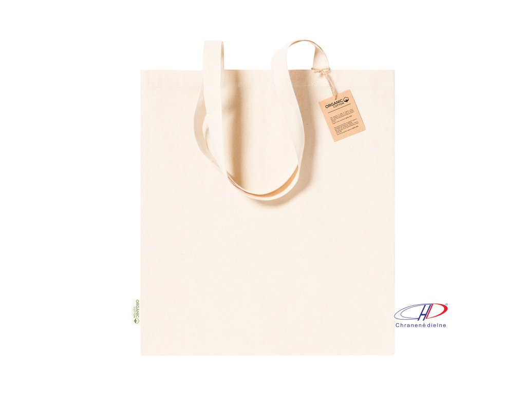 Nákupná taška zo 100 % organickej bavlny s dlhými uškami, so štítkom. 180 g/m2.