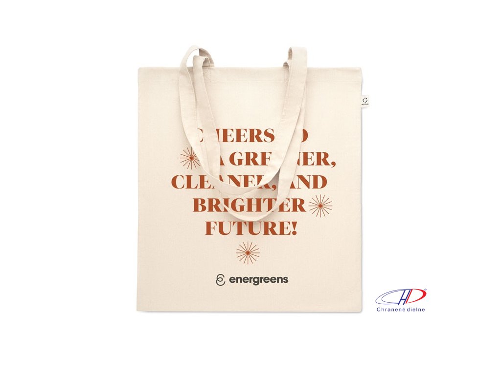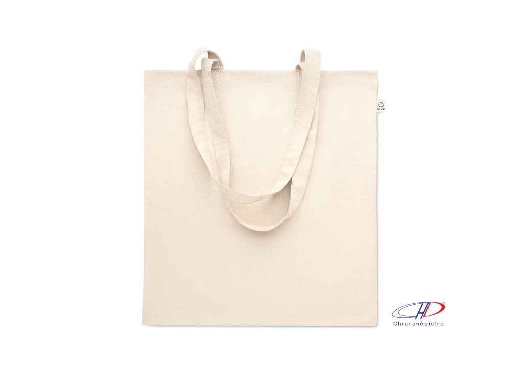 Nákupná taška z recyklovanej predspotrebiteľskej bavlny (70 % recyklovaná bavlna a 30 % RPET) s dlhými rúčkami. Gramáž 140 g/m2.Dodatočné parametre