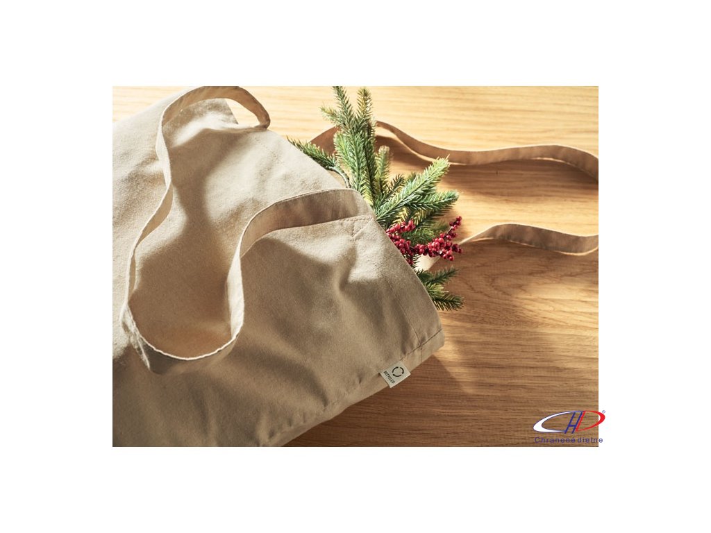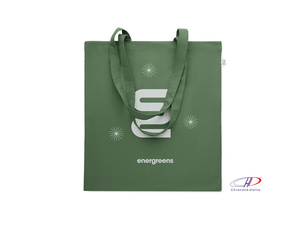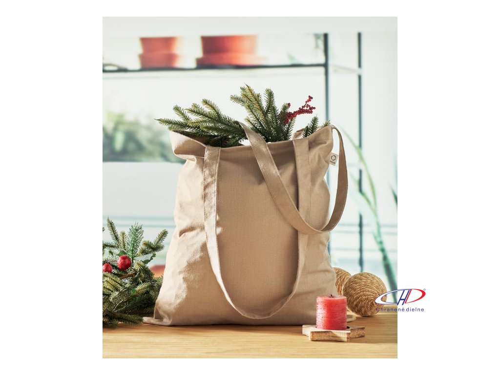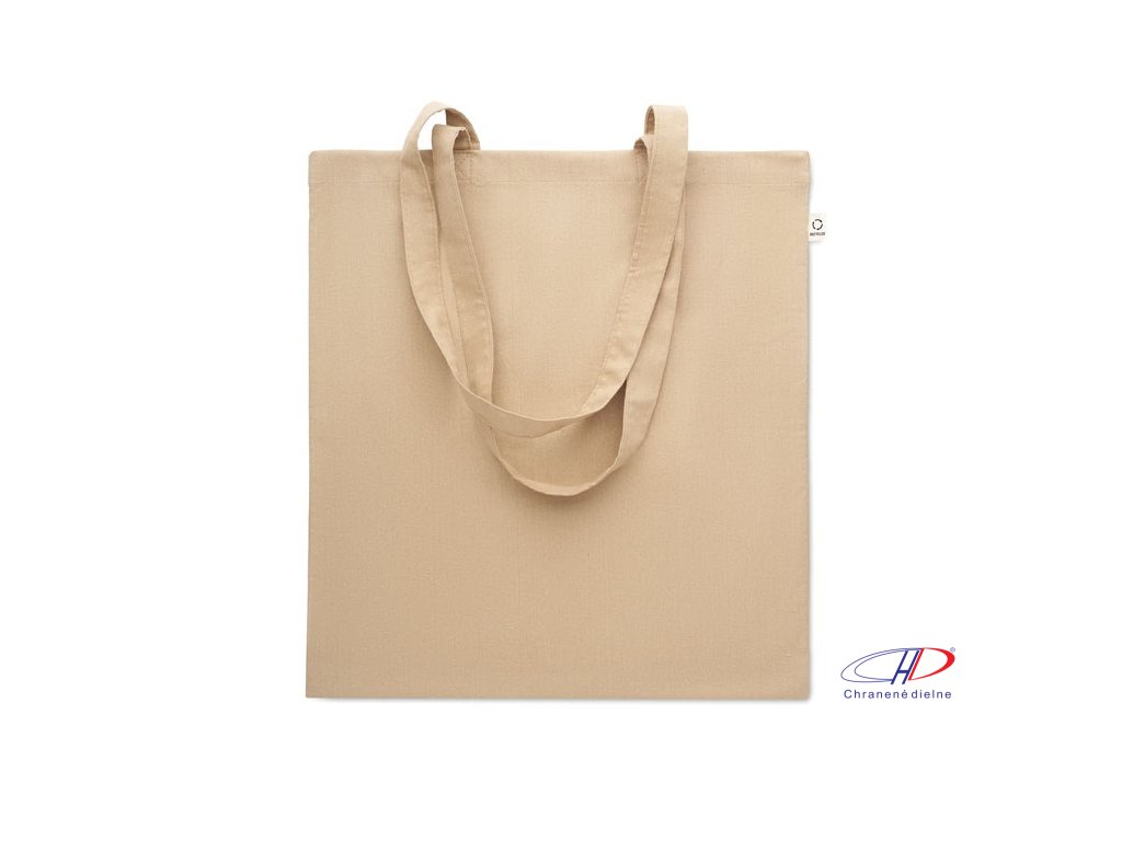 Nákupná taška z recyklovanej predspotrebiteľskej bavlny (70 % recyklovaná bavlna a 30 % RPET) s dlhými rúčkami. Gramáž 140 g/m2.Dodatočné parametre