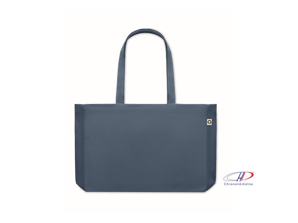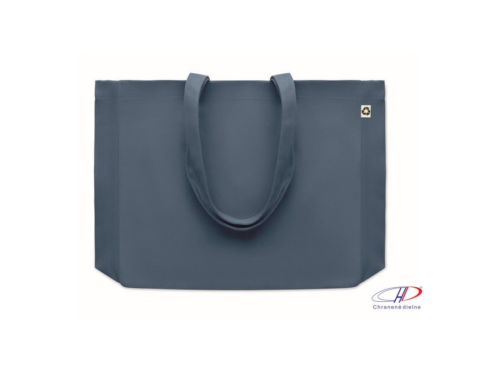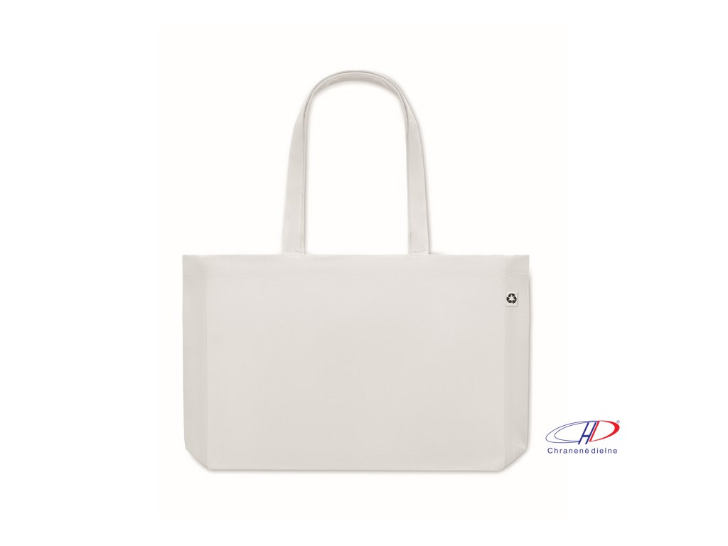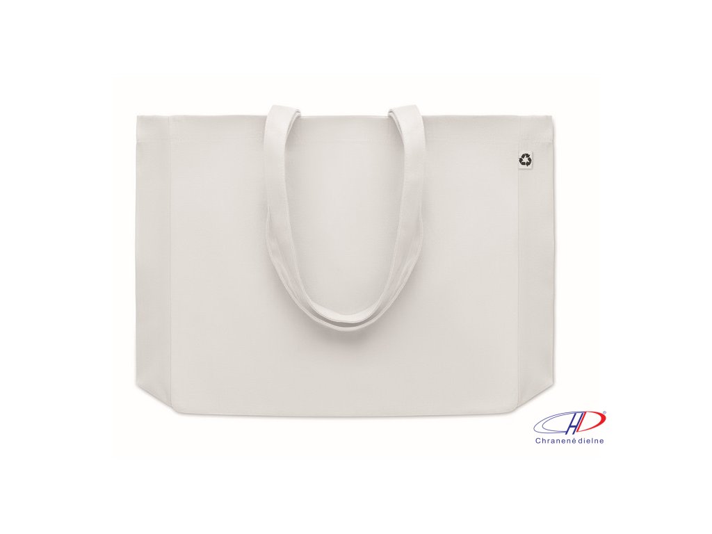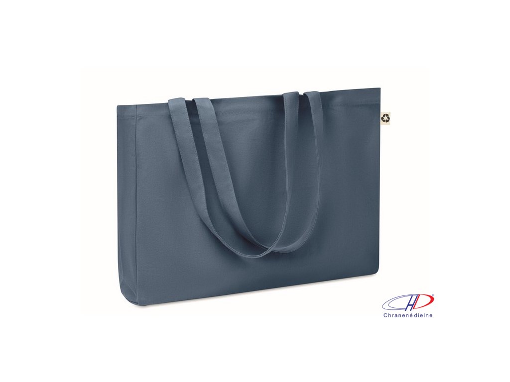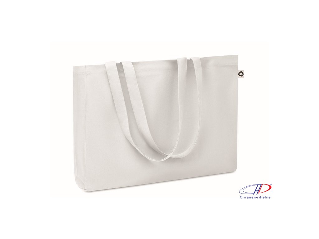 Nákupná alebo plážová taška z recyklovaného plátna s dlhými ušami a klinom. S gramážou 280 g/m2. 50% bavlna a 50% recyklovaná bavlna.
