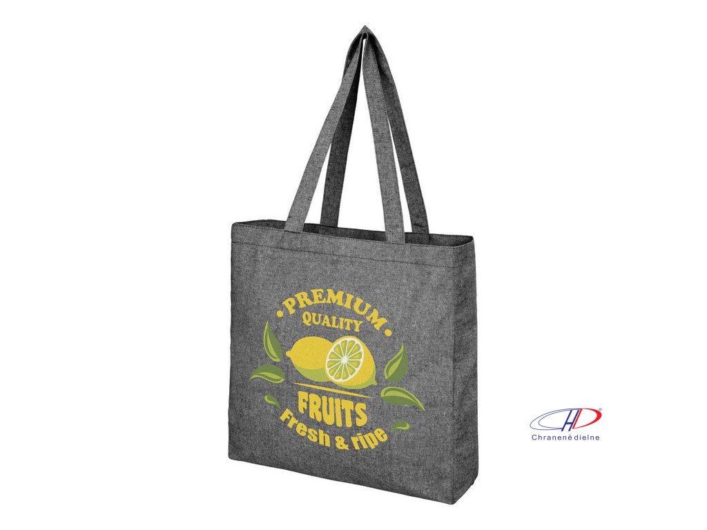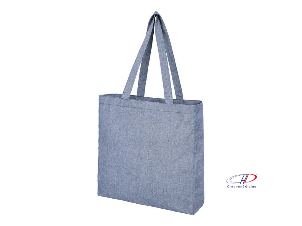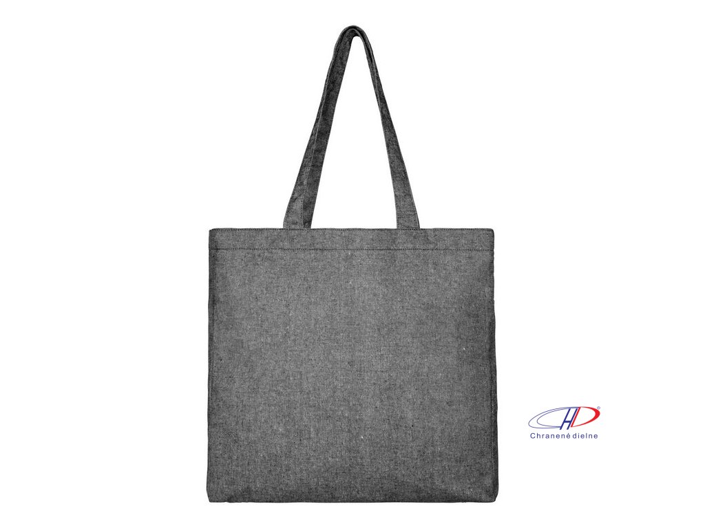 Nákupná taška vyrobená zo zmesi recyklovanej bavlny a polyesteru 210 g / m?. Recyklovaná bavlna pochádza z výrobného odpadu textilných tovární, vznikajúceho počas procesu rezania. Taška so skladacím dnom a veľkou hlavnou priehradkou. Obsahuje dva úchyty s