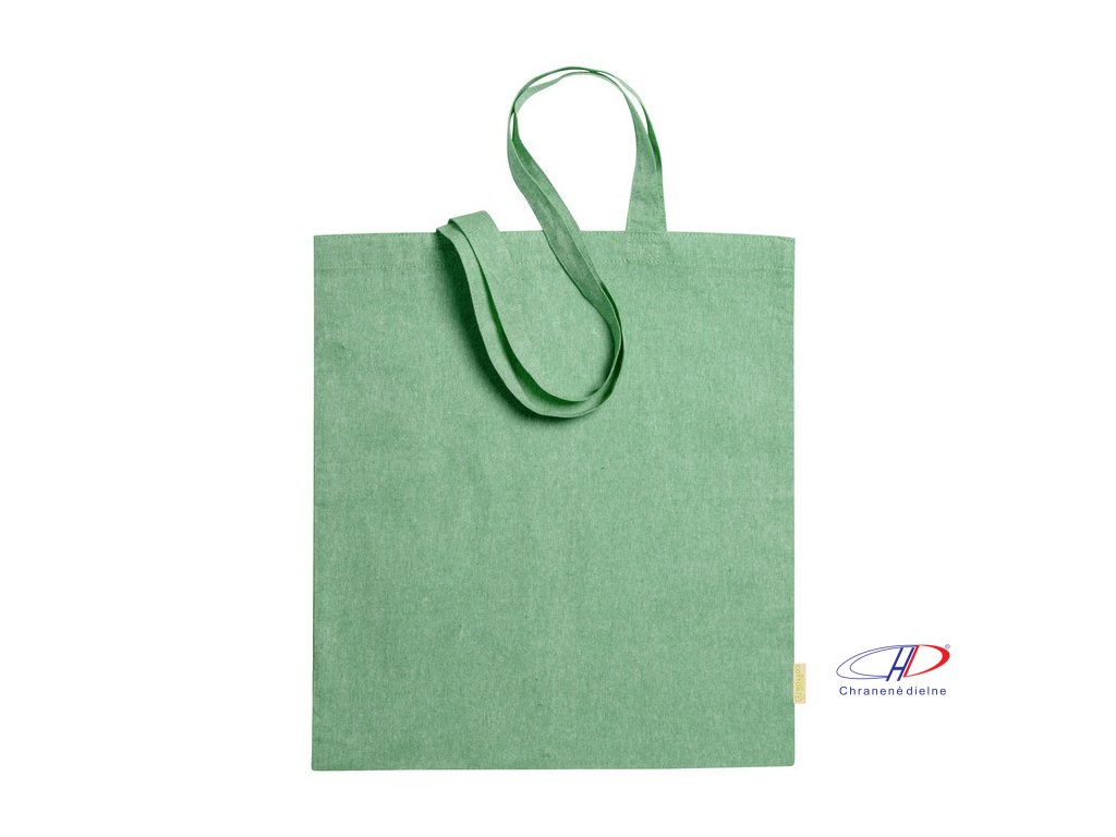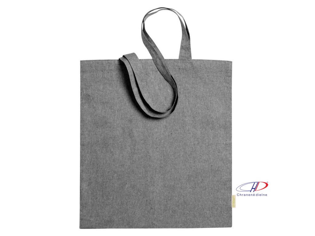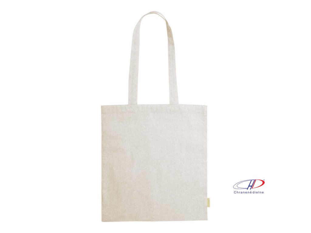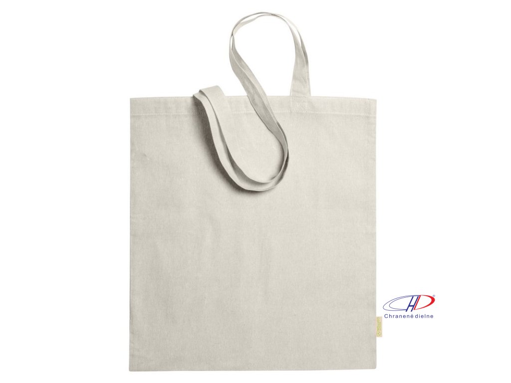 Opakovane použiteľná nákupná taška z recyklovanej bavlny s dlhými ušami, 120 g/m2.