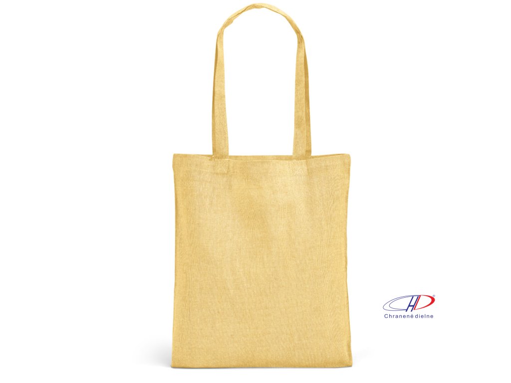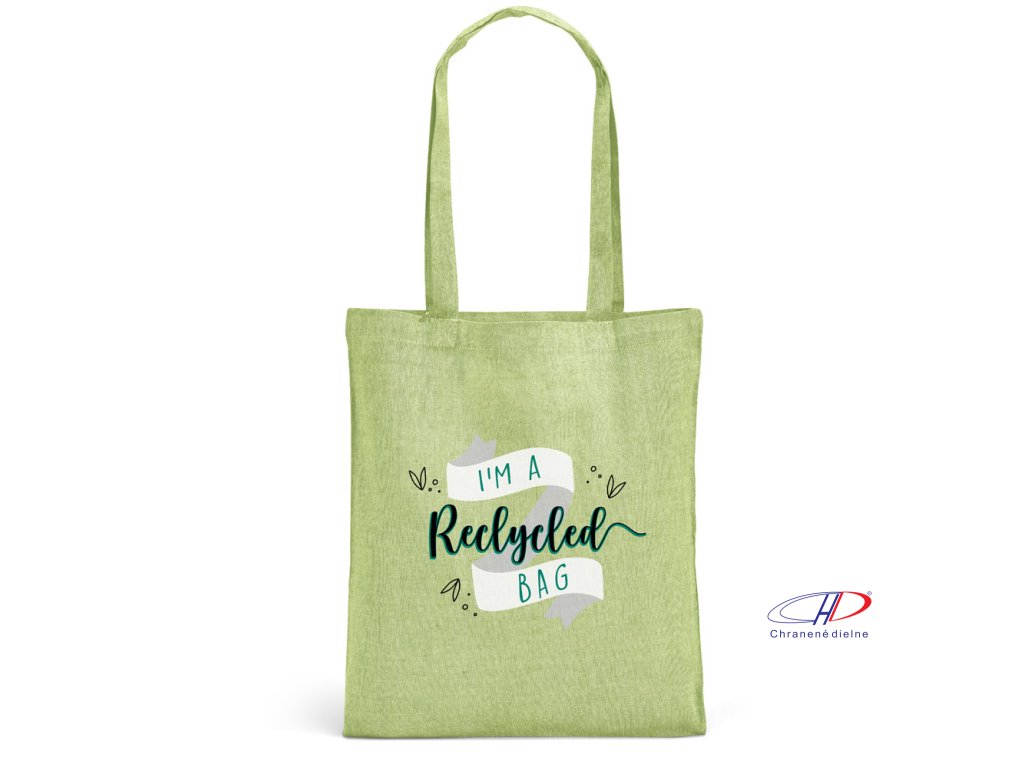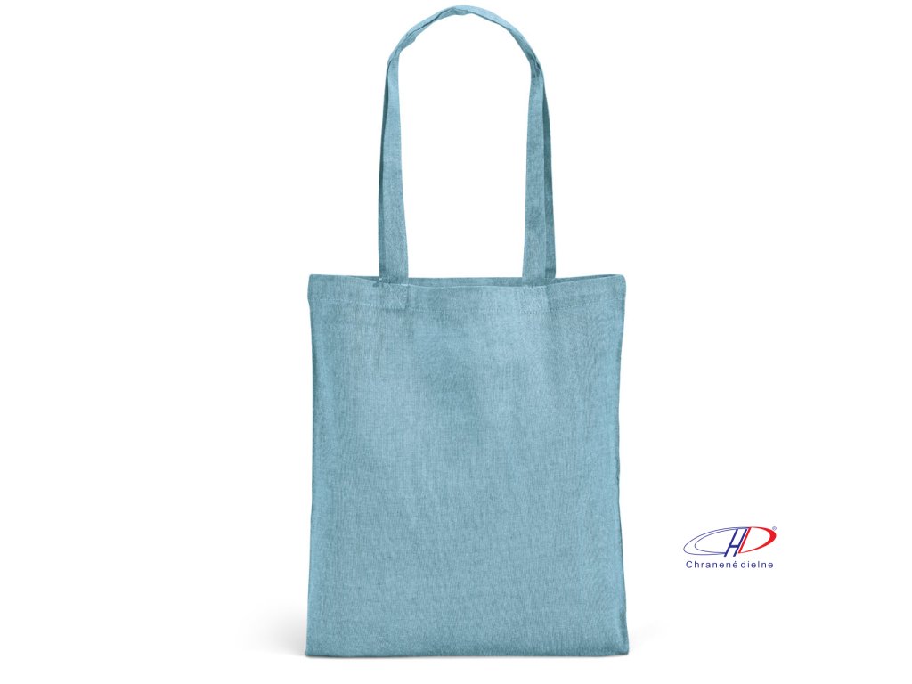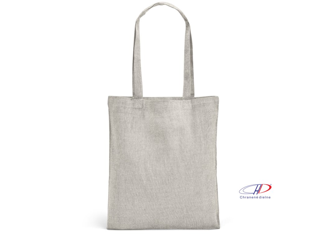 Taška zo zmesi recyklovanej bavlny (70%) a polyesteru (30%) s gramážou 140 g/m2 a 60 cm dlhým uchom.