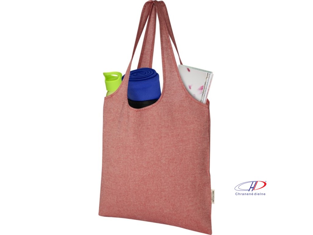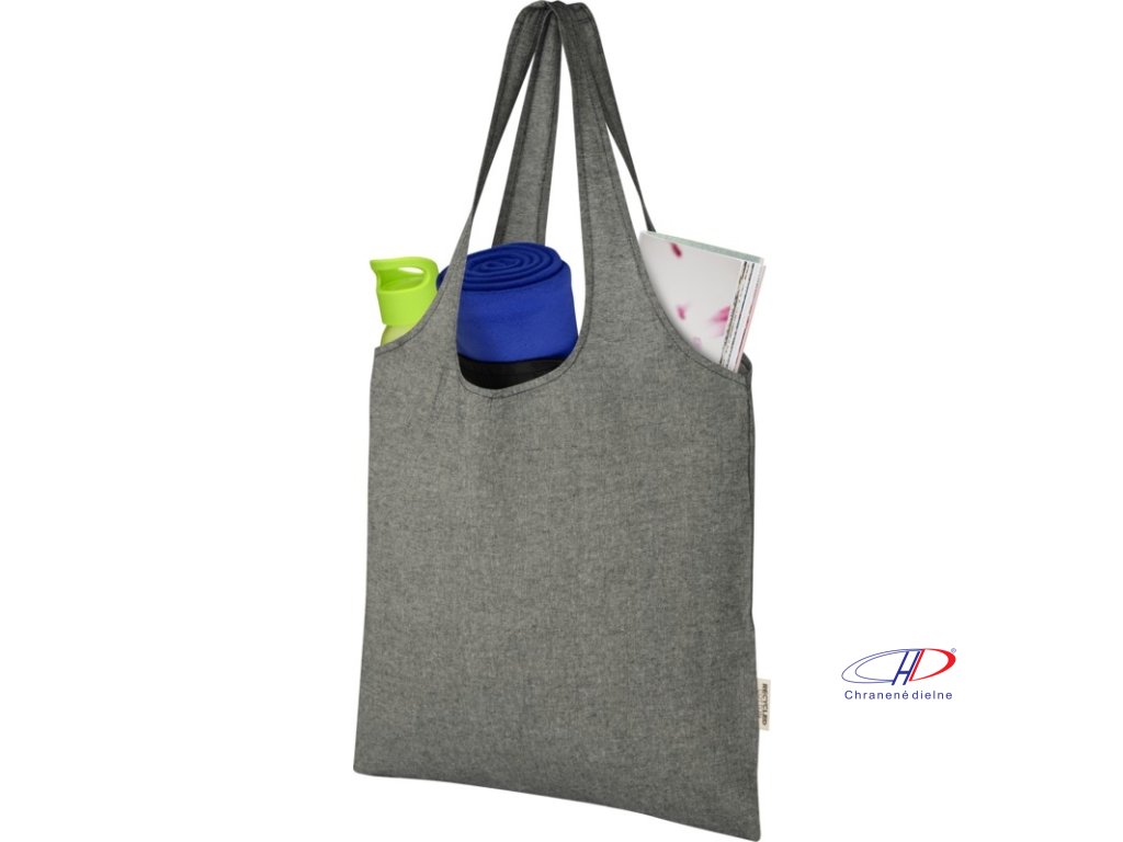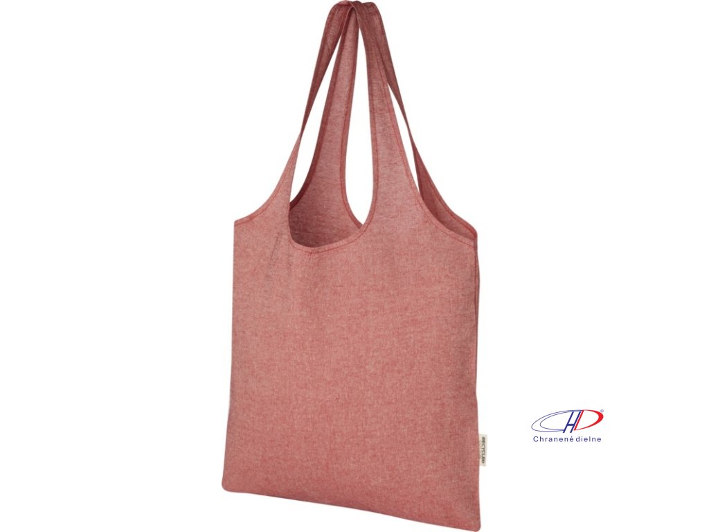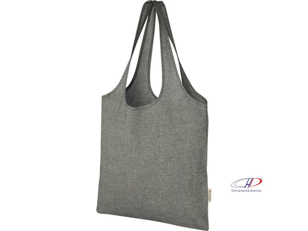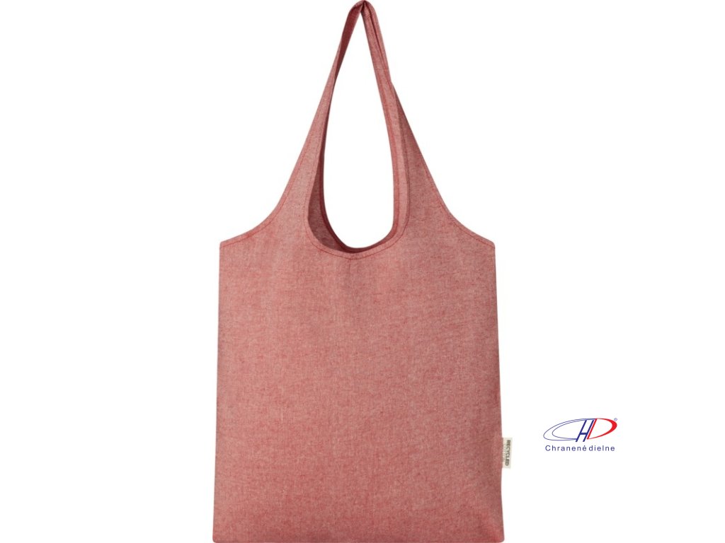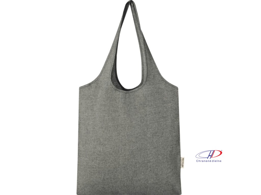 Nákupná taška 150 g/m? s moderným dizajnom s otvorenou hlavnou priehradkou s 25 cm dlhými rúčkami. Vyrobené z recyklovanej bavlny, skvelá alternatíva k plastovým taškám. Nosnosť do 5 kg.Dodatočné parametre