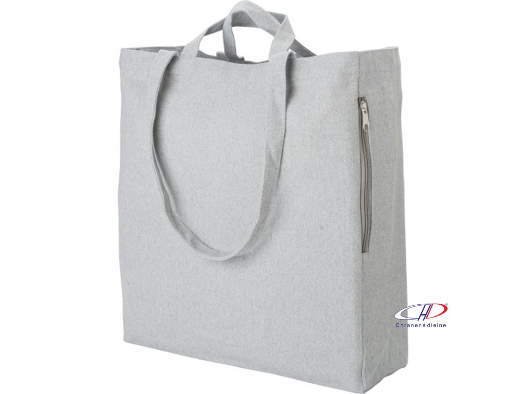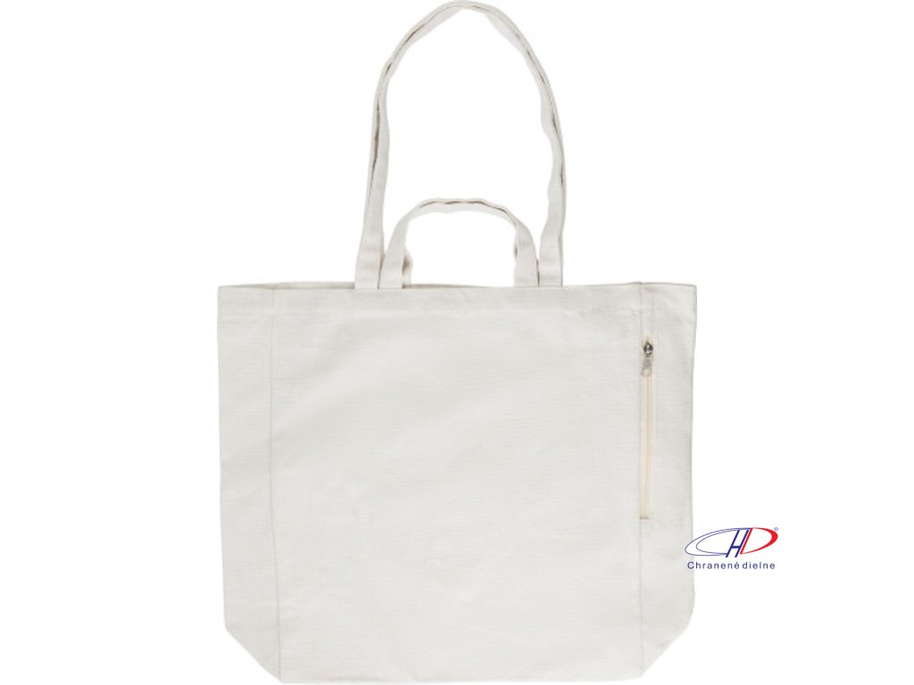Nákupná taška z recyklovanej bavlny s krátkymi a dlhými rúčkami. Bočné vrecko so zipsom.Dodatočné parametre