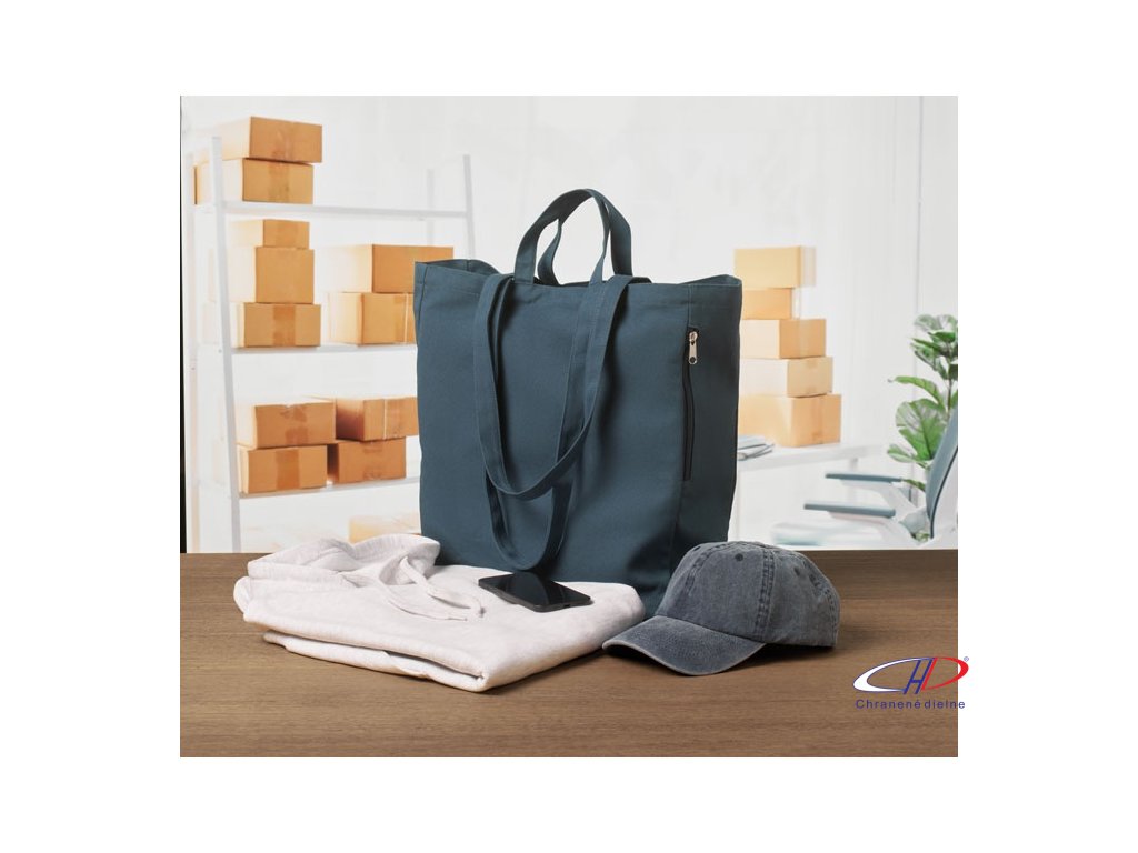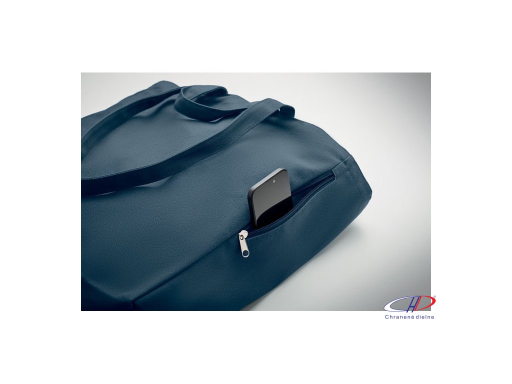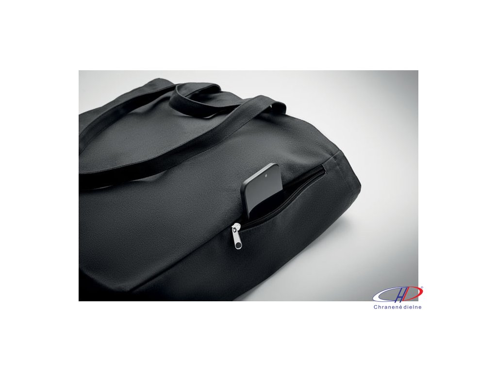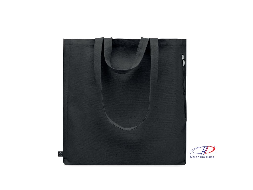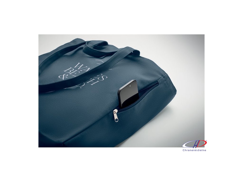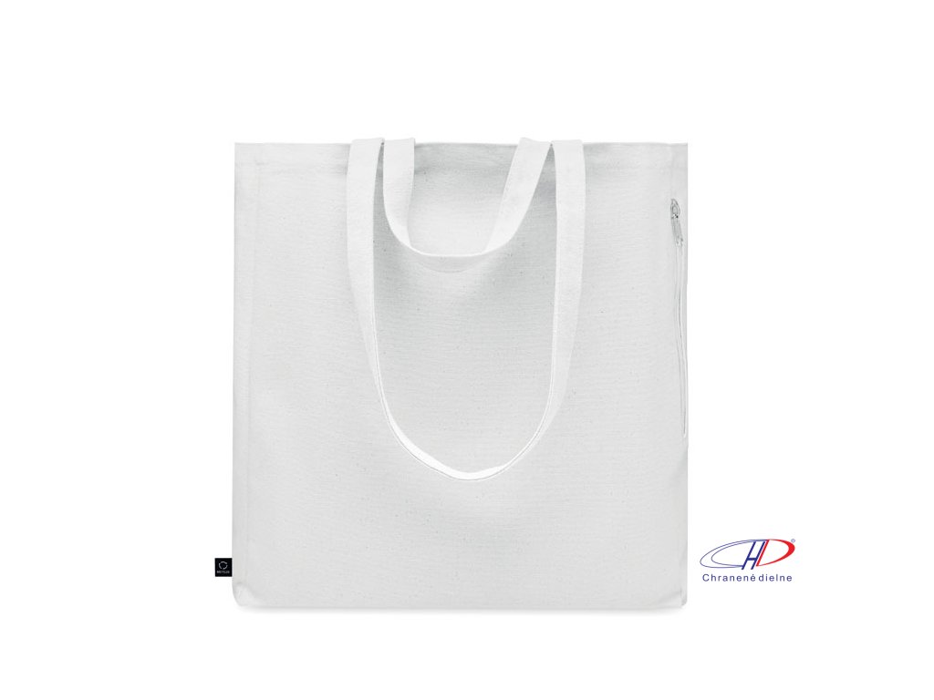 Nákupná alebo plážová taška z recyklovanej polybavlny (70 % recyklovaná bavlna, 30 % recyklovaný polyester) s krátkymi a dlhými rúčkami. Má bočné vrecko na zips. Gramáž 380 g/m2.Dodatočné parametre