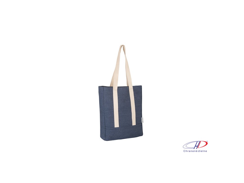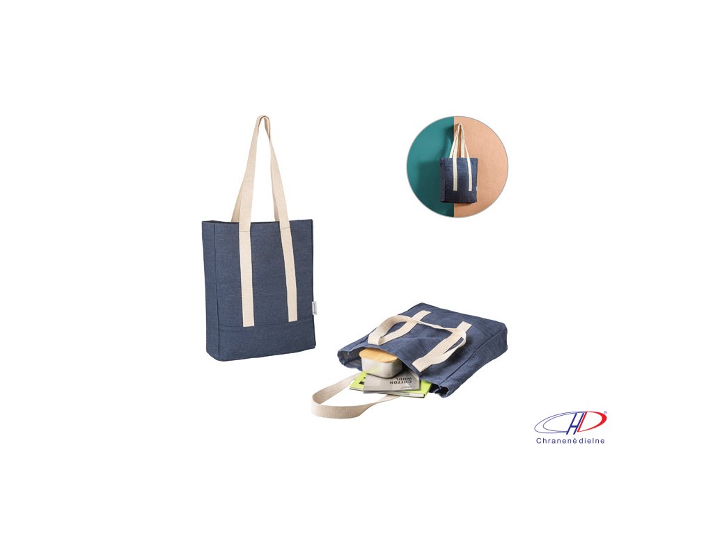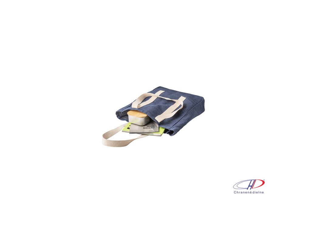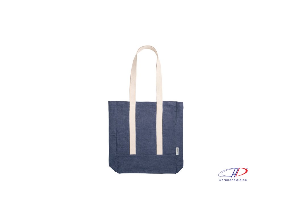 Neformálna kabelka z džínsoviny (300 g/m2). Obsahuje 1 vnútorné vrecko na zips, zosilnené švy a 64 cm dlhé bavlnené rúčky.Dodatočné parametre