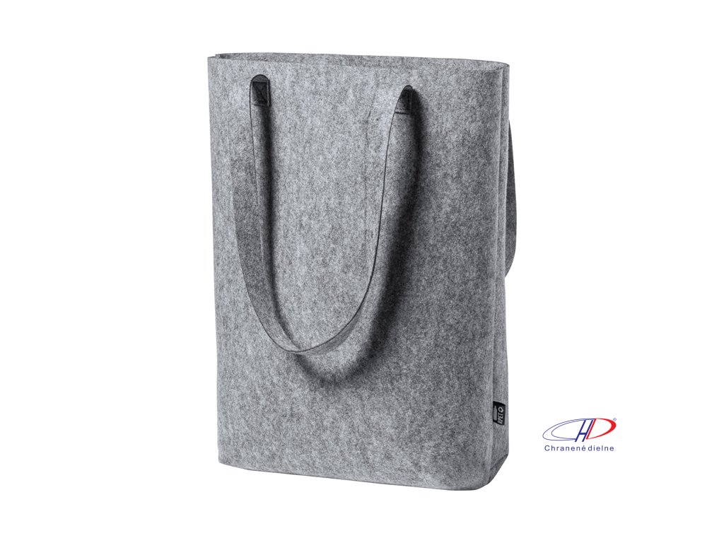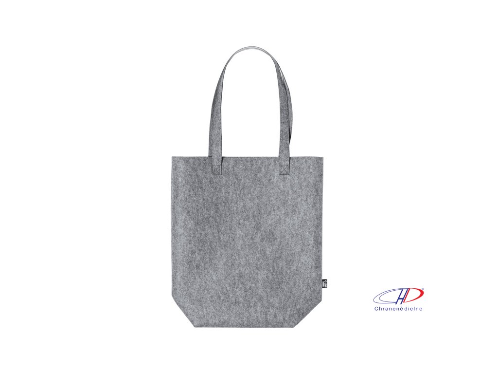 RPET filcová nákupná taška s extra dlhými ušami a rozšíreným dnom. S výrazným štítkom RPET.