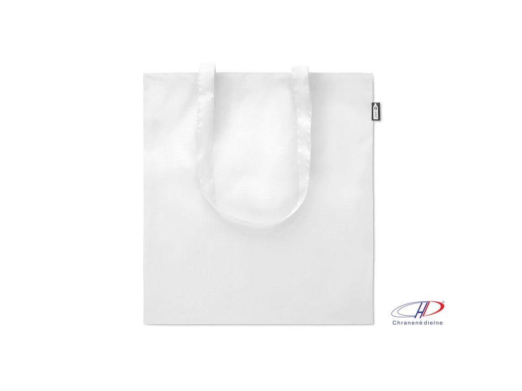 Nákupná taška z 190T RPETy s dlhými ušami. 100 g/m2. 38 x 42 cm, Materiál vyrobený z recyklovaných PET fliaš.