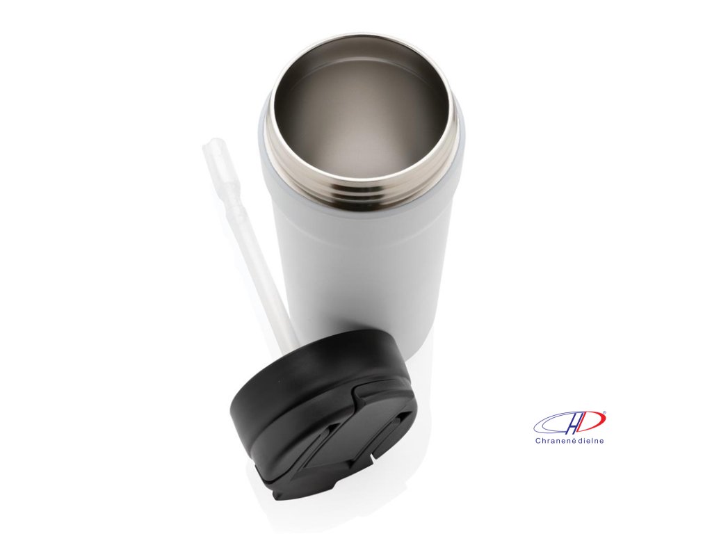Termo fľaša s duálnym uzáverom, ktoré umožňuje pitie vysúvacou slamkou alebo cez klasické skrutkovacie viečko. Vyrobené z RCS recyklovanej nehrdzavejúcej ocele. Podiel recyklovaného materiálu: 78 %. Bez BPA. Objem: 670 ml. Balené v FSC krabičke.Dodatočné parametre