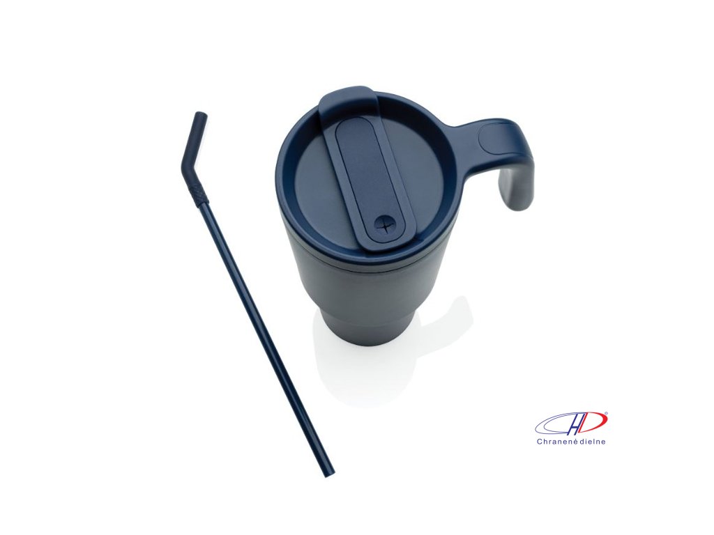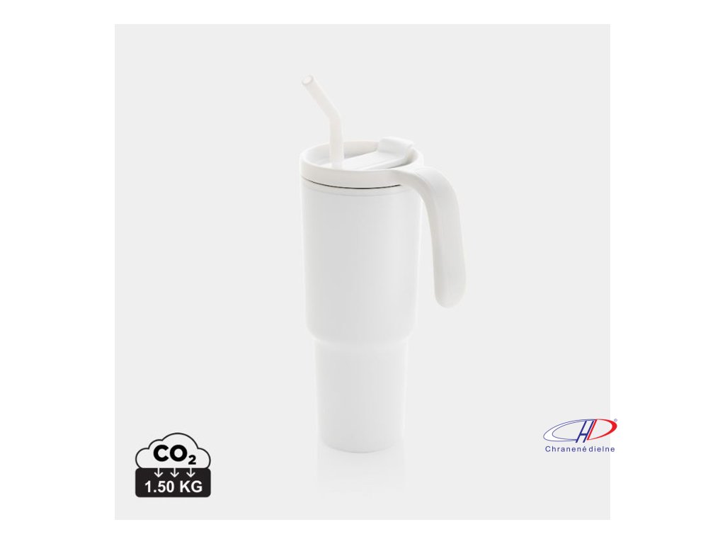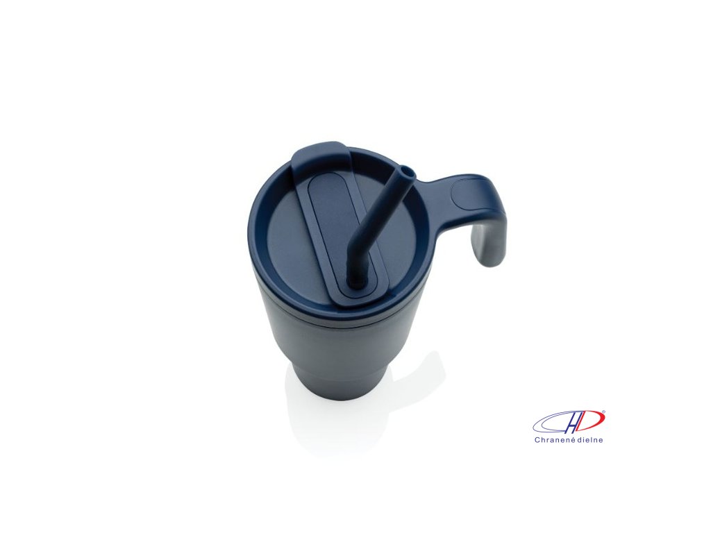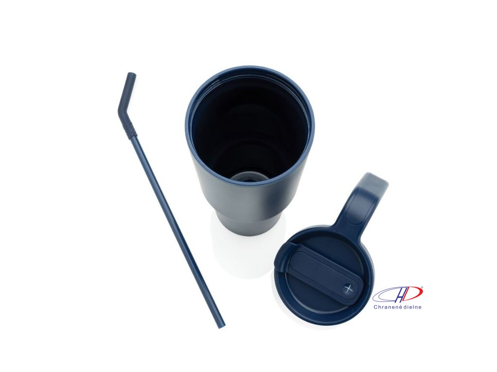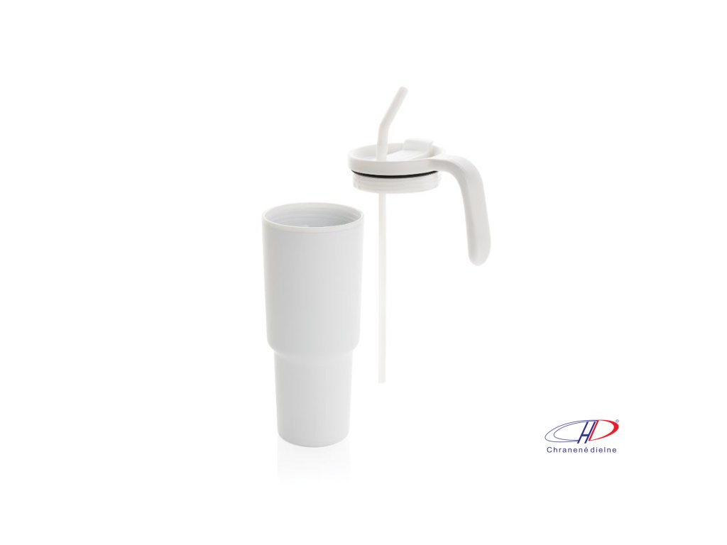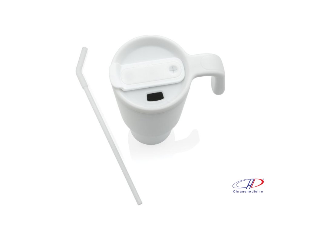 Inovatívne viečko má otočný uzáver s 3 pozíciami: otvor pre slamku odolný proti rozliatiu, náustok na pitie a utesnený uzáver. Ergonomická rukoväť, zmestí sa do väčšiny držiakov nápojov. Iba ručné umývanie. Bez BPA. Krabička z kraftového papiera FSC®.Dodatočné parametre