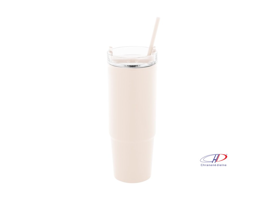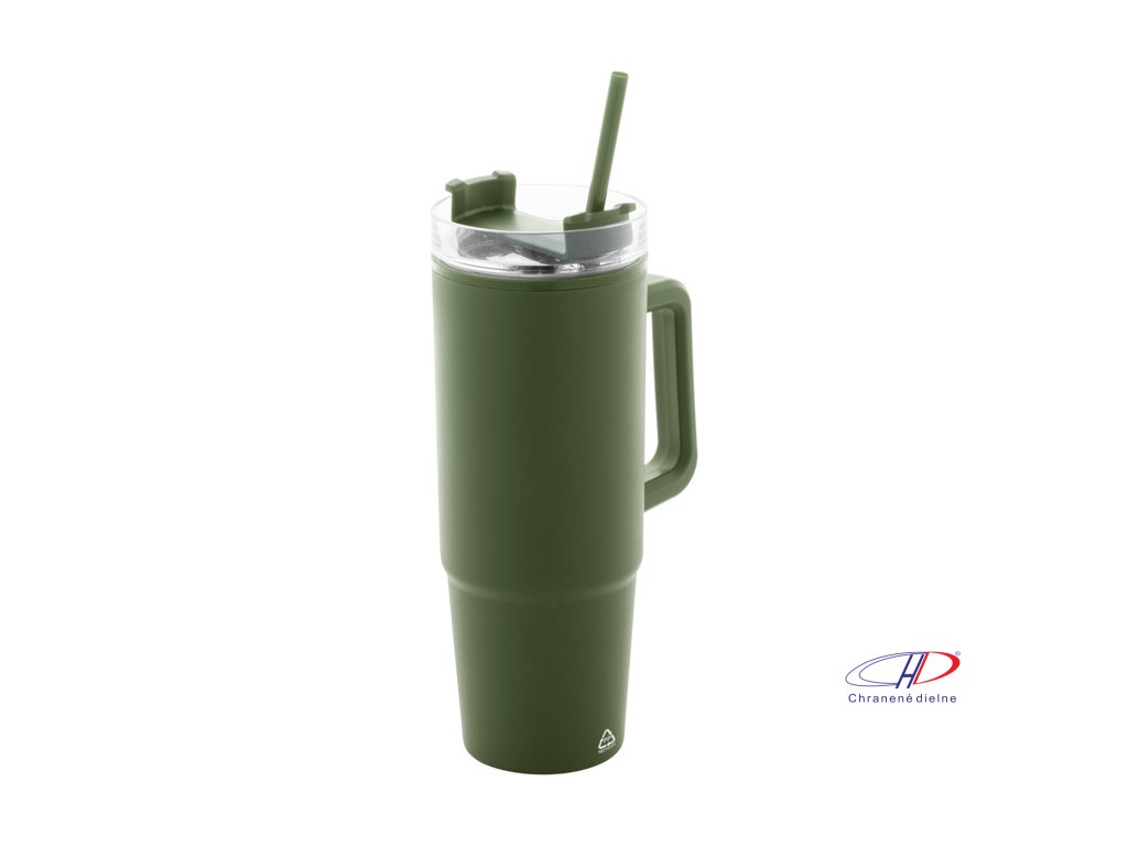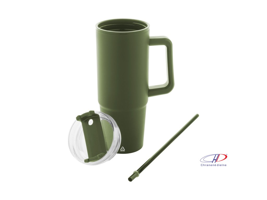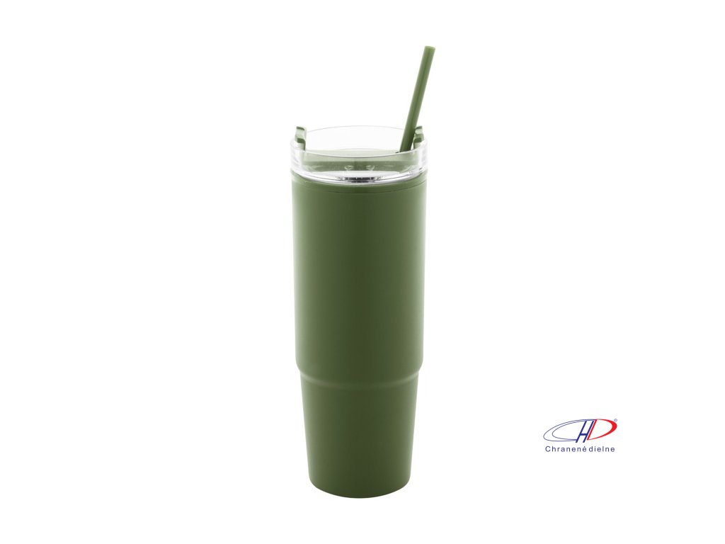Dvojstenný termo hrnček z recyklovaného PP plastu s plastovým viečkom na pitie a slamkou. 900 ml.Dodatočné parametre