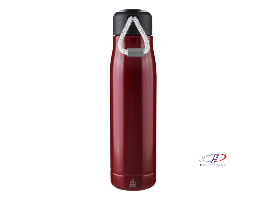 Dvojstenná vákuová fľaša z recyklovanej nehrdzavejúcej ocele (500 ml) s vnútrom z nehrdzavejúcej ocele 304 a vonkajším povrchom z nehrdzavejúcej ocele 201. Má skrutkovacie viečko z PP a polyesterovú šnúrku. Jednotlivo balená v hnedej kartónovej krabici.Dodatočné parametre