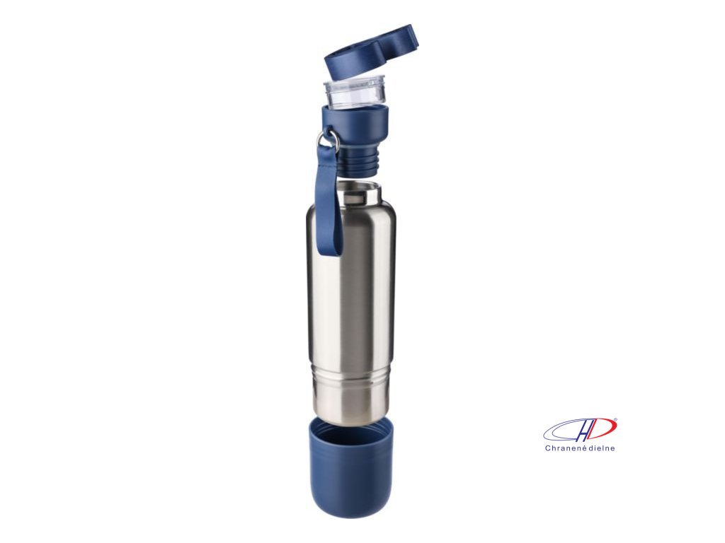 Termoska (500 ml) s vnútrom z nerezovej ocele 304 a vonkajším povrchom z nerezovej ocele 201. Skrutkovacie PP viečko s priehľadnou AS časťou, vymeniteľné polyesterové popruhy a 200 ml PP pohár v spodnej časti. Jednotlivo balené v hnedej kartónovej krabici.Dodatočné parametre
