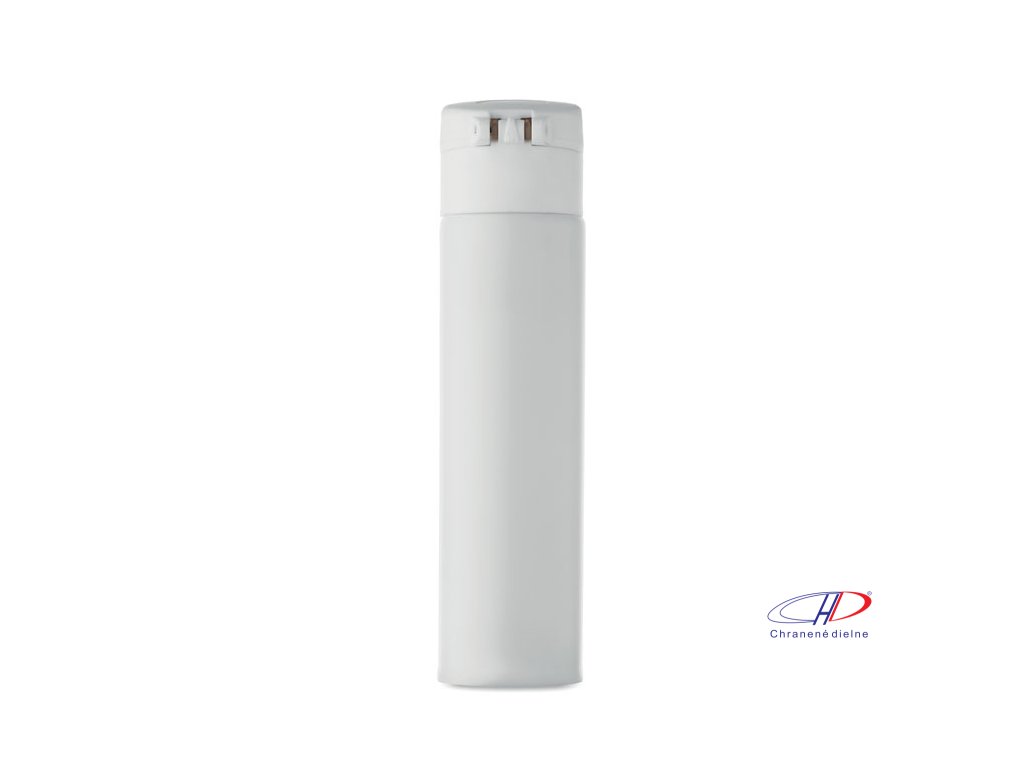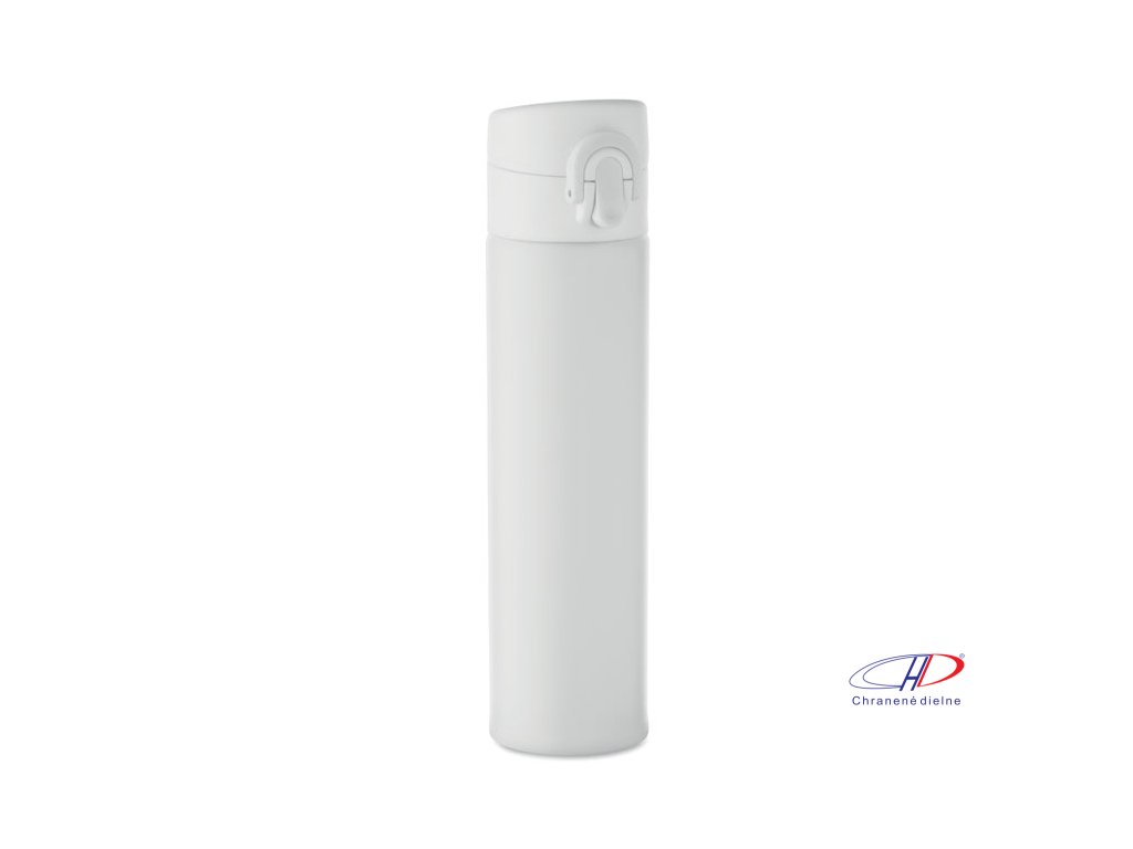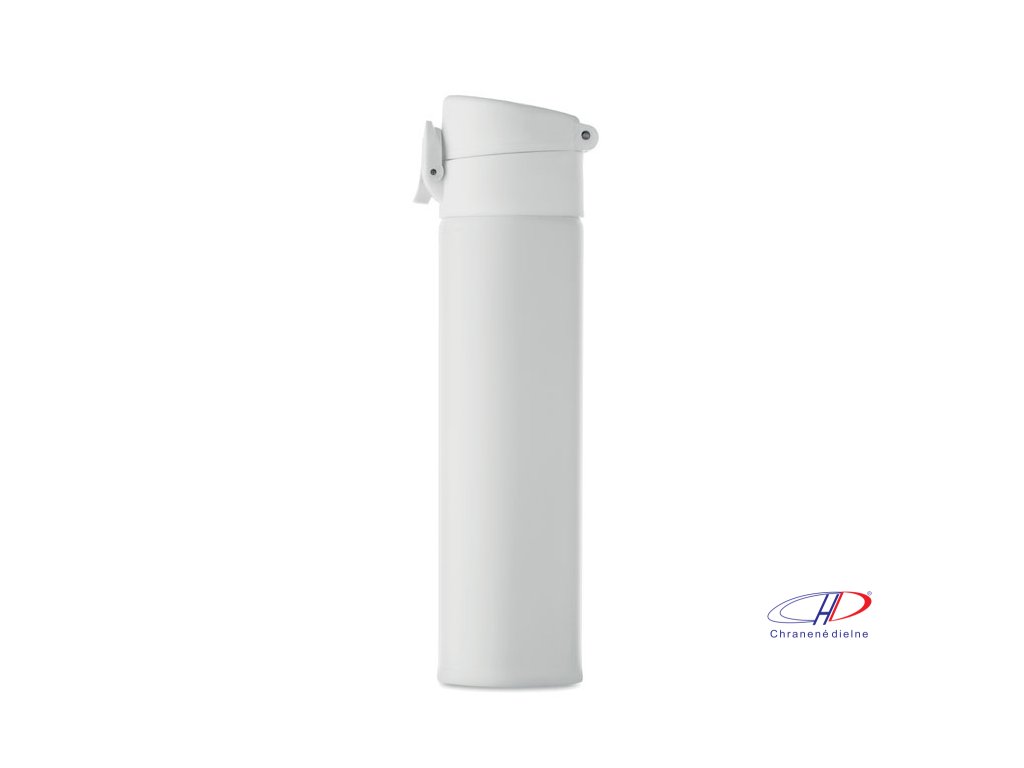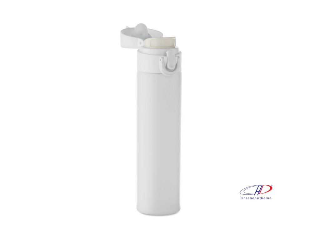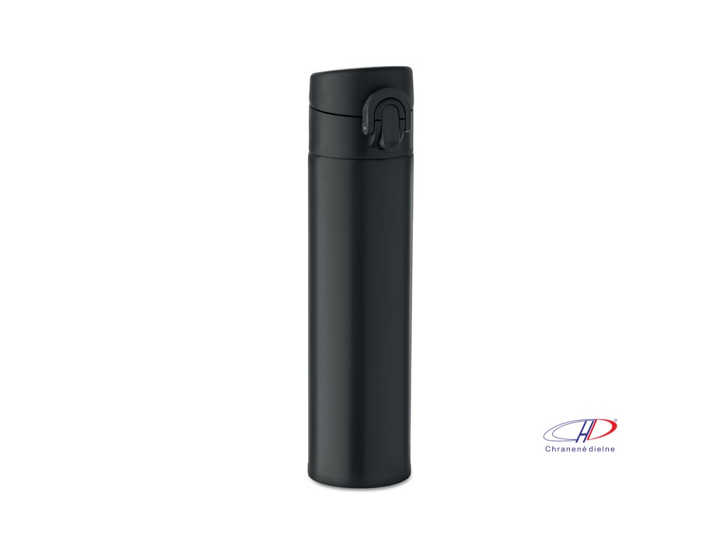 Dvojstenná fľaša na pitie z recyklovanej nehrdzavejúcej ocele (90 % recyklovaná nehrdzavejúca oceľ a 10 % nehrdzavejúca oceľ) s bezpečnostným zámkom na veku a možnosťou otvorenia stlačením. Objem: 300 ml.Dodatočné parametre
