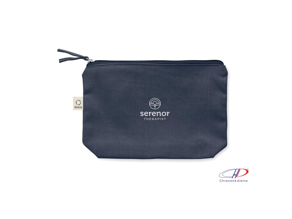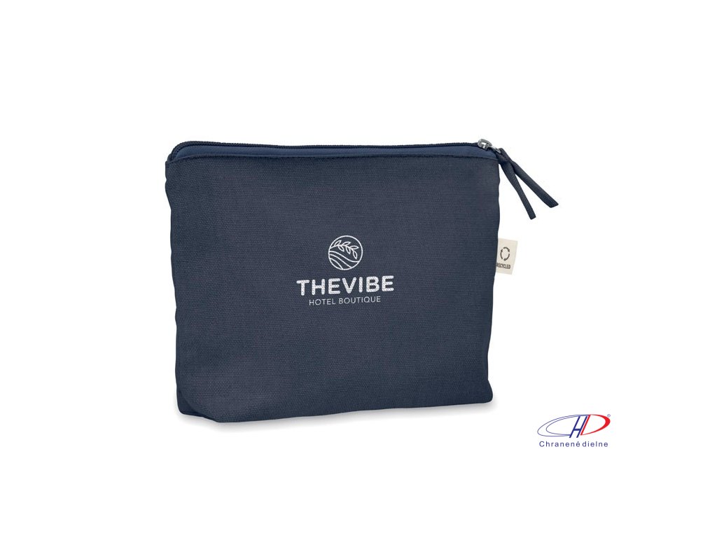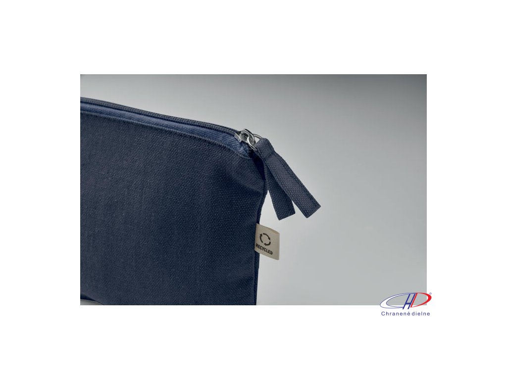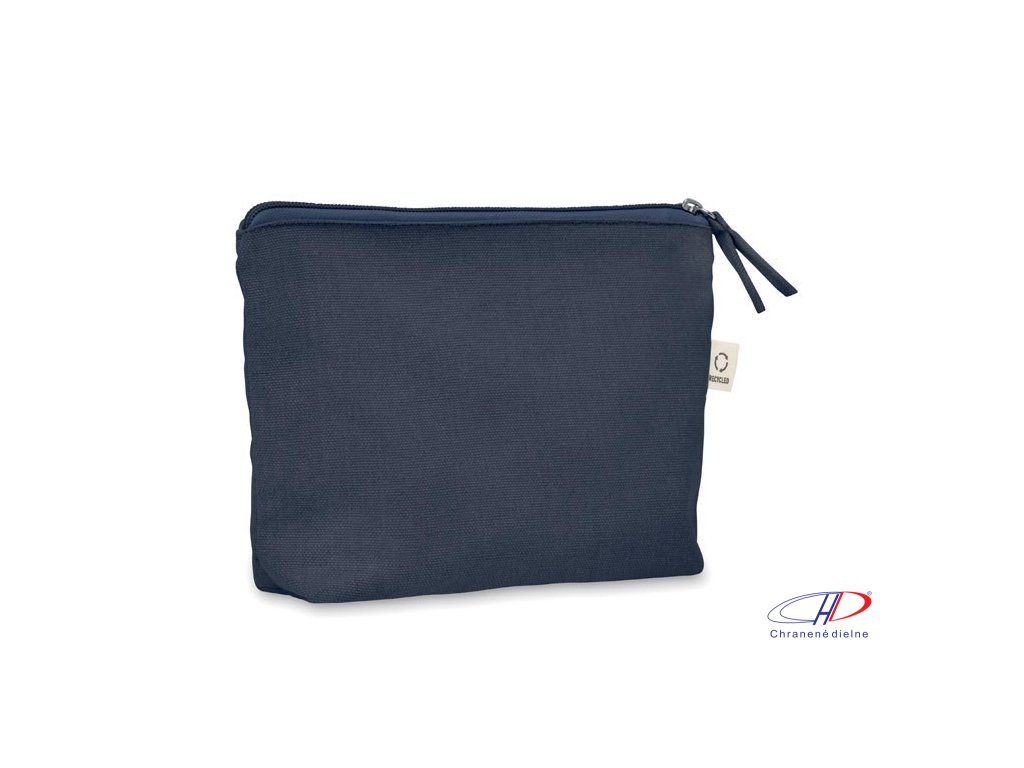 Toaletná taška z recyklovanej látky (70 % recyklovaná bavlna a 30 % polyester RPET) so zipsom v ladiacej farbe. Gramáž 320 g/m2.Dodatočné parametre