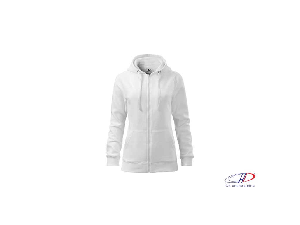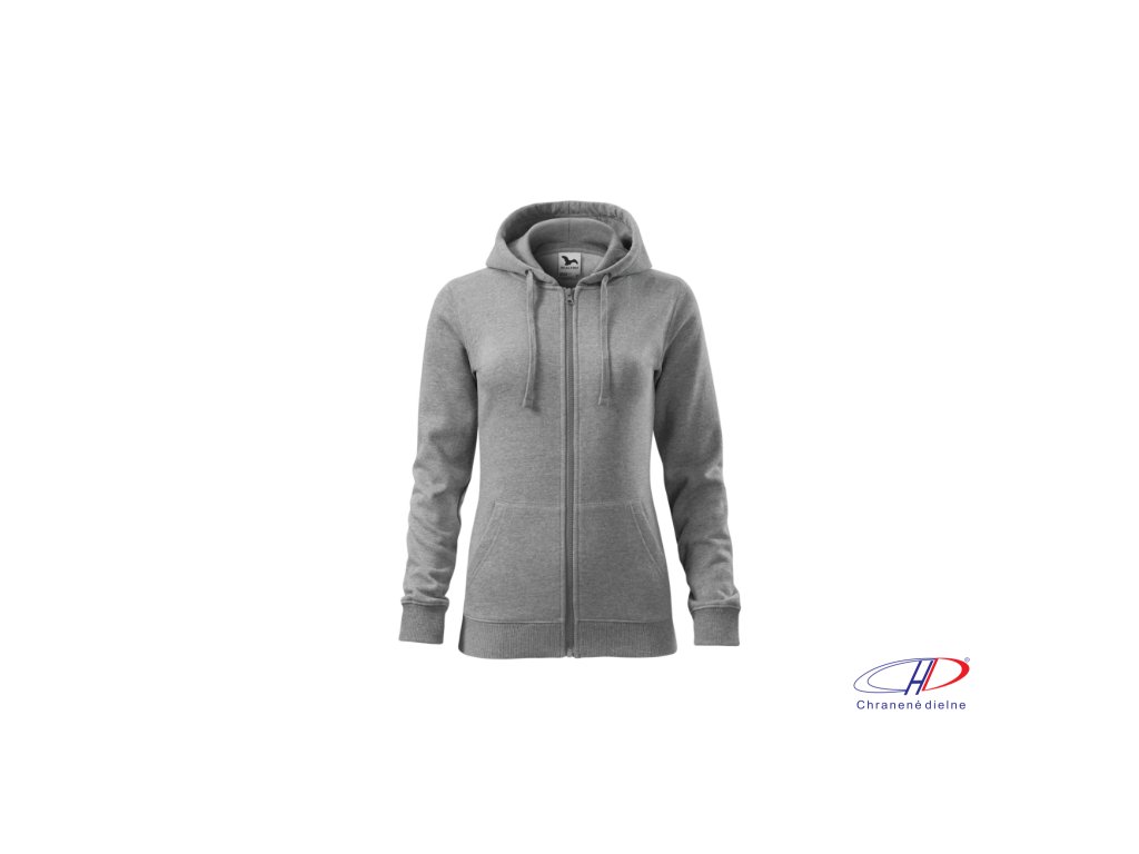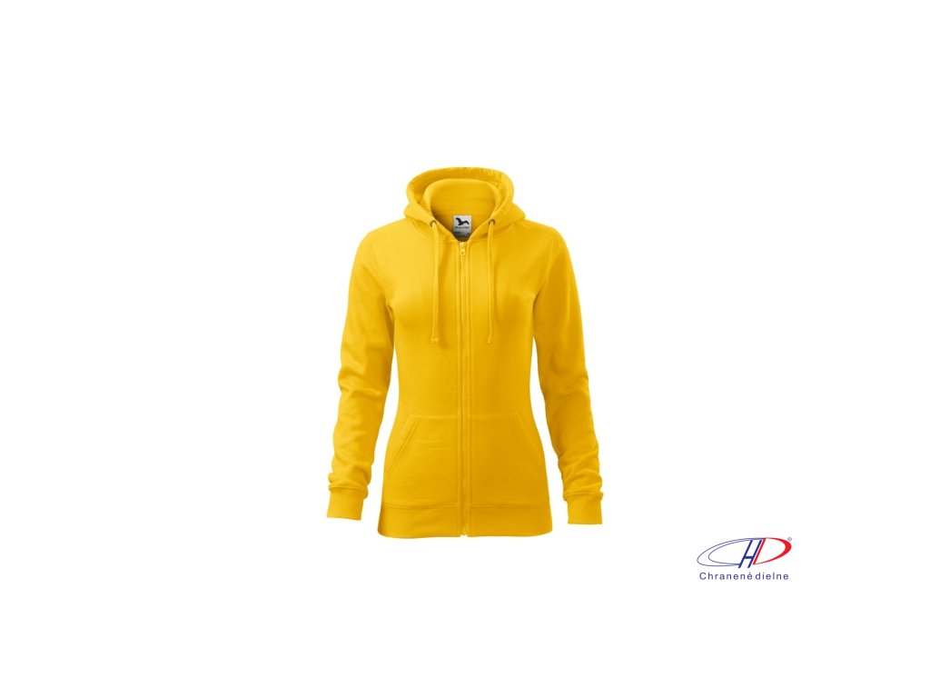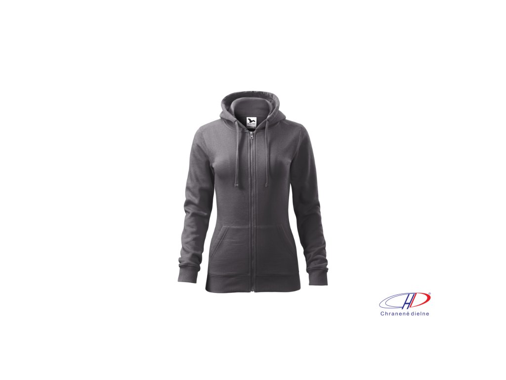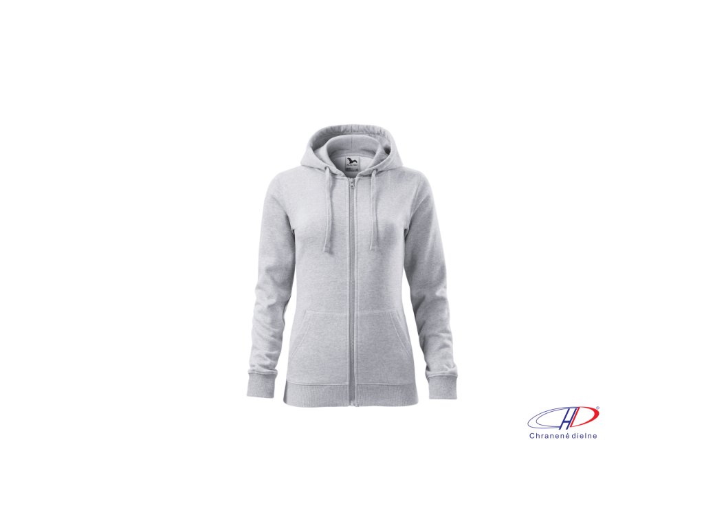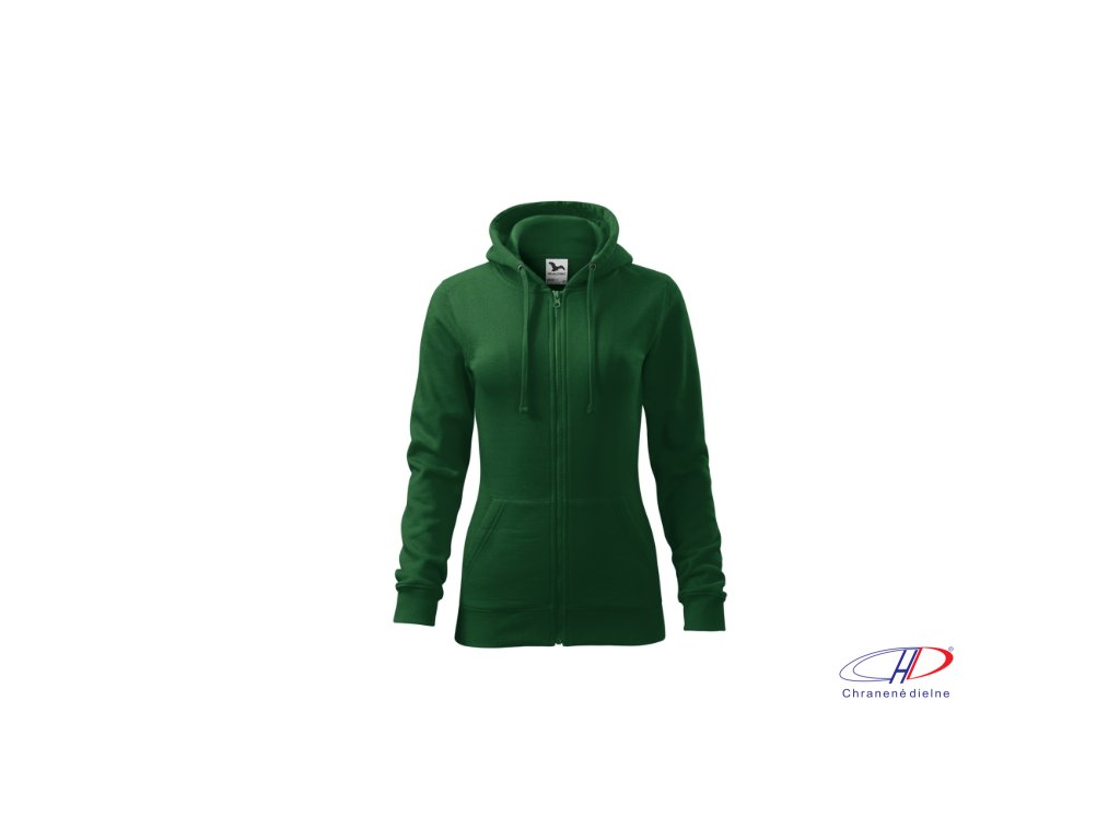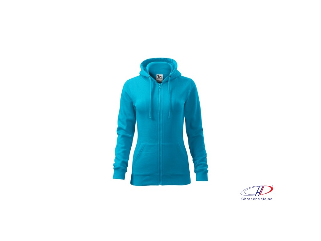 zľahka vypasovaný strih s bočnými švami, celozapínací kostený zips, kapucňa s podšívkou, na stiahnutie šnúrkou, vnútorná časť priekrčníka začistená páskou vo farbe povrchového materiálu, nakladané vrecká v štýle klokanky, dolný lem a manžety rukávov z rebrového úpletu 2:2 s 5 % elastanu, vnútorná strana počesaná