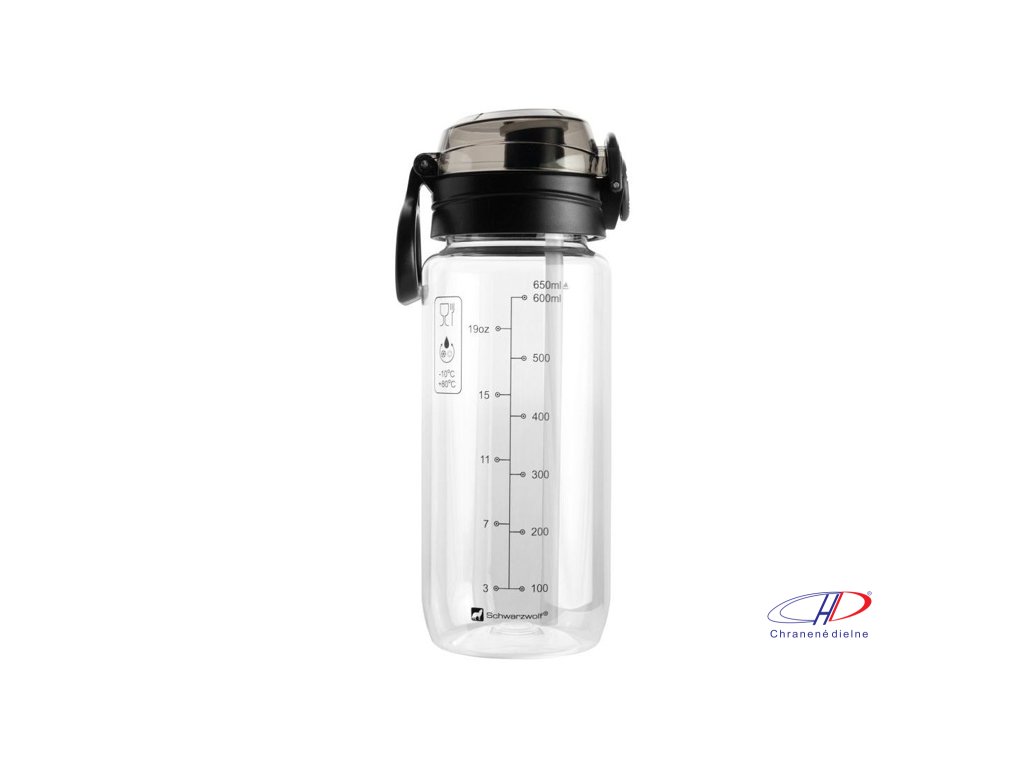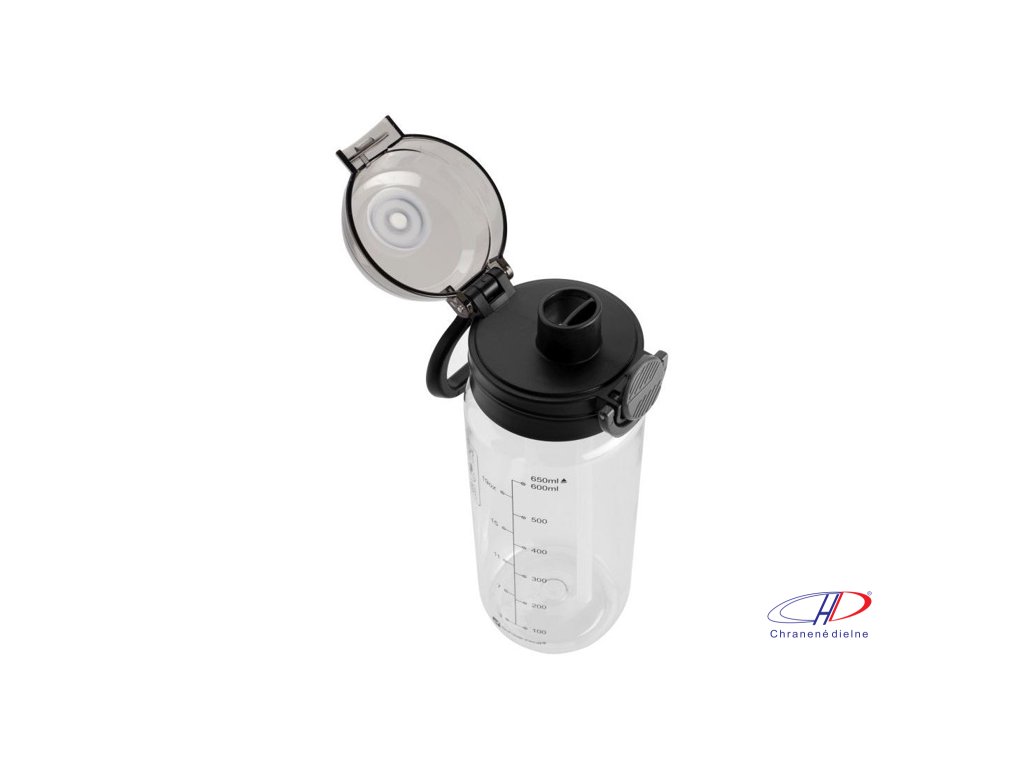 Športová tritanová fľaša (650 ml) s čiernym viečkom a pútkom na zavesenie. BPA free. Ponúka dve možnosti pitia: s voľným prietokom alebo so slamkou. Je vhodná na studené aj teplé nápoje od -10°C do 80°C. Balená v darčekovej krabičke.Dodatočné parametre