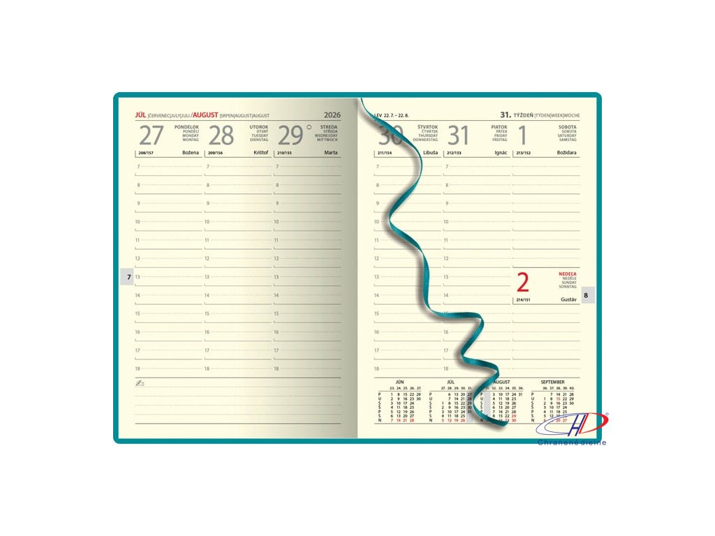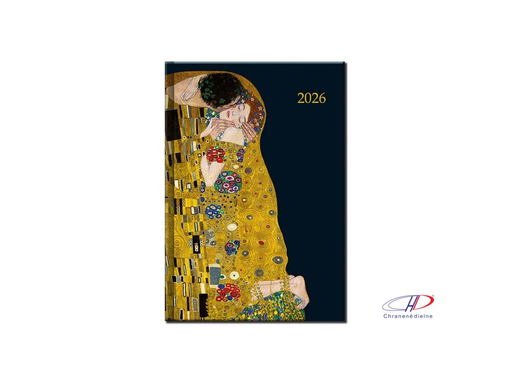 Exkluzívny týždenný diár GUSTAV KLIMT. Jedinečná technológia vytvára skutočný dojem zlata na motíve obrazu na podklade s kovovým leskom. Pevná väzba s prednou penou, soft touch laminom a červenou, modrou, zlatou razbou. Kalendárium: SK/CZ-UK-DE.Dodatočné parametre