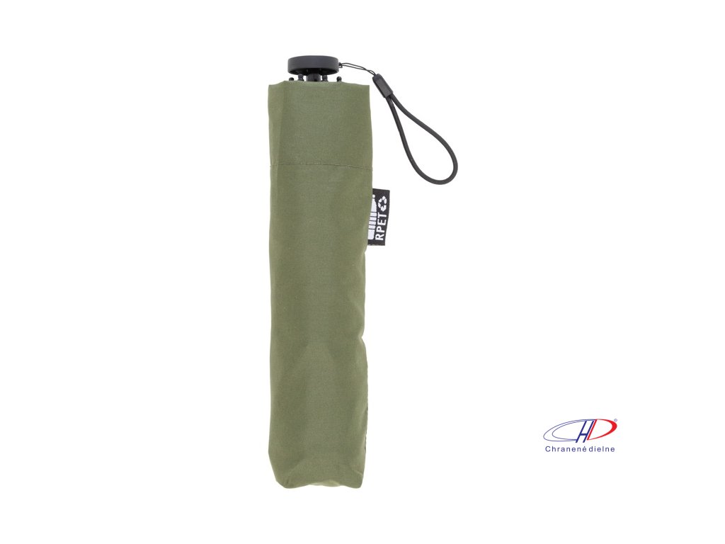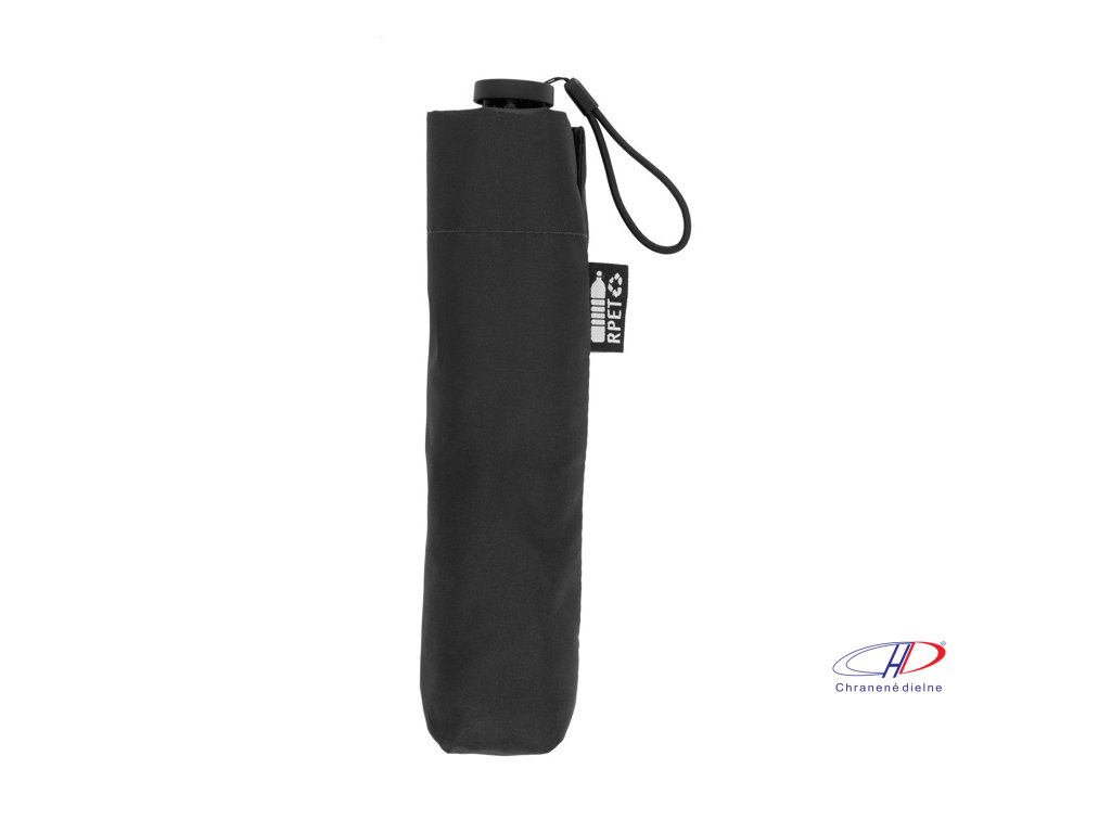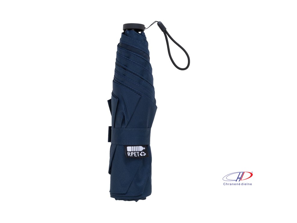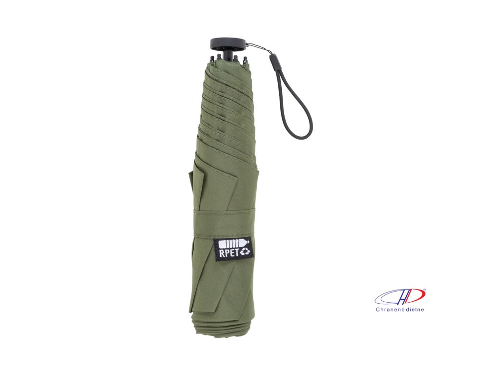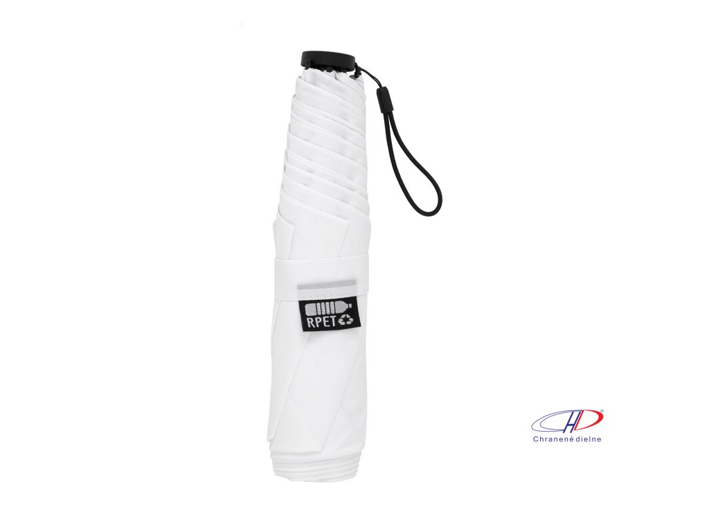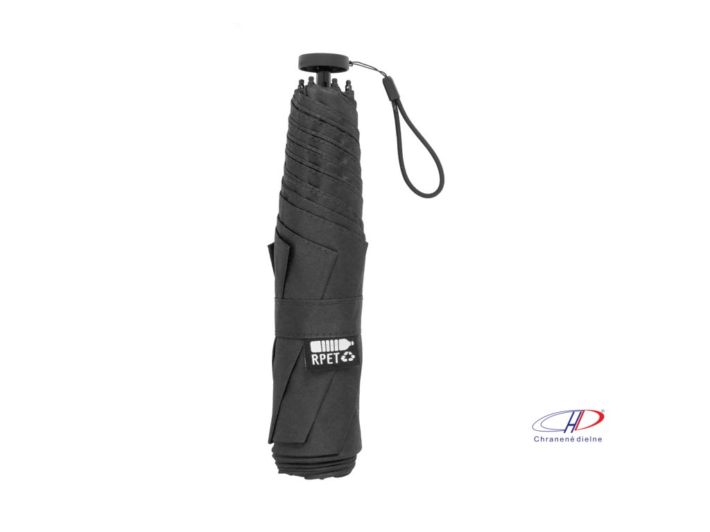 Manuálny, vetruodolný 3-skladací ultraľahký (130 g) mini dáždnik so 6 panelmi v puzdre v zodpovedajúcej farbe. S kovovým rámom, sklolaminátovými rebrami a kompaktnou rukoväťou s pútkom na ruku. Pongee 190T RPET, s výrazným štítkom RPET.Dodatočné parametre