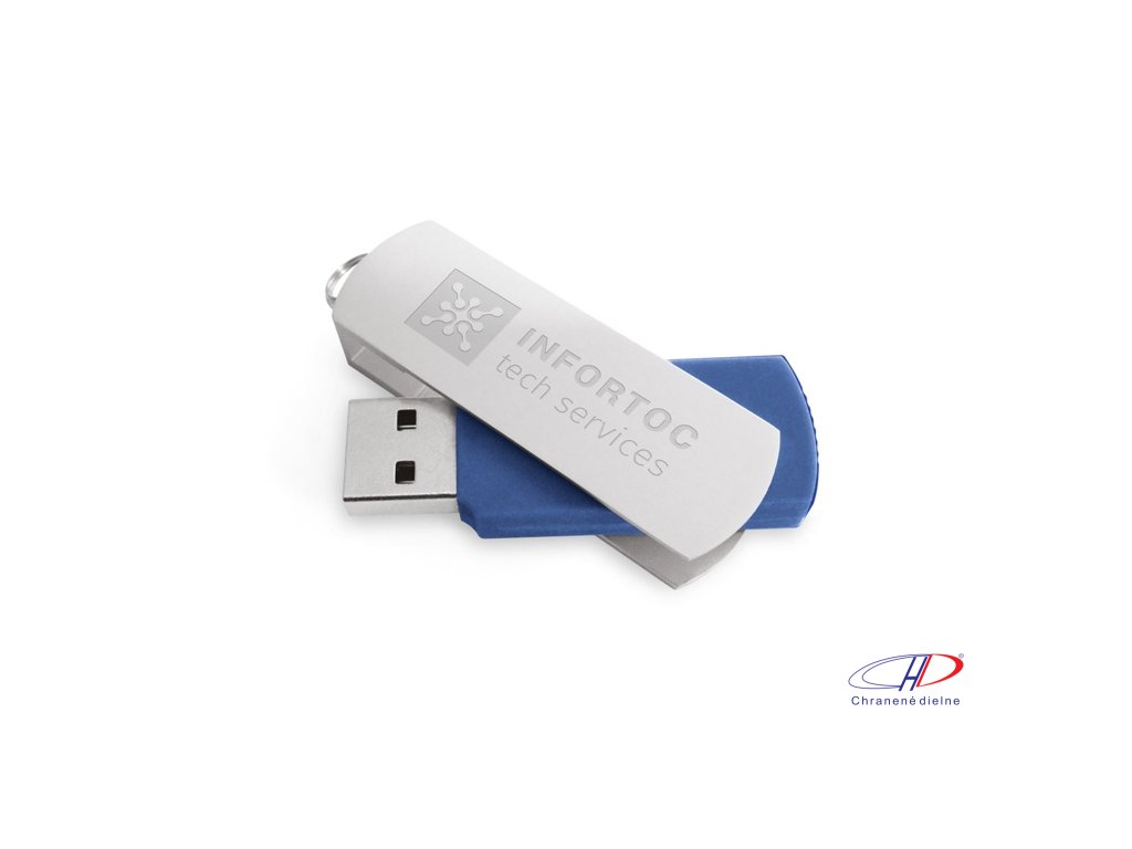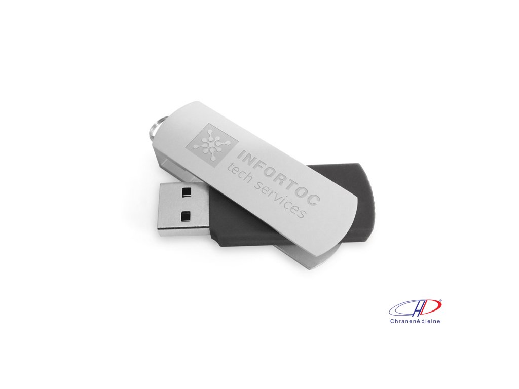 USB flash disk 8 GB s kovovým klipom. Dodávané v krabičke z PP.
