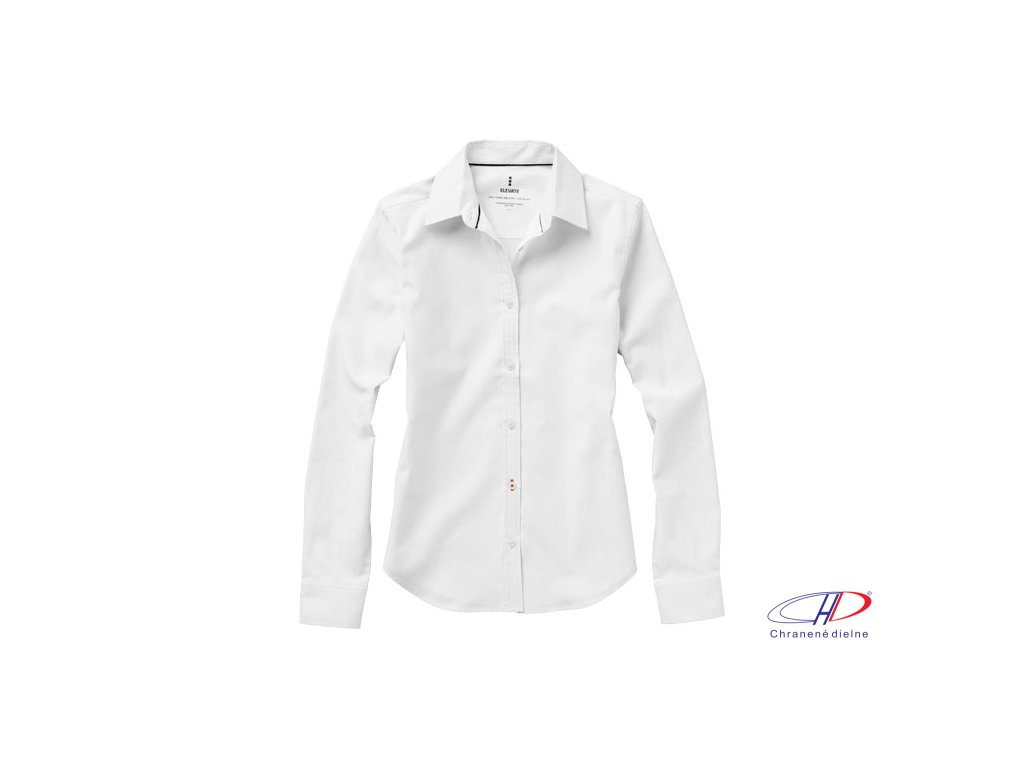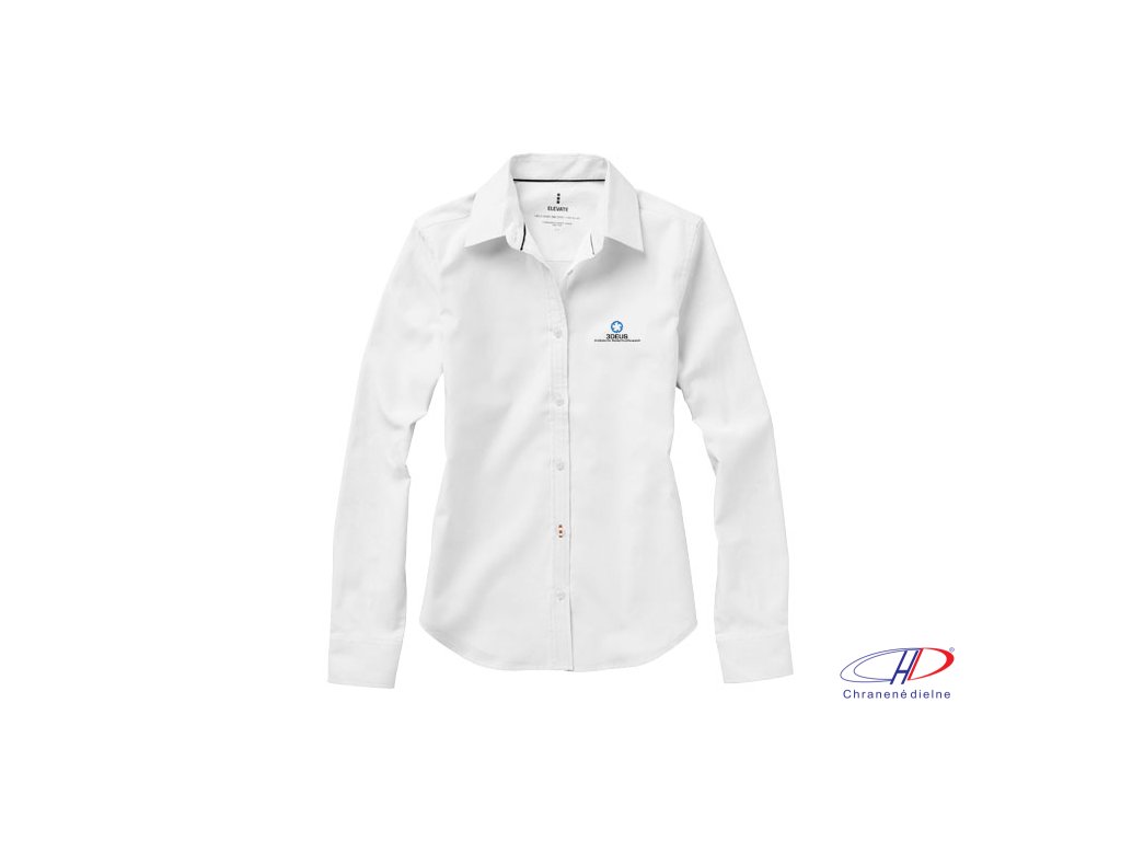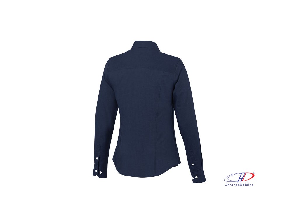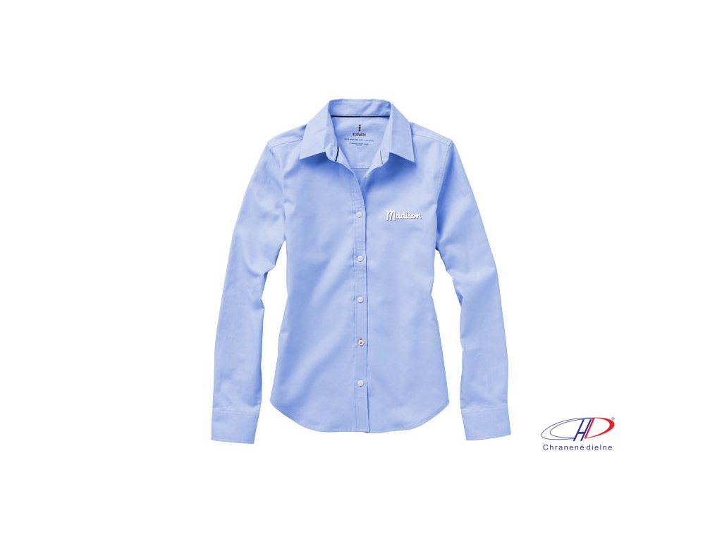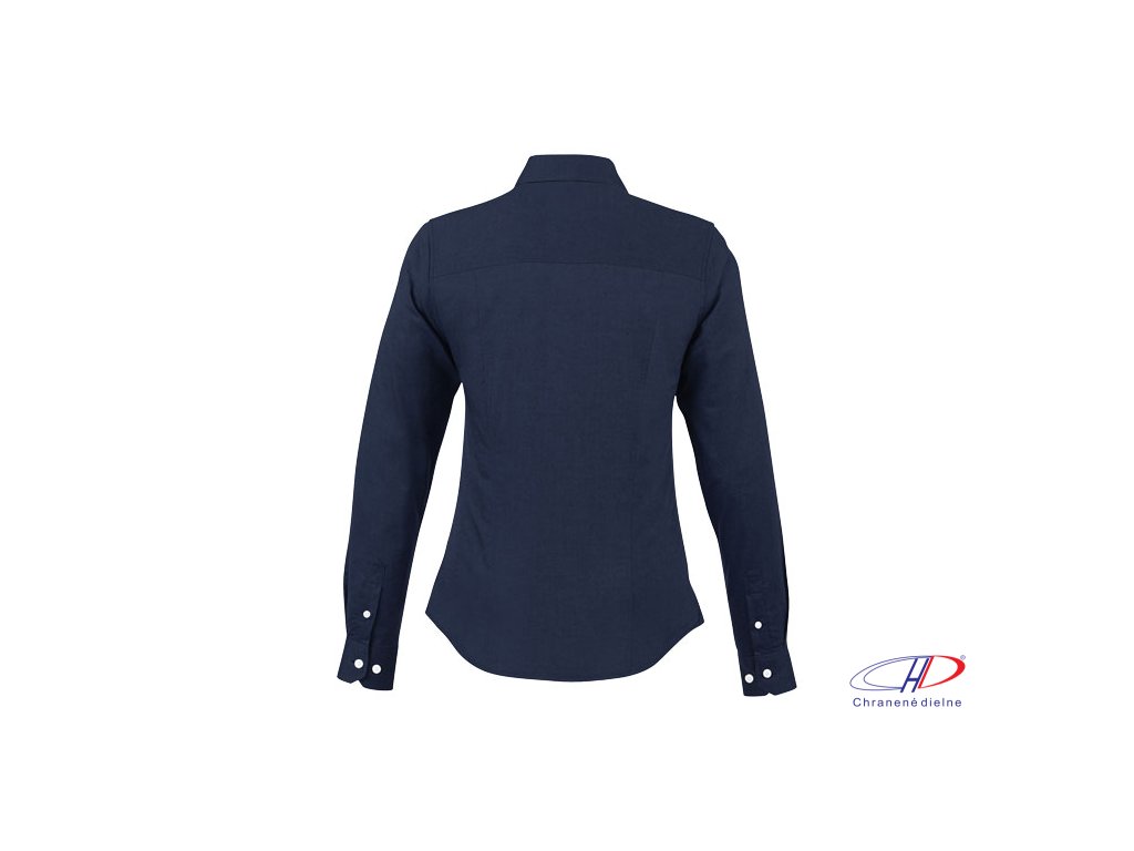 Vaillant long sleeve ladies shirt. Adjustable cuff with single pleat.Engraved pearl buttons.Shaped seams and tapered waist for flattering fit.Satin piping at inside neck.Heat transfer main label for tagless comfort. Oxford of 100% Cotton. 40x32/2, 110x50.