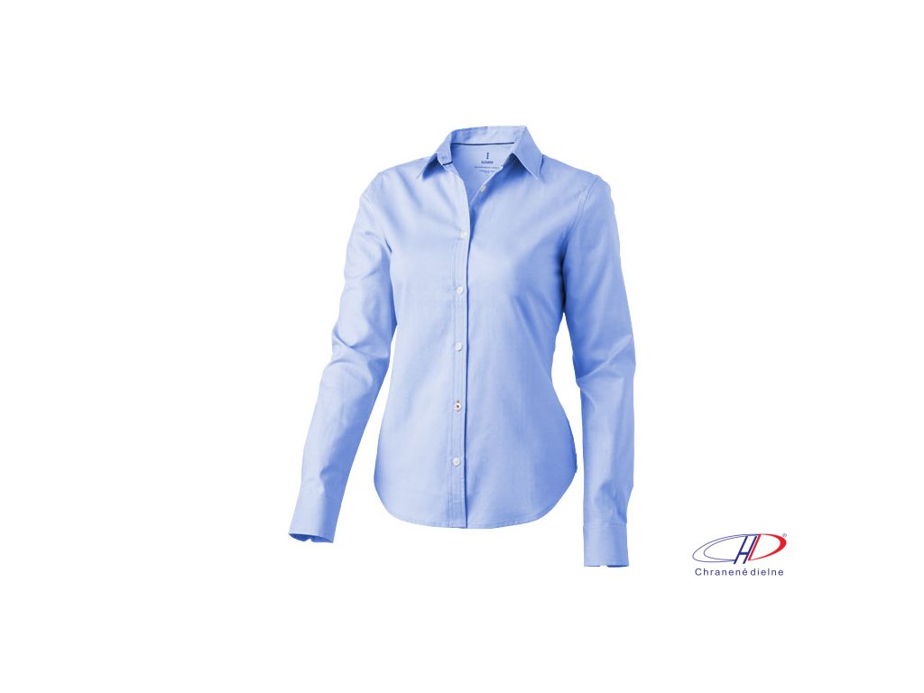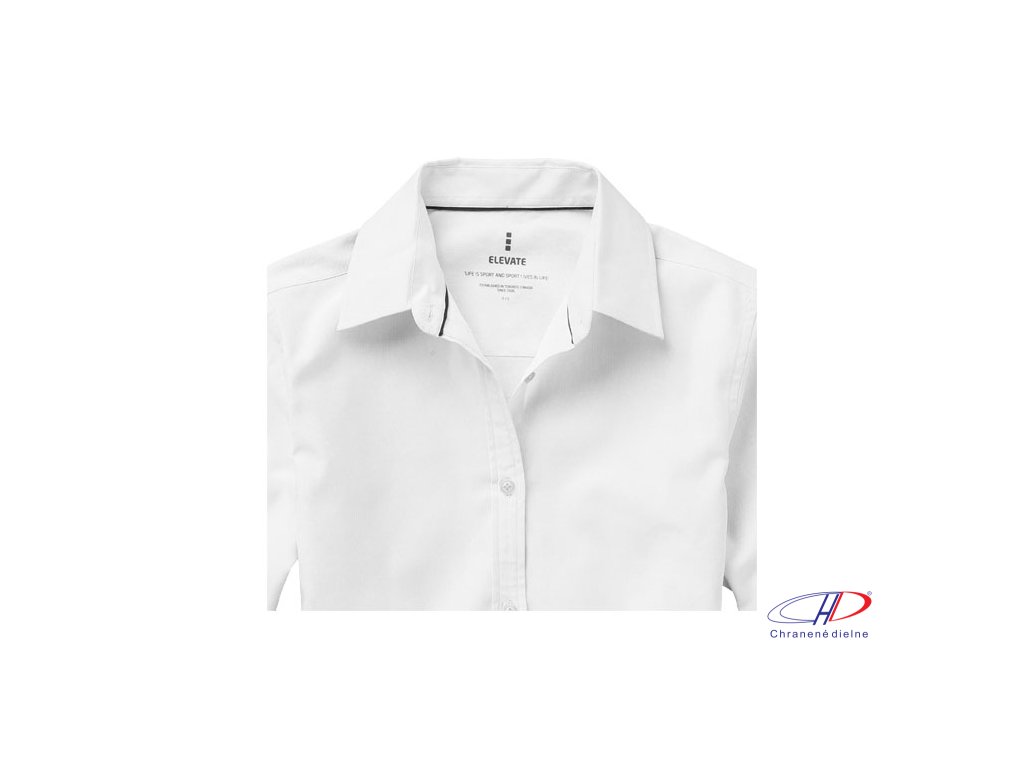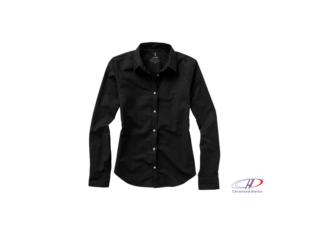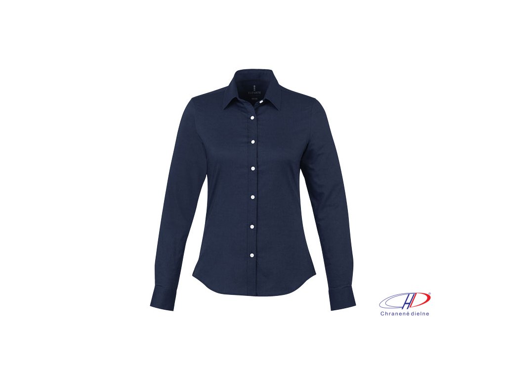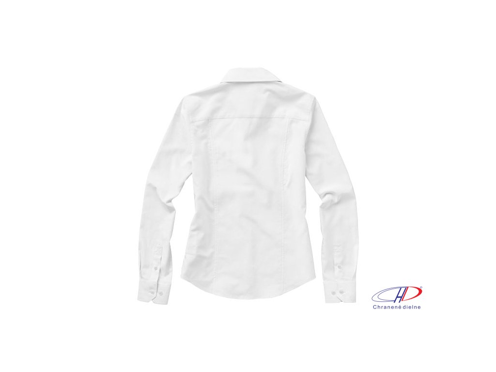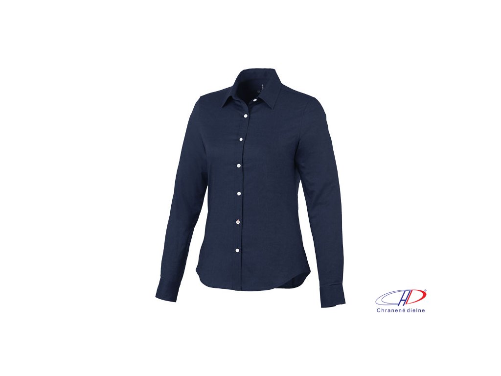 Vaillant long sleeve ladies shirt. Adjustable cuff with single pleat.Engraved pearl buttons.Shaped seams and tapered waist for flattering fit.Satin piping at inside neck.Heat transfer main label for tagless comfort. Oxford of 100% Cotton. 40x32/2, 110x50.