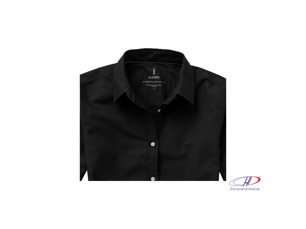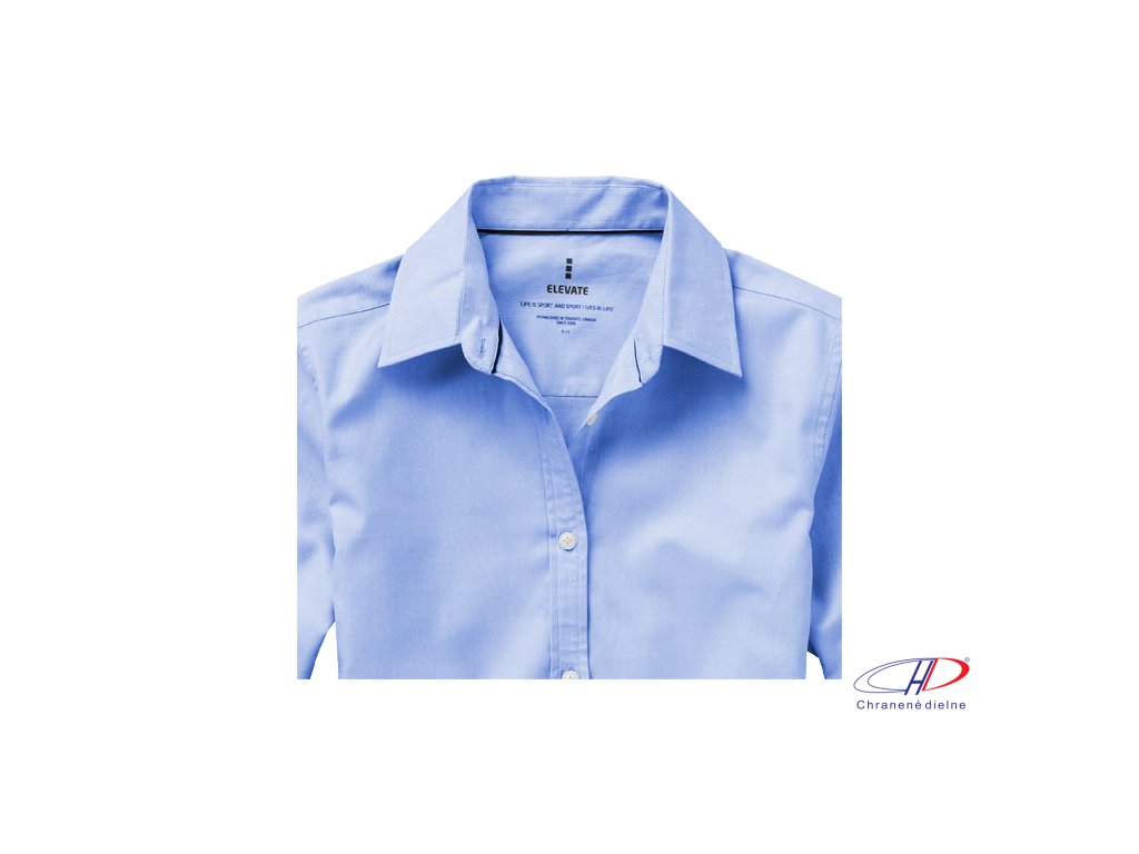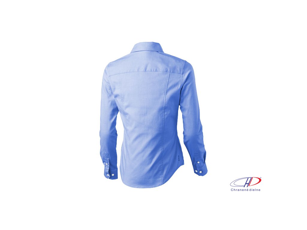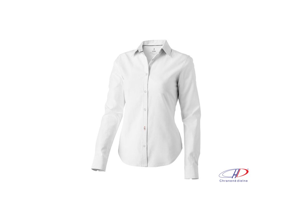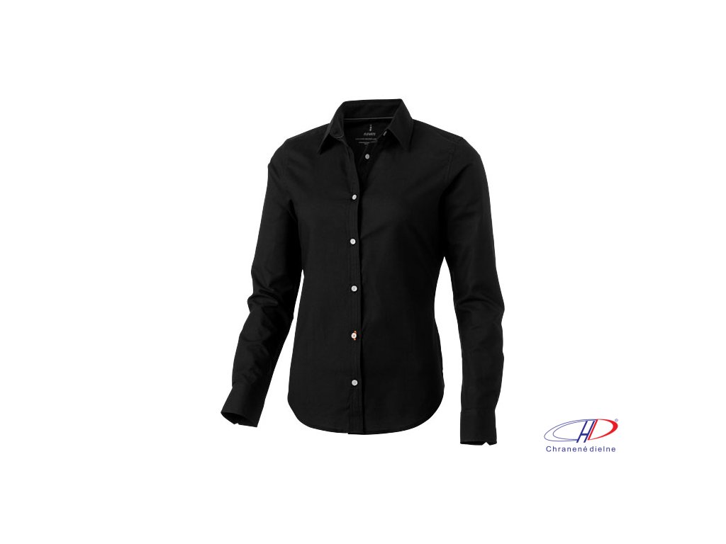 Vaillant long sleeve ladies shirt. Adjustable cuff with single pleat.Engraved pearl buttons.Shaped seams and tapered waist for flattering fit.Satin piping at inside neck.Heat transfer main label for tagless comfort. Oxford of 100% Cotton. 40x32/2, 110x50.