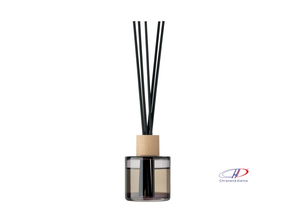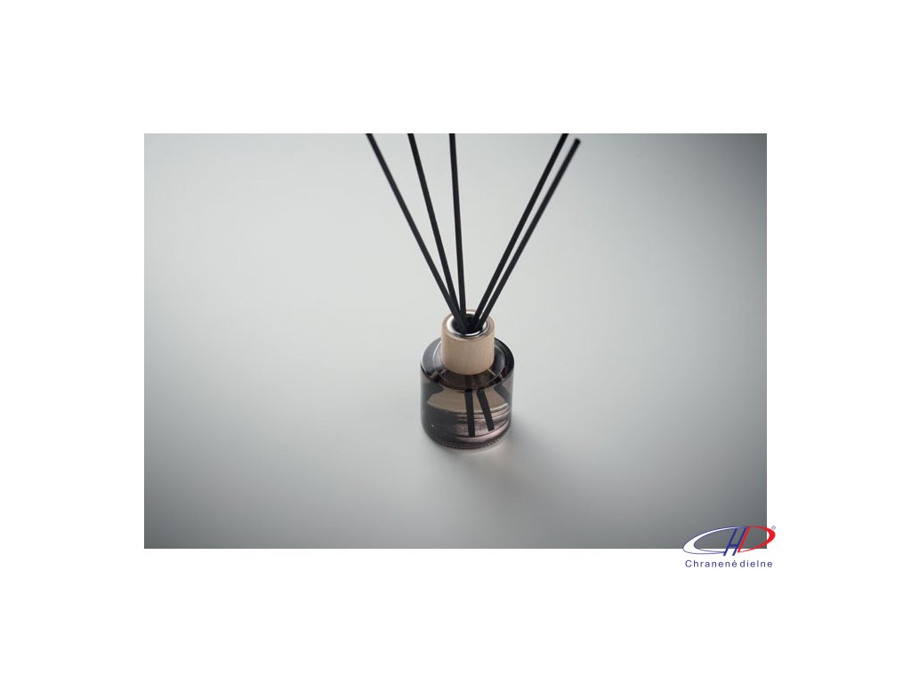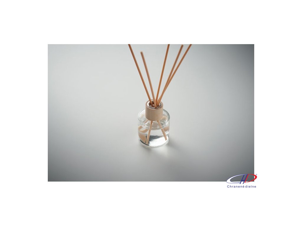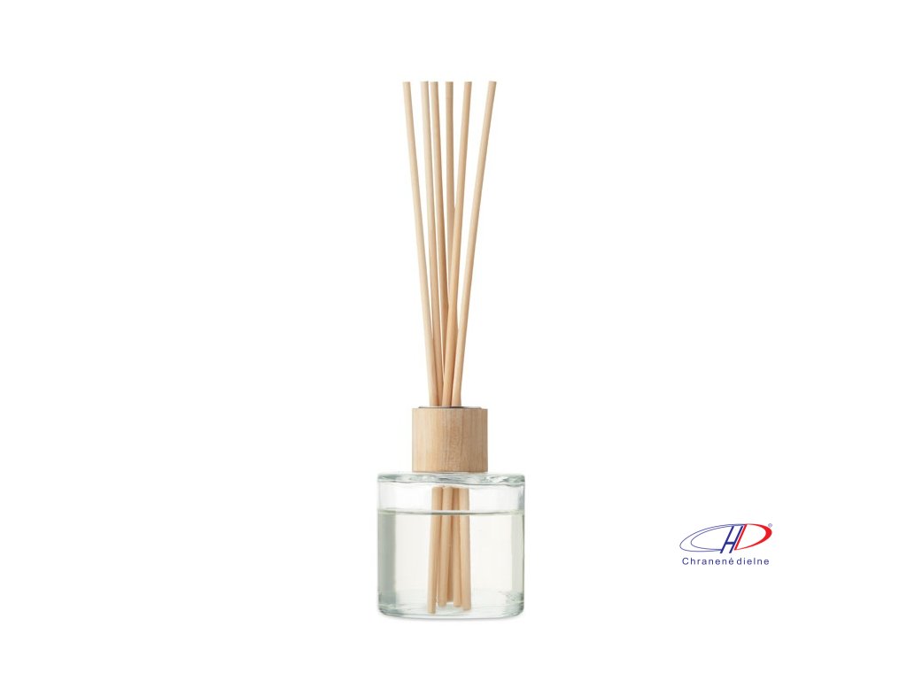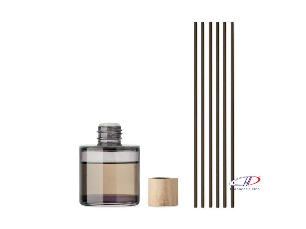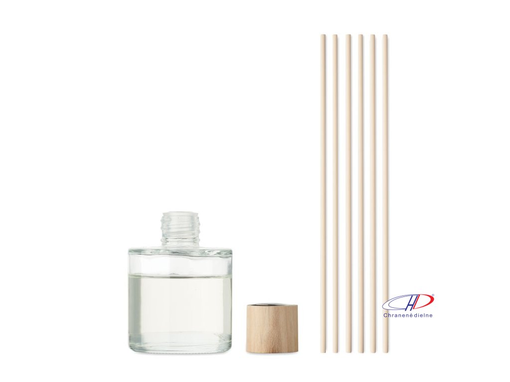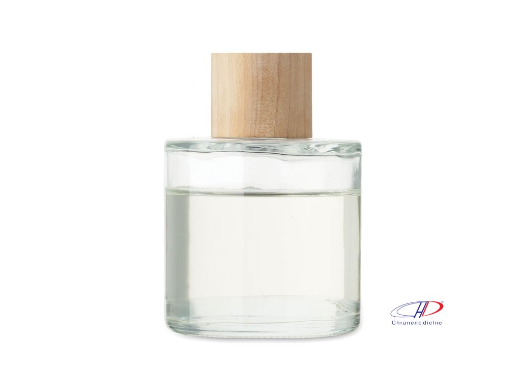 Sklenená nádoba s dreveným difuzérom vône so 6 tyčinkami. Vôňa: vanilka. Objem: 50 ml.