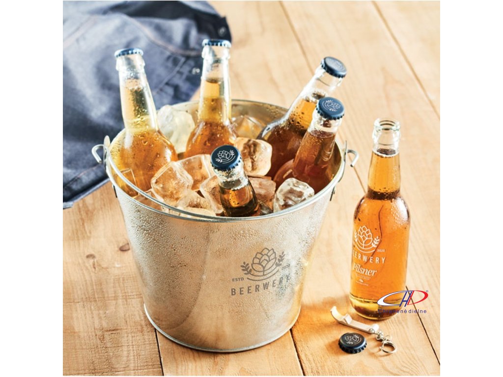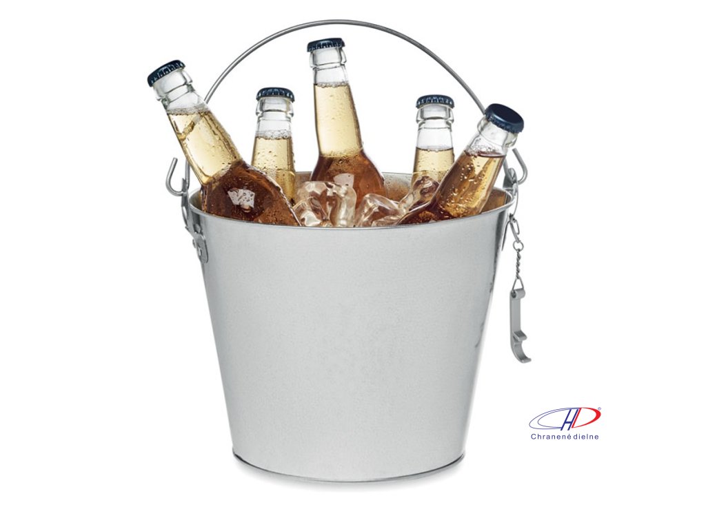 Kovový kbelík na piva nebo jiné nápoje. Dražadla a otvírák. Objem: 4lDodatočné parametre