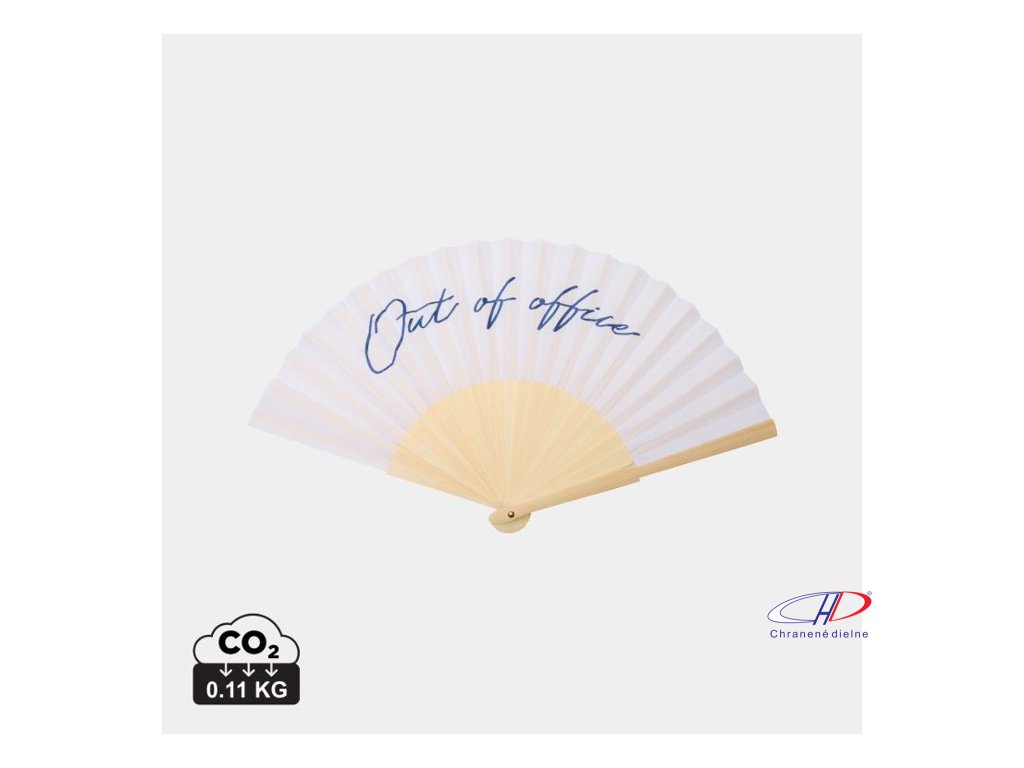Osviež sa s týmto prenosným vejárom s hravým nápisom „Out of office“. Ideálny na pláž, k bazénu alebo horúce letné dni. Spája praktickosť a štýl. Vyrobený z bambusu certifikovaného FSC® a polyesteru.Dodatočné parametre